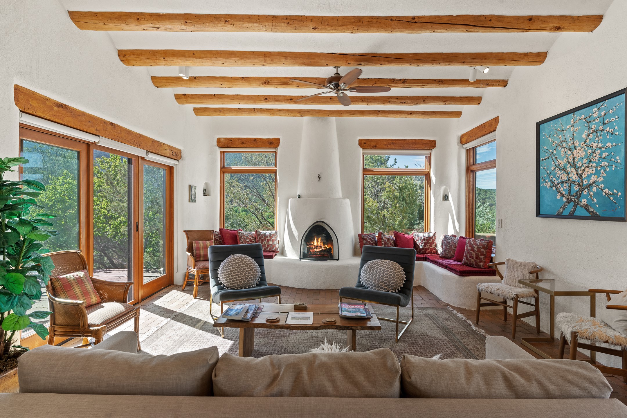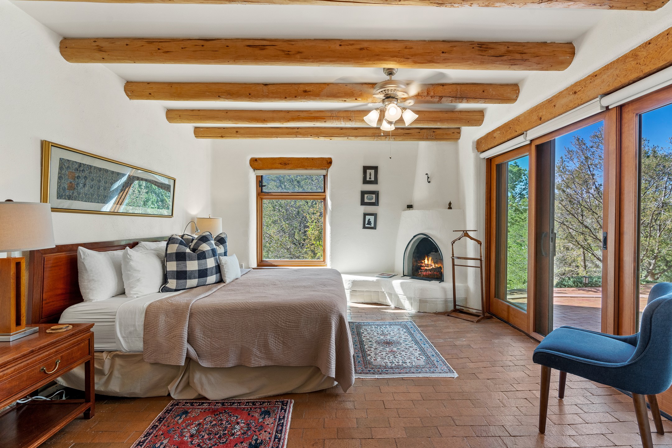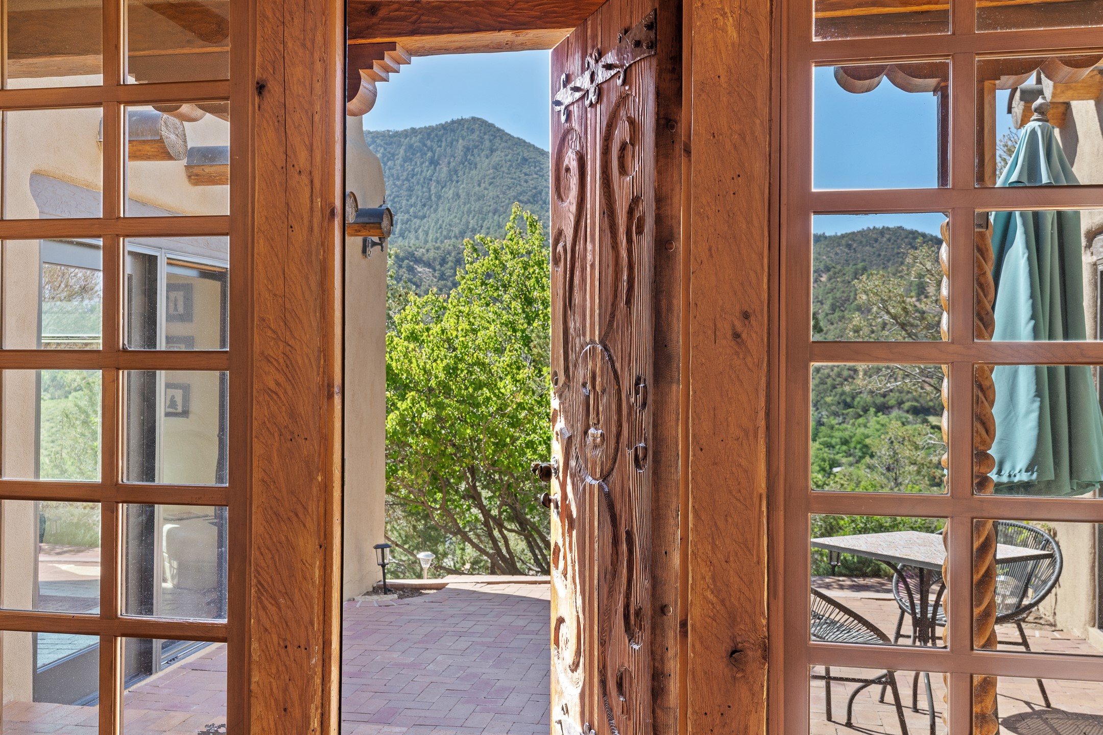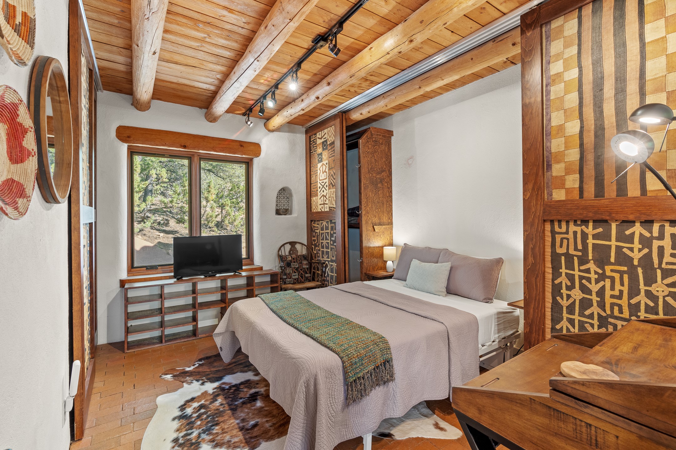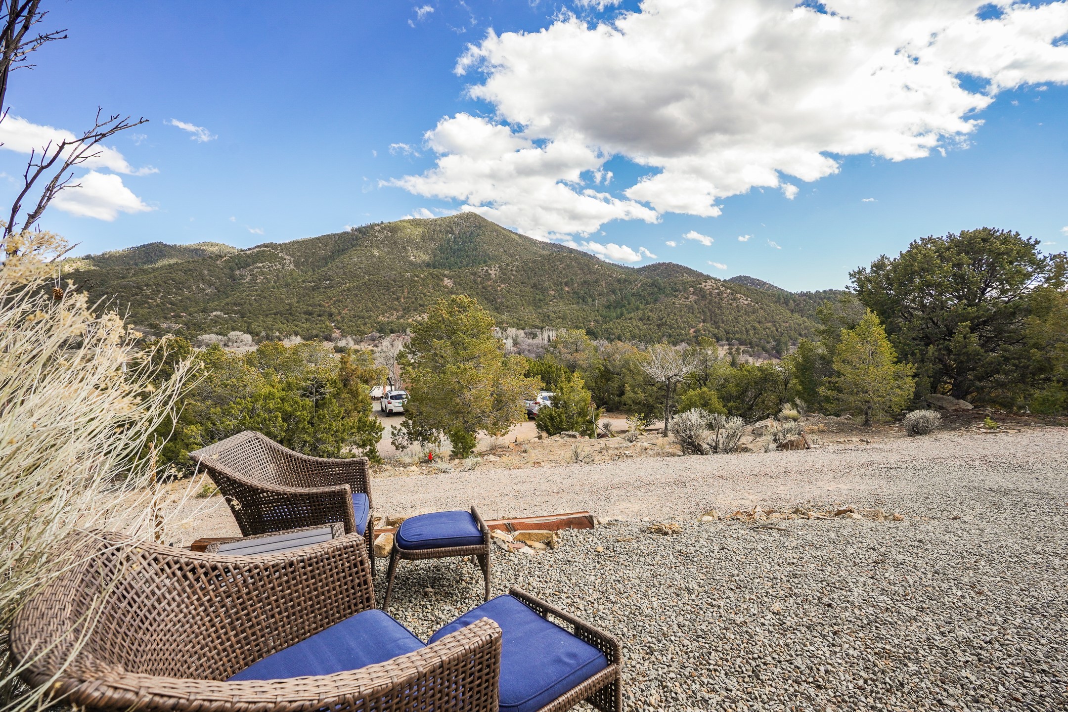Nestled in the foothills of the Sangre de Cristos Mountains, this property offers a rareblend of serenity and convenience-just minutes from Santa Fe's historic Plaza. Set on over an acre ofbeautifully treed land, the walled courtyard welcomes you to the entry of this light filled 3 bedroom3 bath (2384 sq ft)home full of unique architectural details. The 1 bedroom 1 bath (768 sq ft) guest house is equipped with a full kitchen and mini split offering year round comfort. This property presents a rare chance to own close to town as well as many hiking/biking trails that are right out your front door. Its perfect for the active lifestyle.