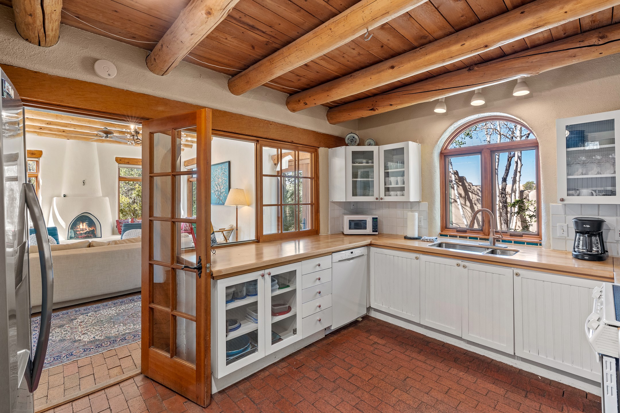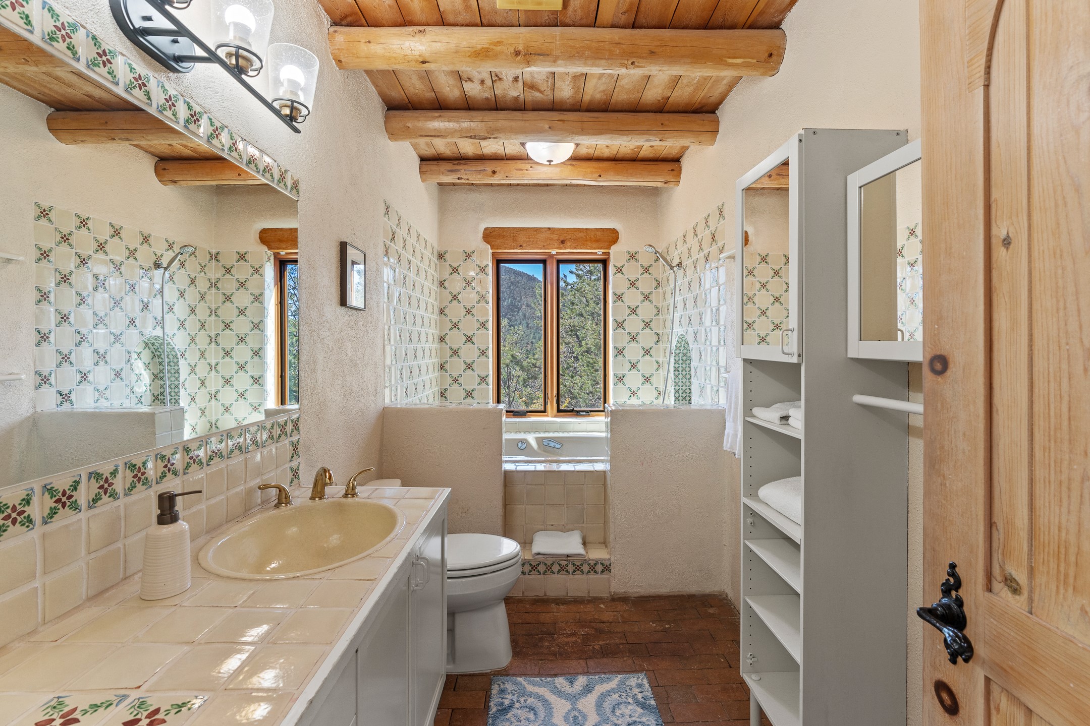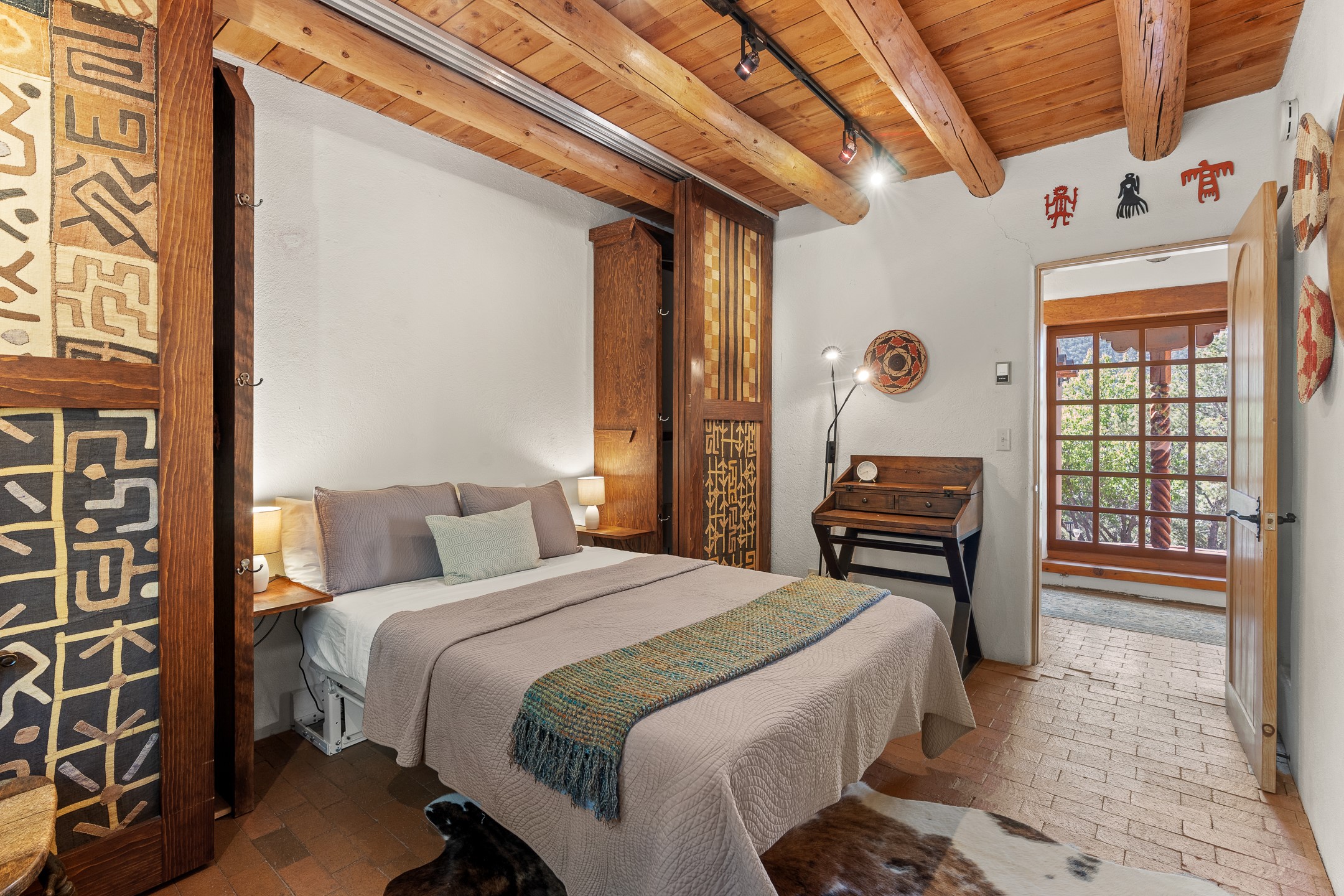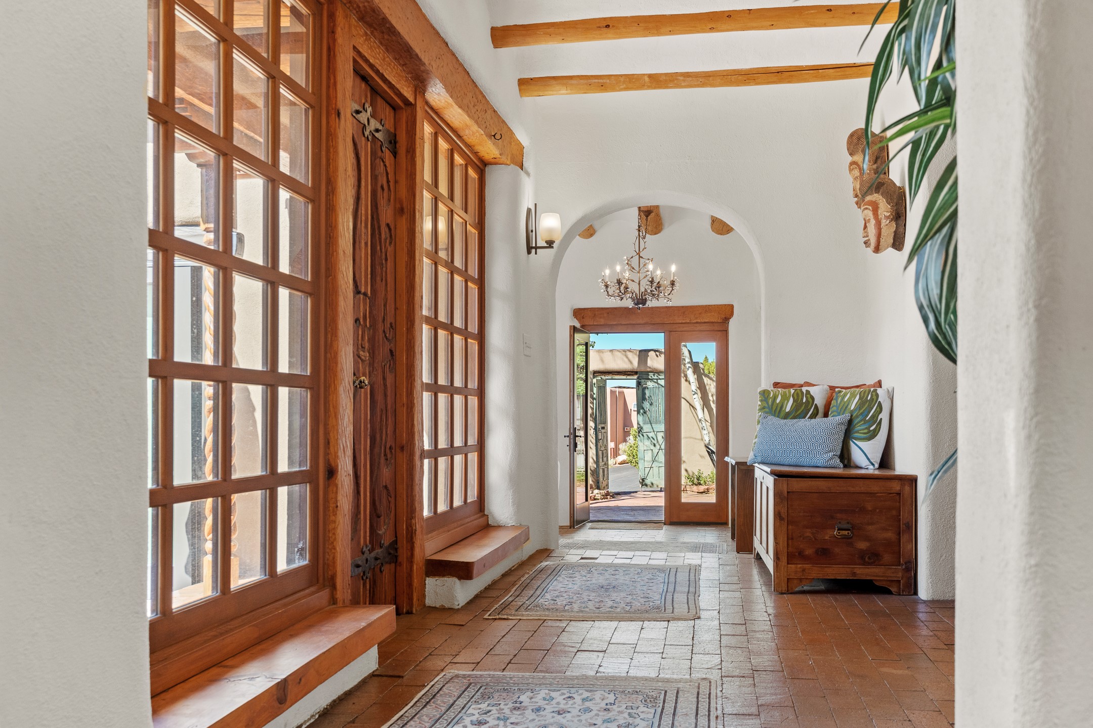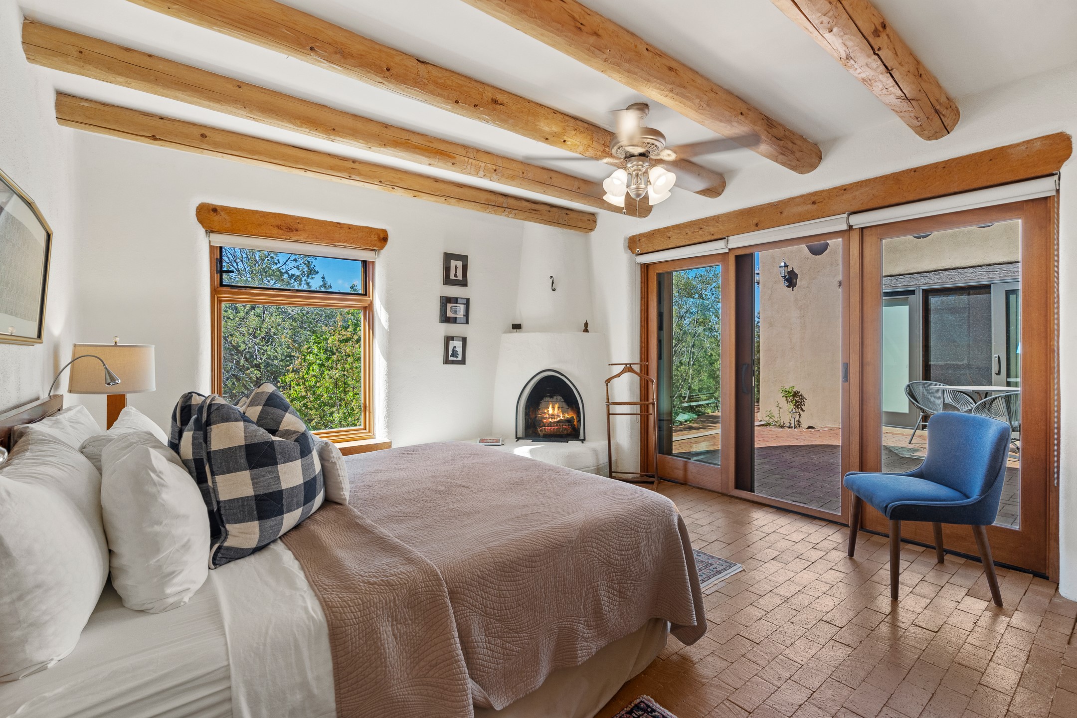 Nestled in the foothills of the Sangre de Cristos Mountains, this property offers a rareblend of serenity and convenience-just minutes from Santa Fe's historic Plaza. Set on over an acre ofbeautifully treed land, the walled courtyard welcomes you to the entry of this light filled 3 bedroom3 bath (2384 sq ft)home full of unique architectural details. The 1 bedroom 1 bath (768 sq ft) guest house is equipped with a full kitchen and mini split offering year round comfort. This property presents a rare chance to own close to town as well as many hiking/biking trails that are right out your front door. Its perfect for the active lifestyle.