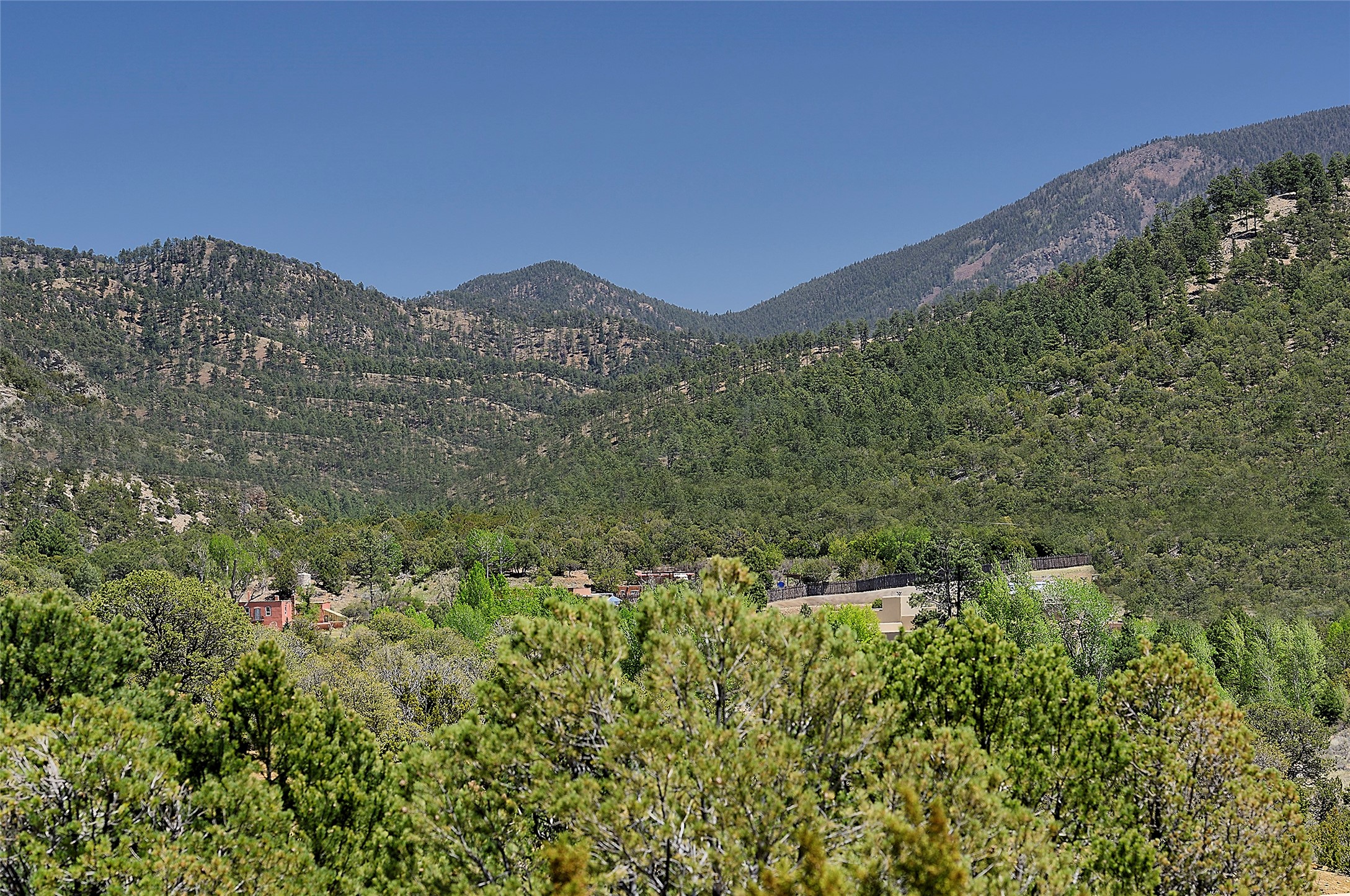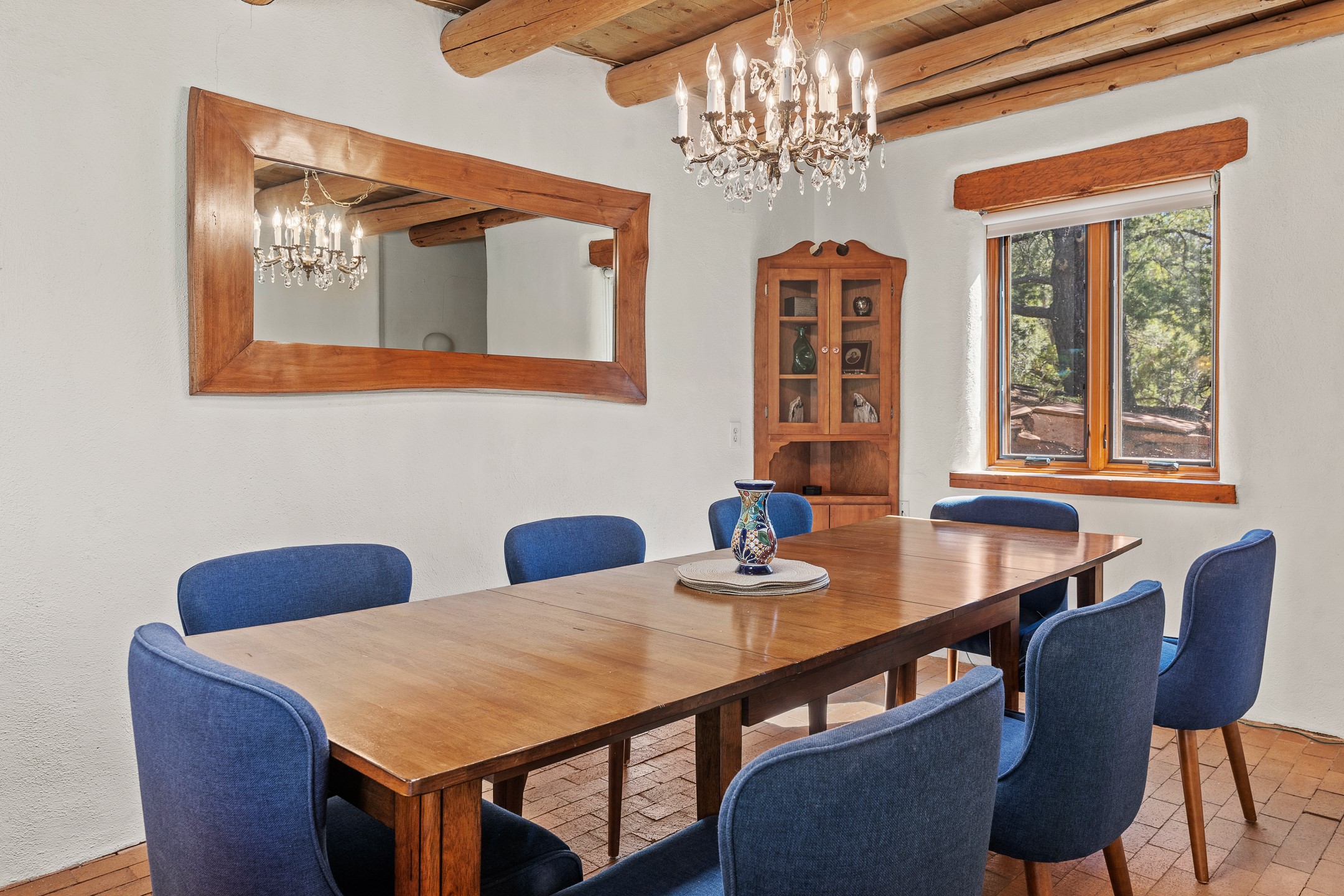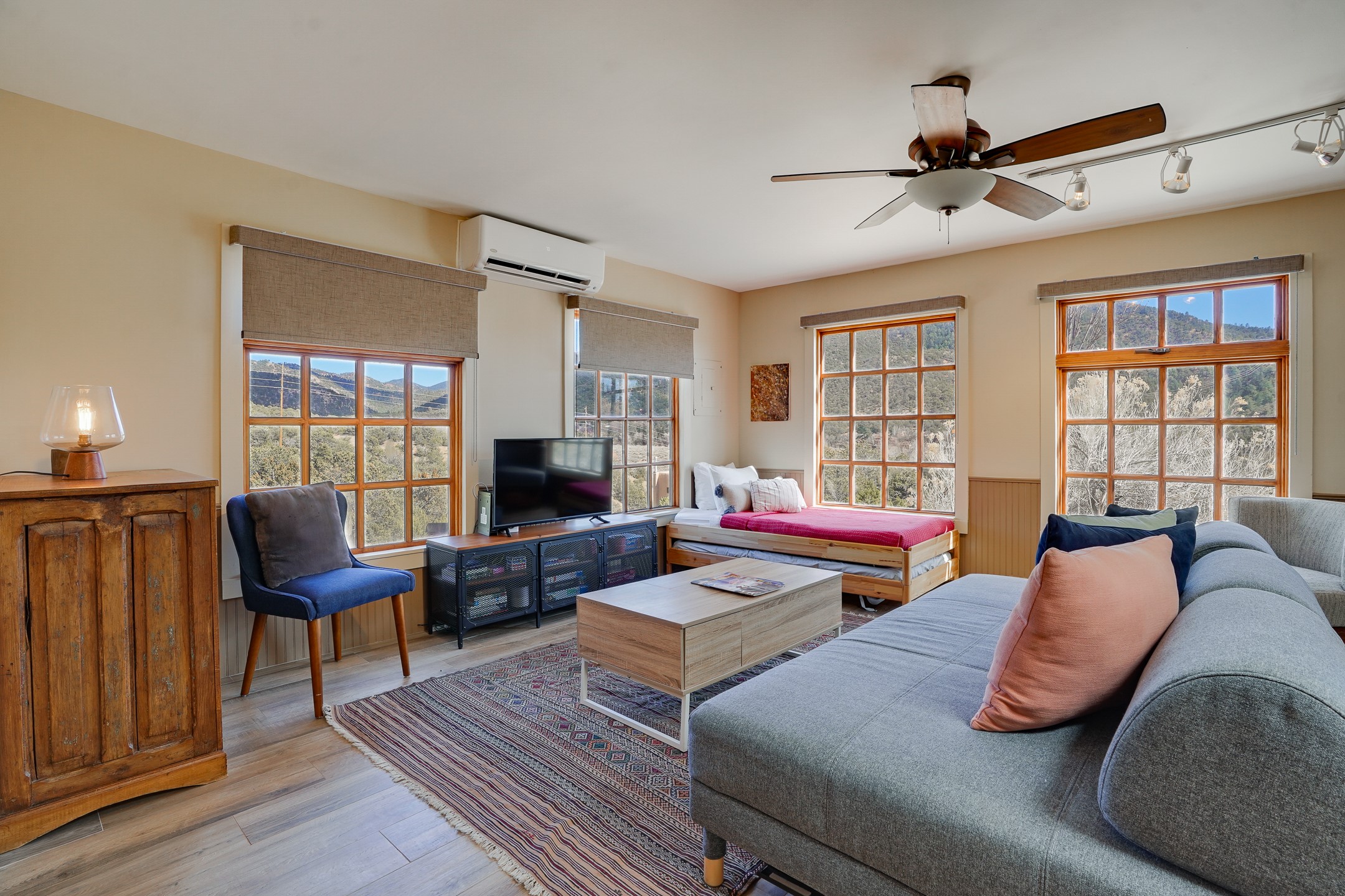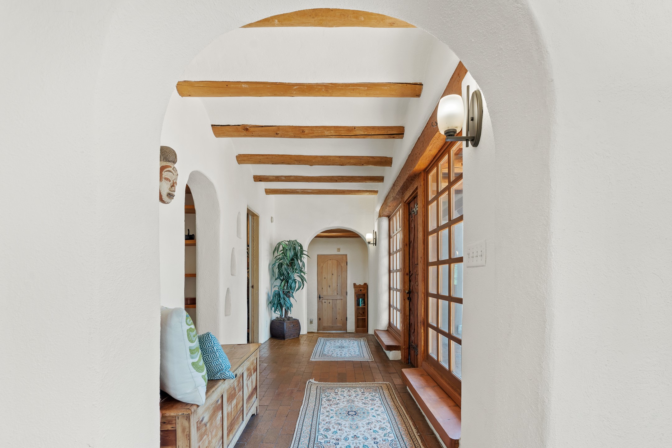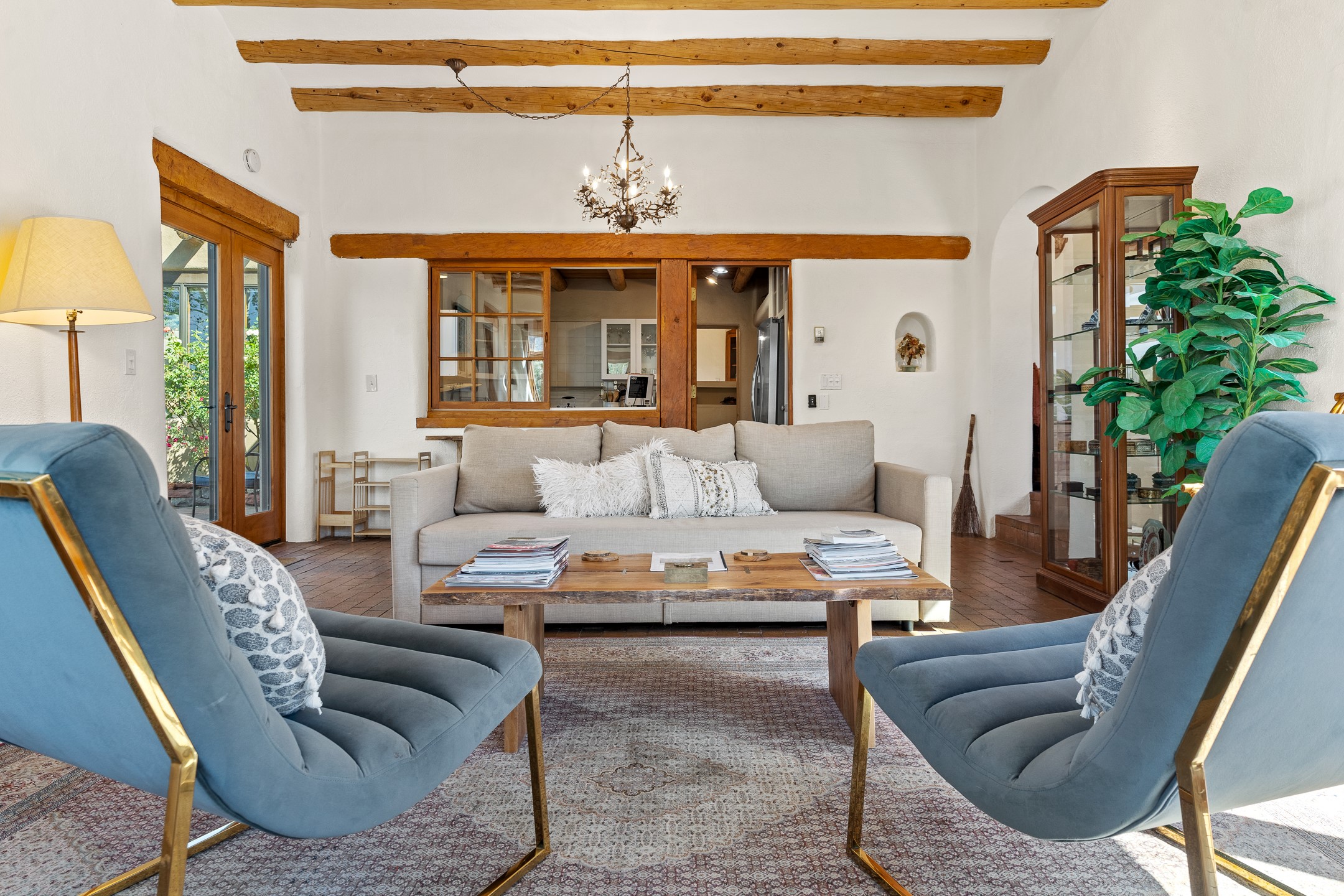 Nestled in the foothills of the Sangre de Cristos Mountains, this property offers a rareblend of serenity and convenience-just minutes from Santa Fe's historic Plaza. Set on over an acre ofbeautifully treed land, the walled courtyard welcomes you to the entry of this light filled 3 bedroom3 bath (2384 sq ft)home full of unique architectural details. The 1 bedroom 1 bath (768 sq ft) guest house is equipped with a full kitchen and mini split offering year round comfort. This property presents a rare chance to own close to town as well as many hiking/biking trails that are right out your front door. Its perfect for the active lifestyle.