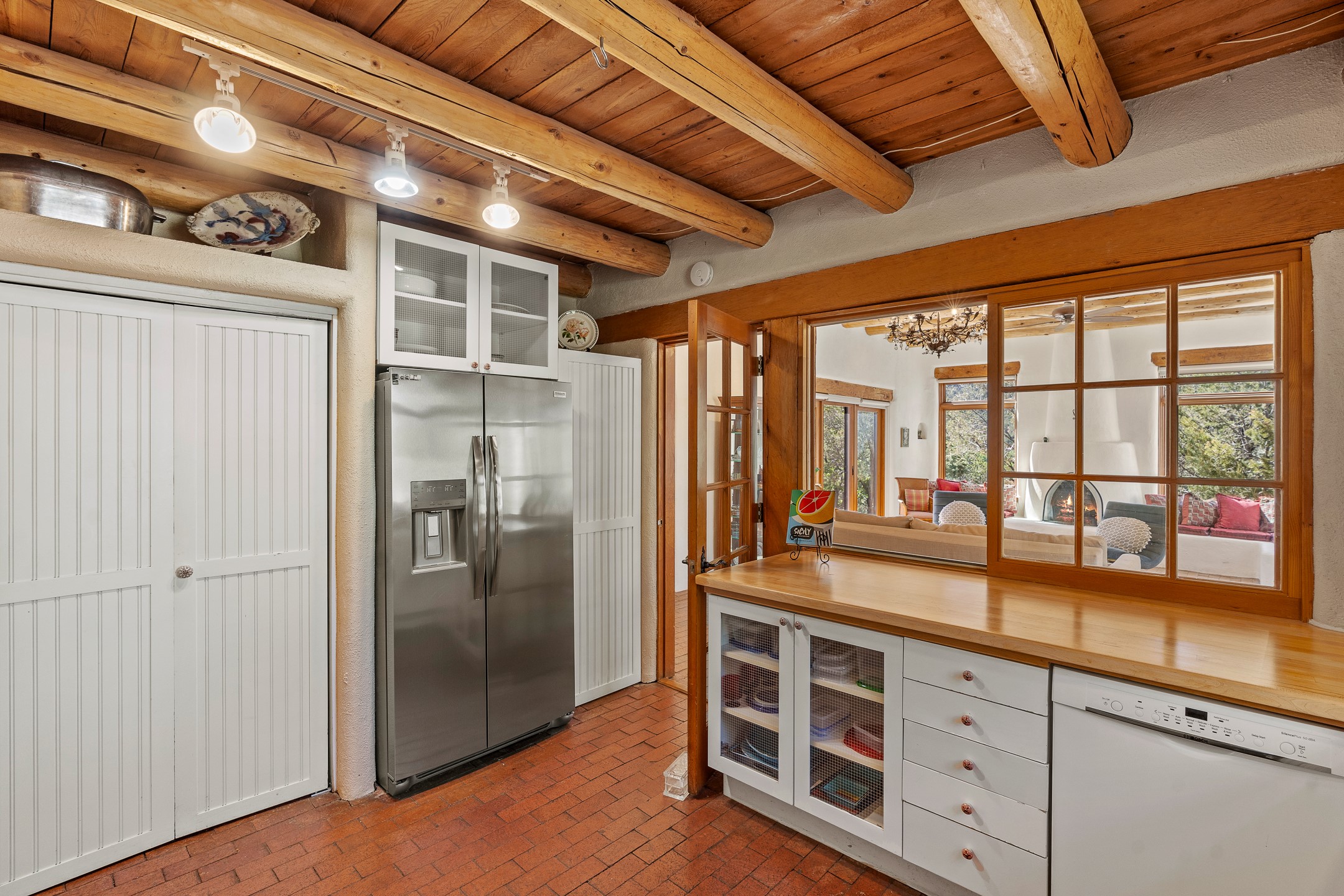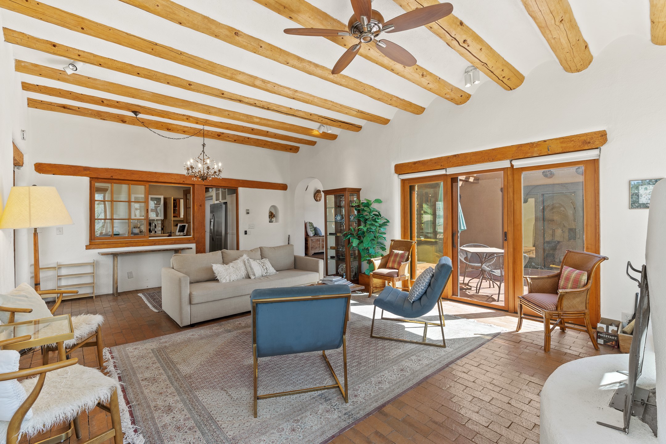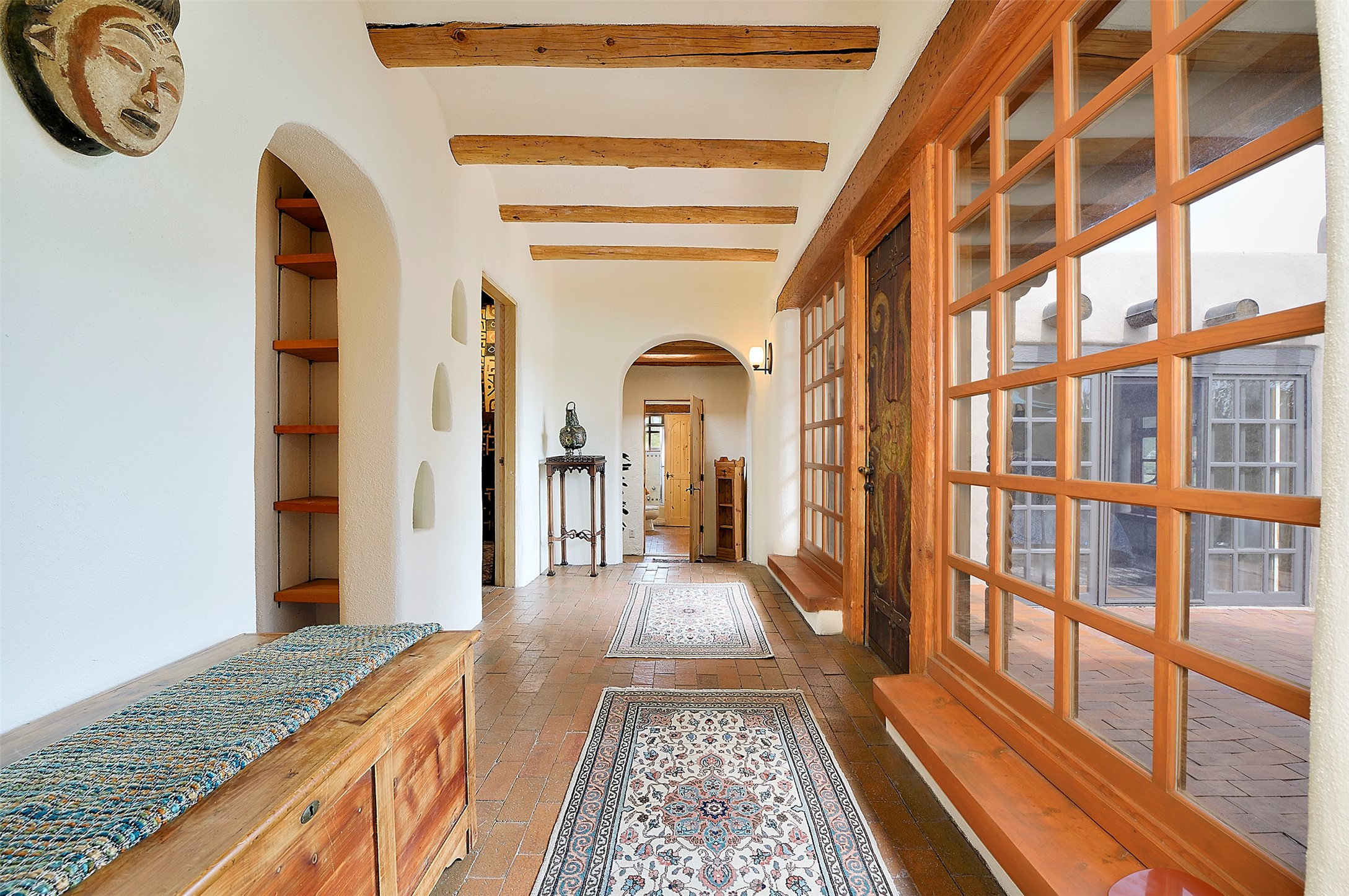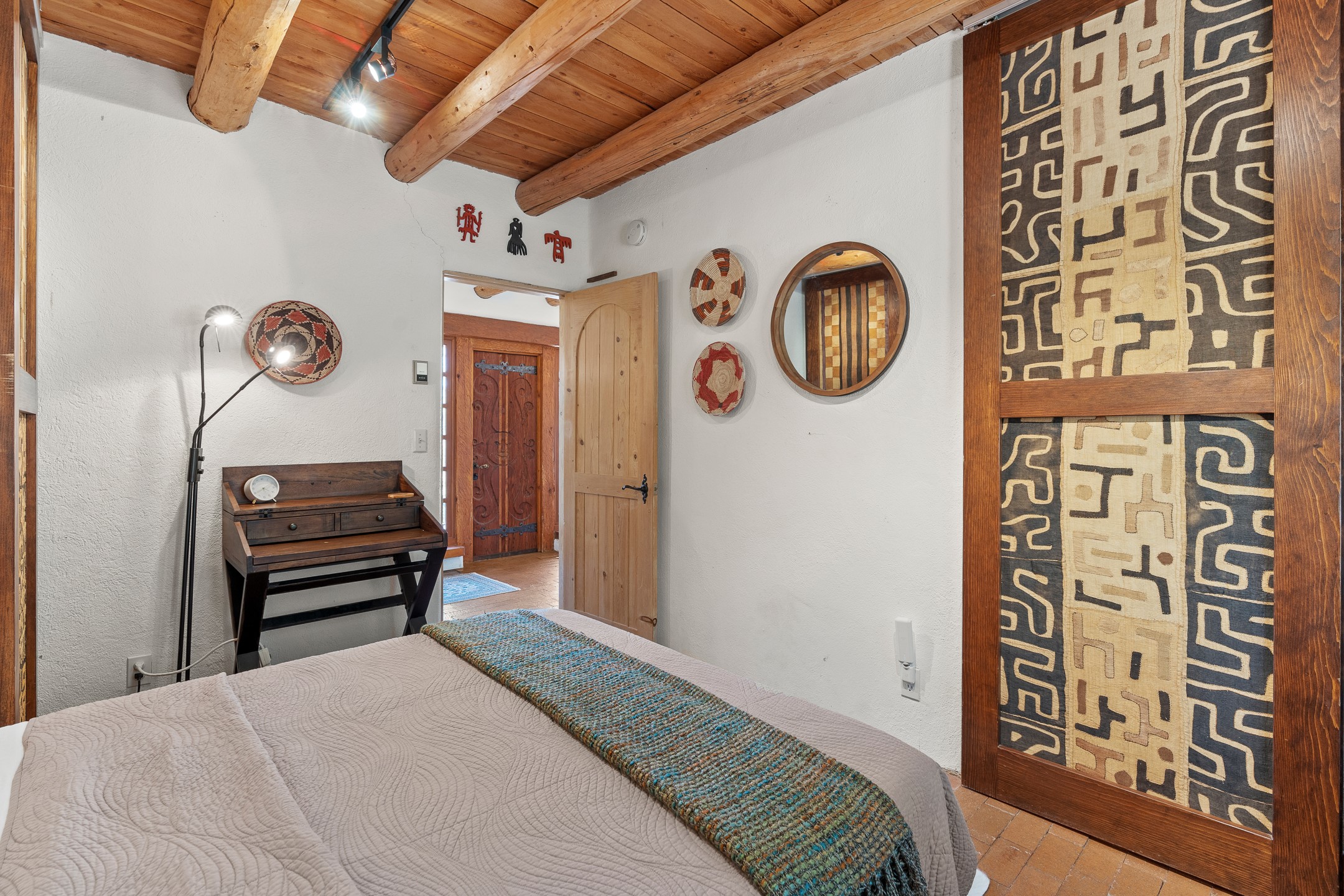 Nestled in the foothills of the Sangre de Cristos Mountains, this property offers a rareblend of serenity and convenience-just minutes from Santa Fe's historic Plaza. Set on over an acre ofbeautifully treed land, the walled courtyard welcomes you to the entry of this light filled 3 bedroom3 bath (2384 sq ft)home full of unique architectural details. The 1 bedroom 1 bath (768 sq ft) guest house is equipped with a full kitchen and mini split offering year round comfort. This property presents a rare chance to own close to town as well as many hiking/biking trails that are right out your front door. Its perfect for the active lifestyle.