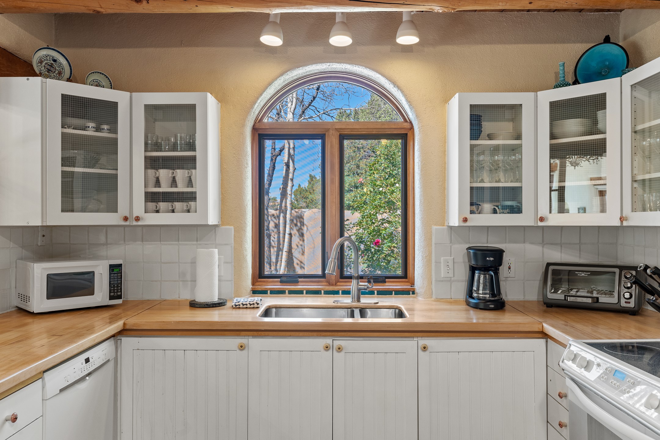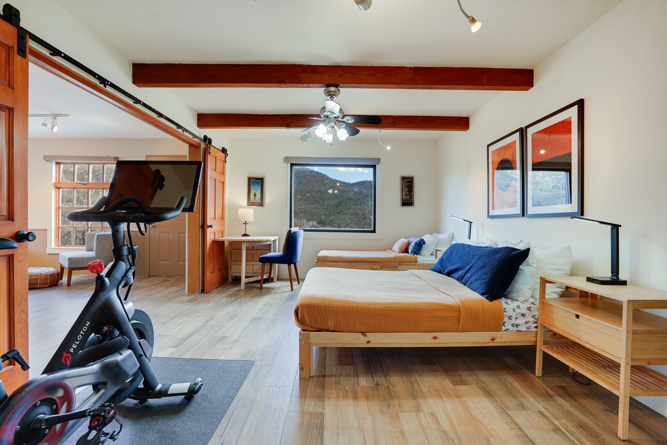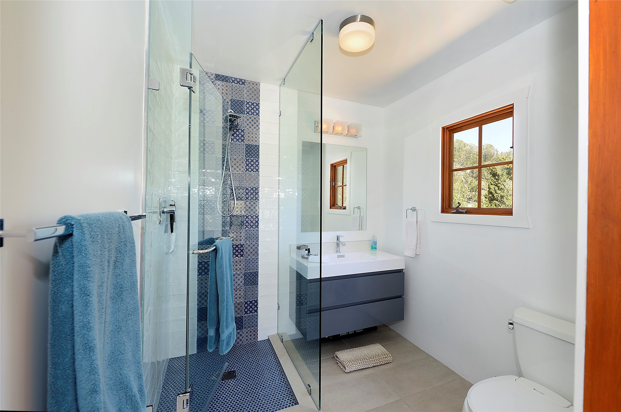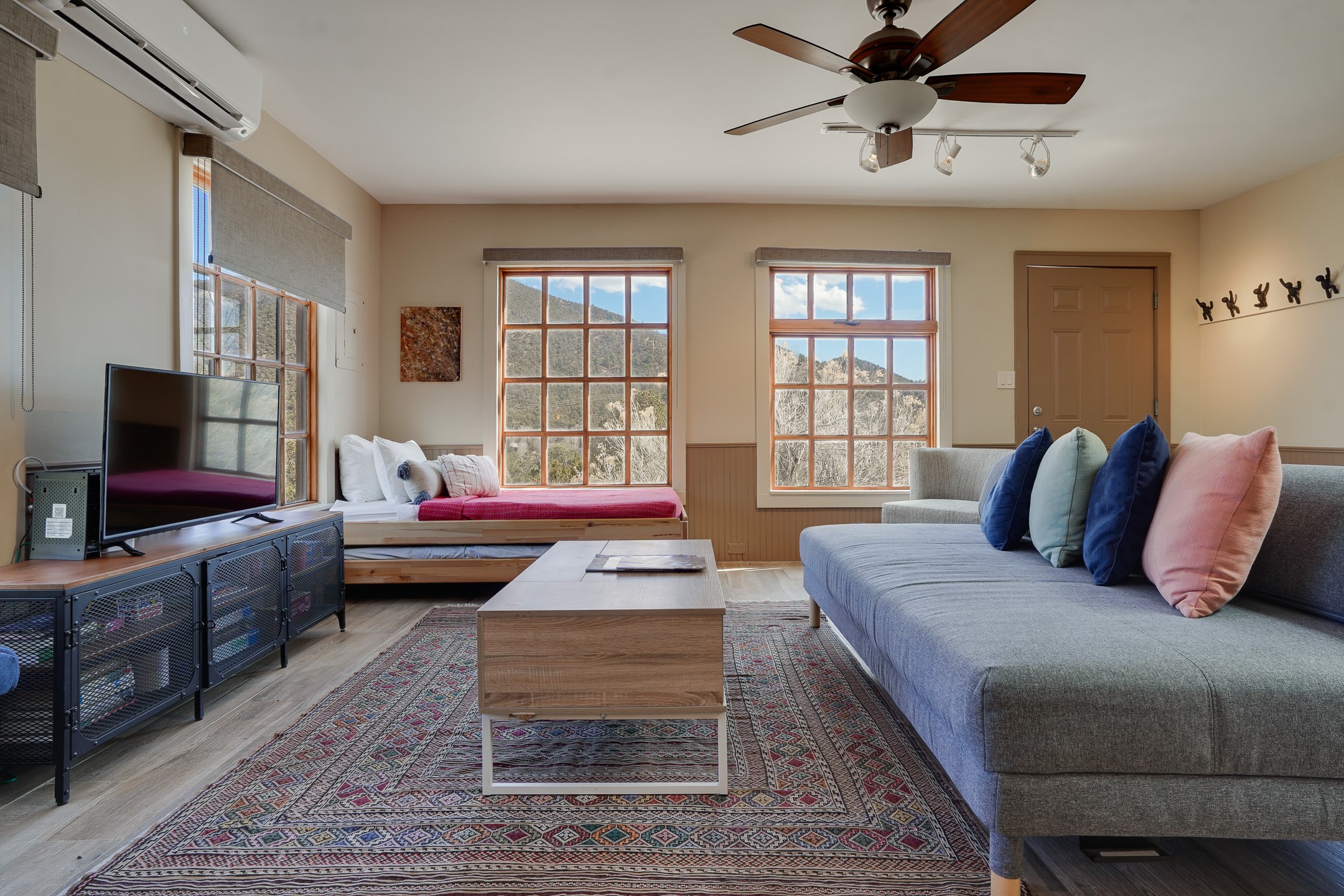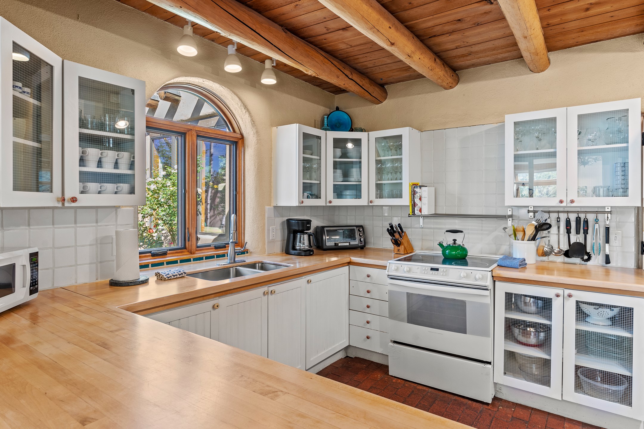 Nestled in the foothills of the Sangre de Cristos Mountains, this property offers a rareblend of serenity and convenience-just minutes from Santa Fe's historic Plaza. Set on over an acre ofbeautifully treed land, the walled courtyard welcomes you to the entry of this light filled 3 bedroom3 bath (2384 sq ft)home full of unique architectural details. The 1 bedroom 1 bath (768 sq ft) guest house is equipped with a full kitchen and mini split offering year round comfort. This property presents a rare chance to own close to town as well as many hiking/biking trails that are right out your front door. Its perfect for the active lifestyle.