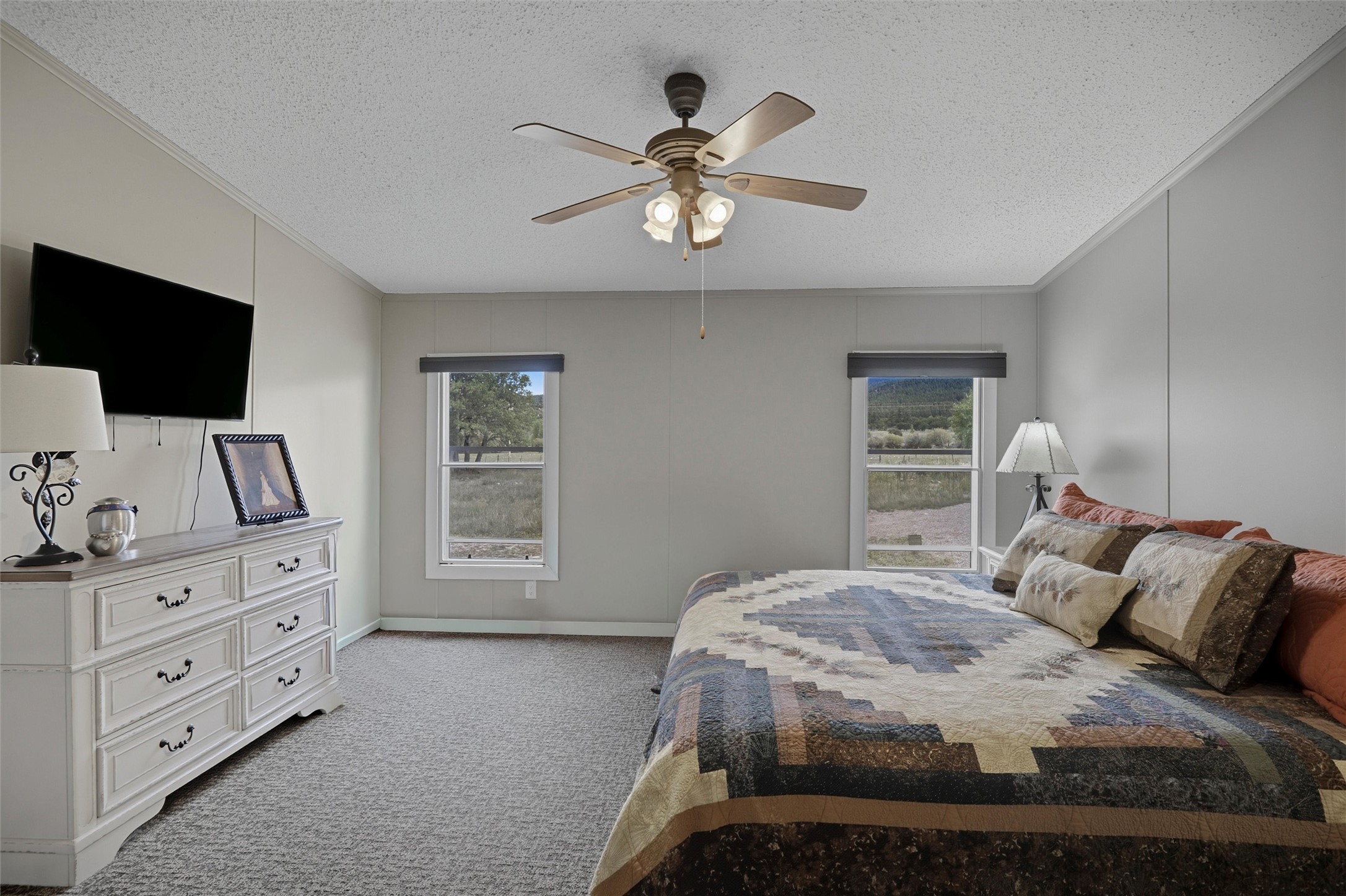 This well-maintained 3-bedroom, 2-bath home sits on 1.39 +/- acres with multiple outbuildings and a single-car detached garage, offering plenty of space for storage, hobbies, or toys. Enjoy easy year-round access directly off State Road 512, with the added benefit of no CCRs and the convenience of a private well and septic system.The property features both front and back decks, including a partially enclosed area on the back deck--perfect for relaxing mornings and evenings while watching deer and turkey wander through. Recent updates include a pellet stove, new flooring, countertops, and appliances, along with a water filtration system and spacious closets and pantry. The back half of the roof was replaced just last year, and electricity has been added to all outbuildings, including the garage. Fresh gravel has also been leveled throughout the circular driveway, making access simple and neat. A backup generator provides extra peace of mind.Outdoor recreation is close at hand with nearby access to the Rio Chama, Brazos River, Lake Heron, and Lake El Vado. Located only 15 minutes from the Village of Chama, the home also offers spectacular views of the Brazos Cliffs right from your front yard. The house sits on a permanent foundation and is HUD approved, making it a versatile option for year-round living or a getaway retreat.This is a must-see property in the heart of the Chama Valley--don't miss the chance to make it yours.