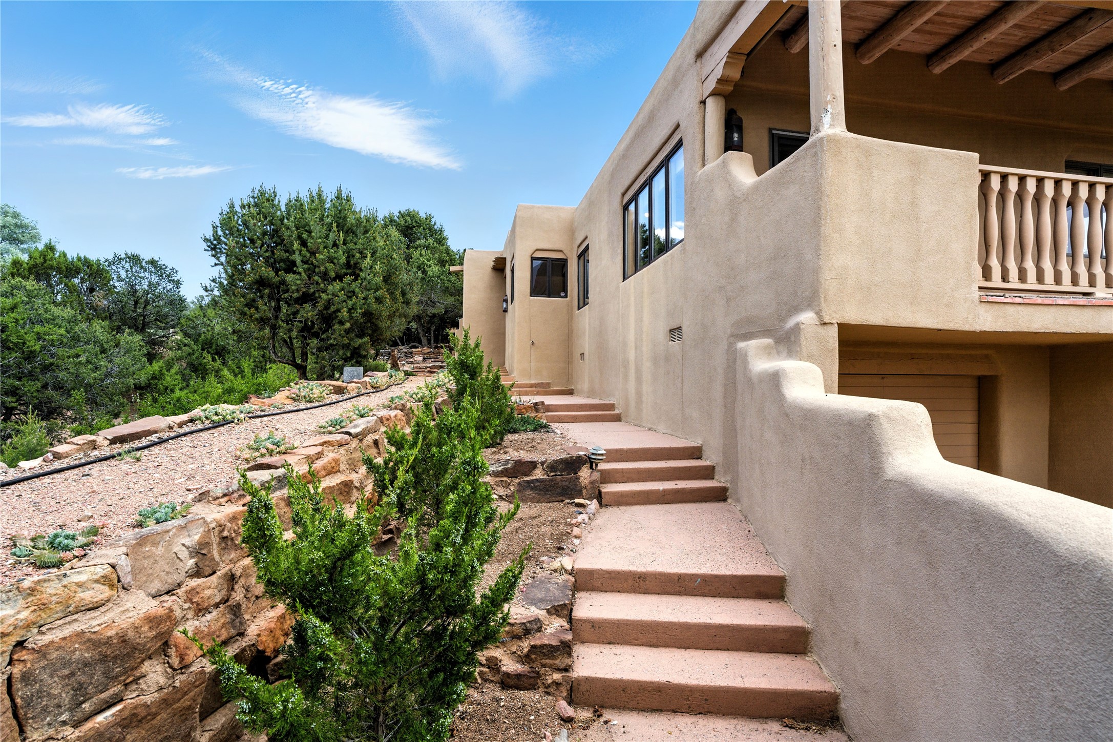 Significant Price Reduction! Lovely home in Estancia Primera with outstanding views! Enjoy dramatic western and sunset views from your balcony located directly off the living room. Open and spacious living room with fireplace, dining, kitchen areas. Upstairs also includes a guest bedroom and bath. Separated by a small staircase, enter the master suite with wood floors, kiva fireplace and a private patio. Ground level offers a 2 car garage and a private den/multi purpose room with a sauna! In the recent past, the owners chose to install a "lift" in lieu of the staircase to approach the upstairs/main living level. The proximity to the Santa Fe Plaza and all downtown in a 5 minute drive, or for the skiers/oudoorsy, Hyde Park Road is right there to take you into the mountains.