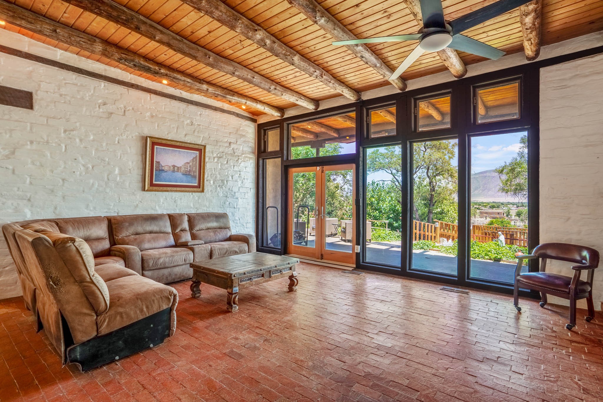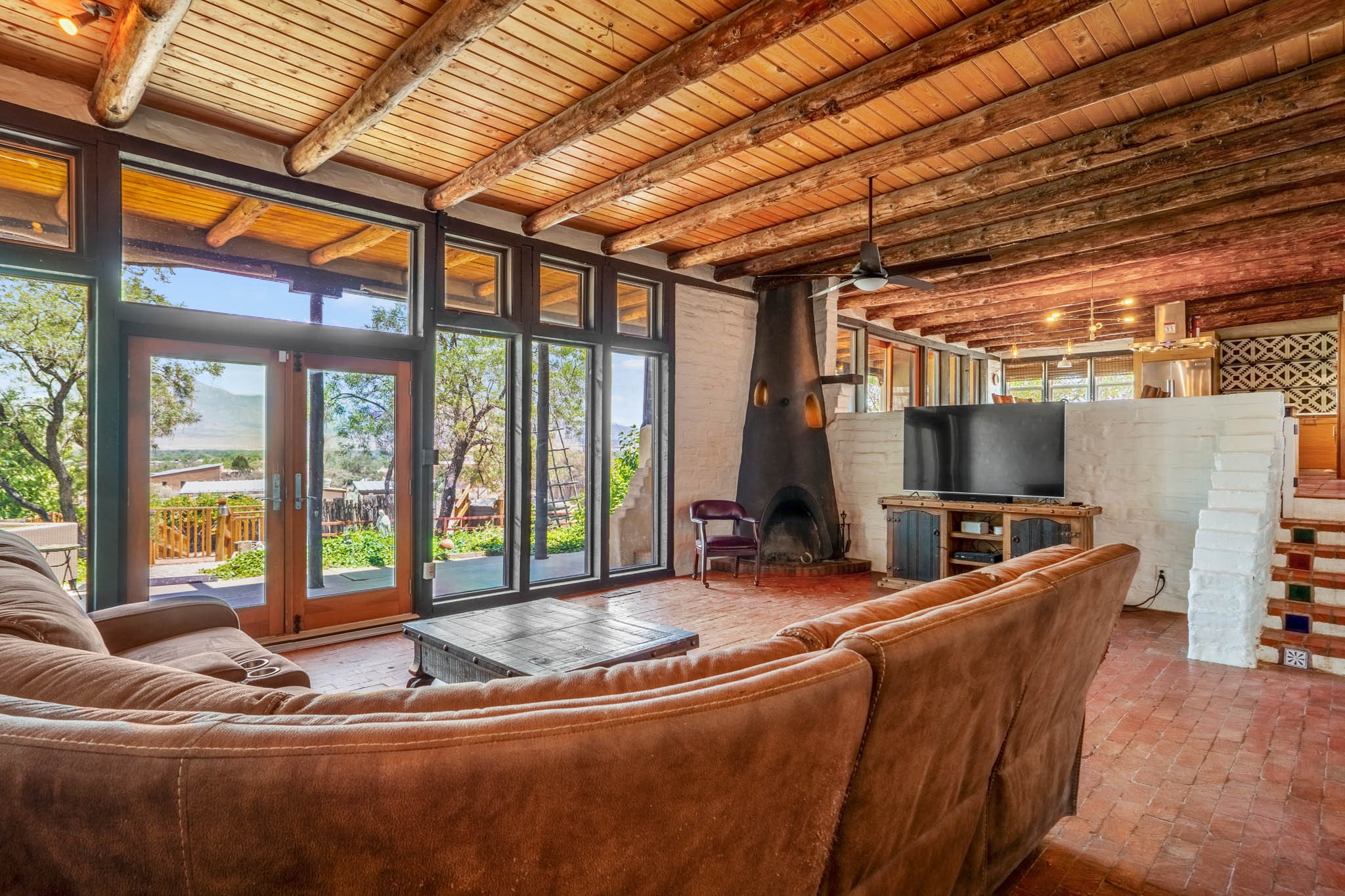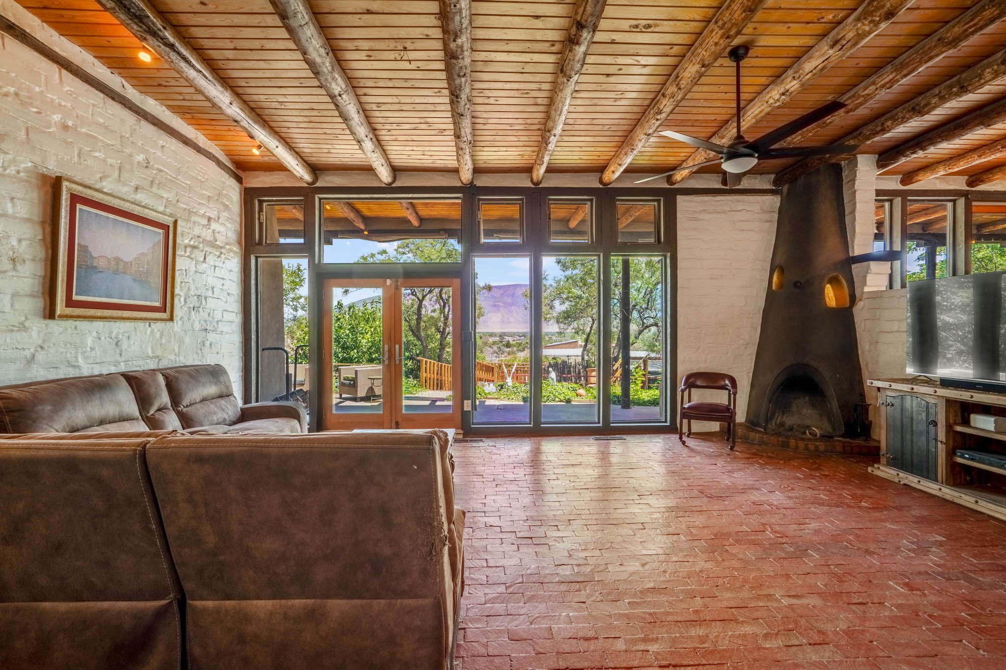Enchanting Adobe Retreat with Balloon Fiesta Views & Mountain MajestyWelcome to your private New Mexico sanctuary--perched on a peaceful acre at the end of a quiet road, this stunning two-story adobe home offers breathtaking views, timeless character, and unforgettable experiences.Watch the Magic Unfold Every October: From the comfort of your backyard balcony, enjoy front-row seats to the world-famous Albuquerque International Balloon Fiesta. Watch vibrant hot air balloons take flight each morning as they rise gracefully into the sky--an annual tradition that transforms your backyard into a front-row viewing paradise. It's the perfect setting to entertain guests, sip morning coffee, or soak in the wonder of the Southwest.Southwestern Charm Meets Modern Comfort:This thoughtfully crafted adobe home features classic brick floors, exposed vigas, hand-troweled plaster walls, and curved adobe lines that fill the space with warmth and natural light. A striking kiva fireplace anchors the living room, while floor-to-ceiling windows frame expansive mountain and city views.The open-concept kitchen and dining area seamlessly blend rustic charm with modern updates--wood cabinetry, sleek countertops, traditional tilework, and beautiful beamed ceilings. Whether you're hosting a holiday feast or a cozy dinner, this home was made for joyful gatherings and lifelong memories.Outdoor Living at Its Finest:Step into your private courtyard, beautifully landscaped with native flora and multiple seating areas. Listen to birdsong from the trees, wave at the curious roadrunners that visit often, or unwind in the hot tub as the sky puts on a show with radiant sunsets and sunrises.Property Features:1 acre of peaceful land at the end of a quiet roadOwned solar power system (active)Two A/C units (one replaced in 2018)Private well and septic systemTwo RV hookups with a concrete parking slabPrivate balcony with sweeping views of Albuquerque and beyondBirds, roadrunners, and local wildlife enhance the serene settingThe backyard is perfect for entertaining and star-gazingThis home has been a place of deep love, laughter, and countless gatherings with family and friends. From the peaceful morning light to the fiery evening skies--and every Balloon Fiesta in between--it's a home that offers more than just space. It offers experience.Come and fall in love with the magic of New Mexico living--this one-of-a-kind retreat is ready to welcome you home.