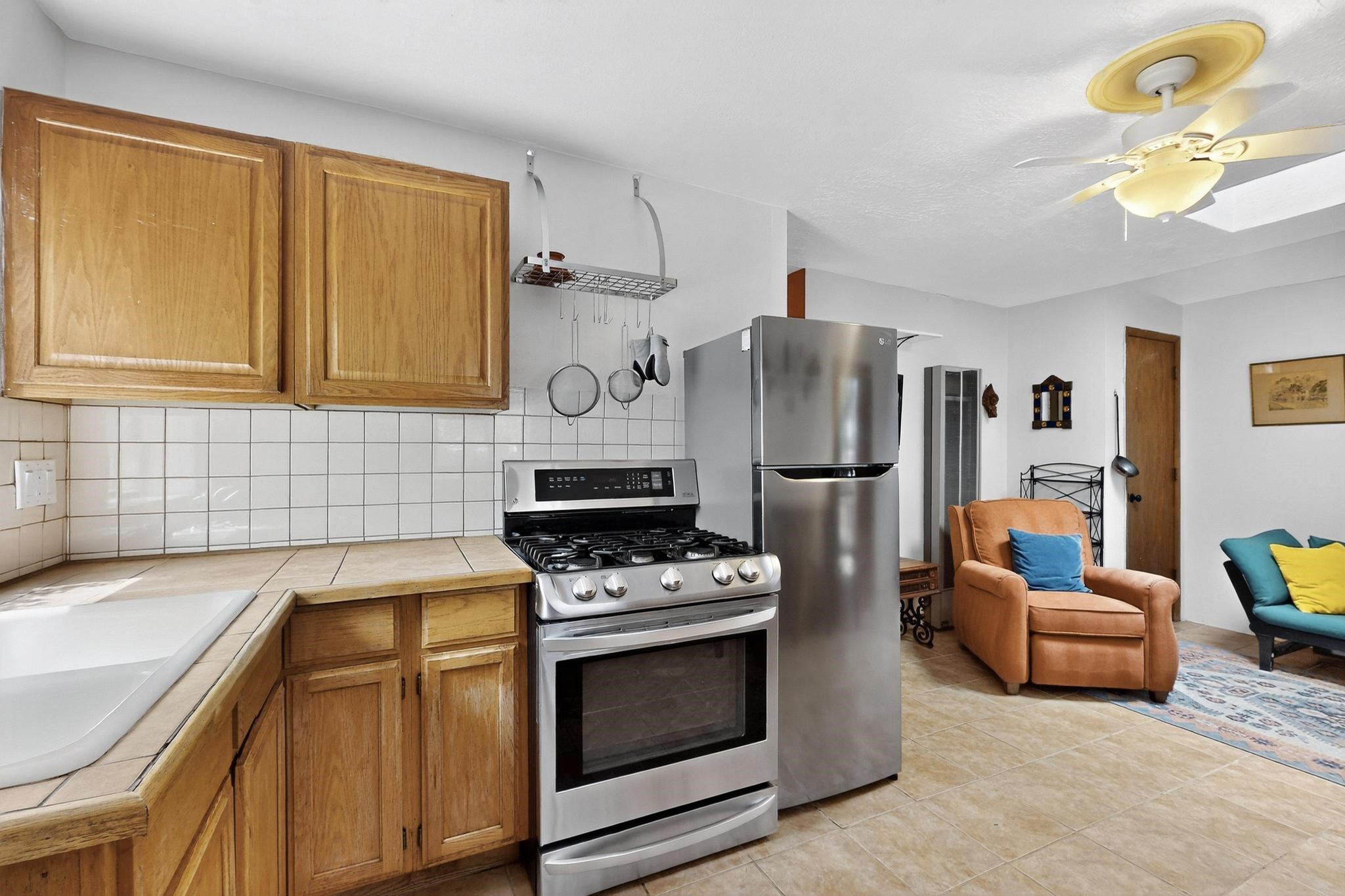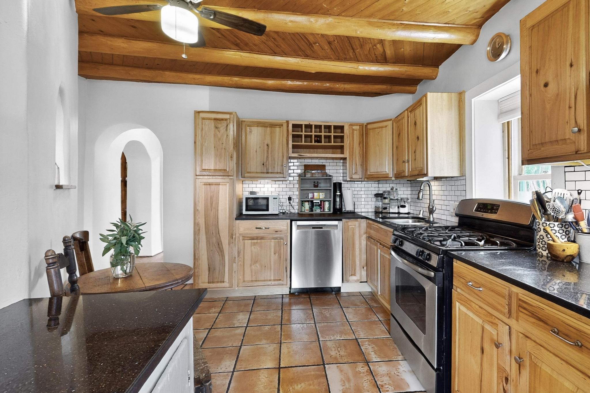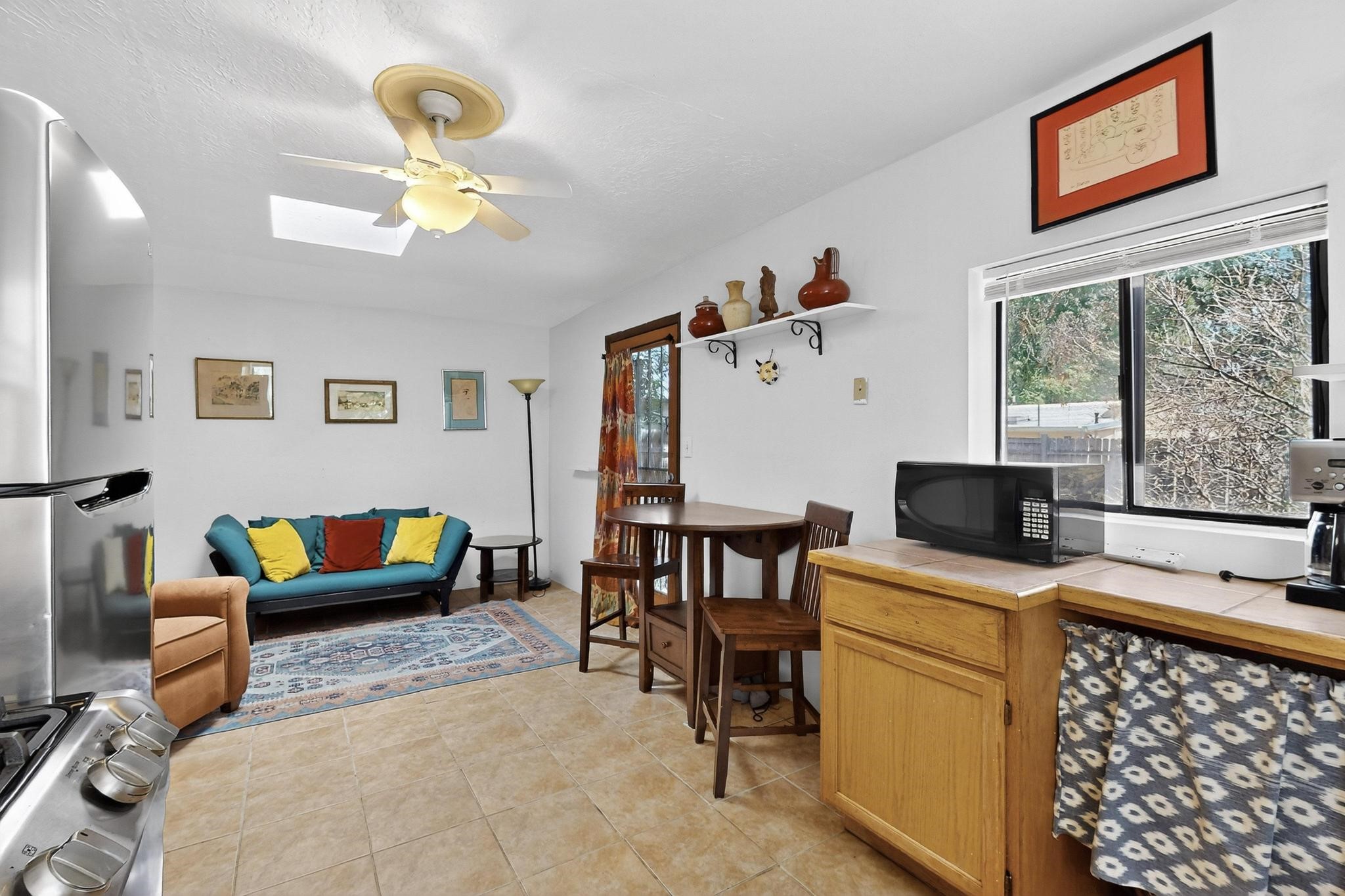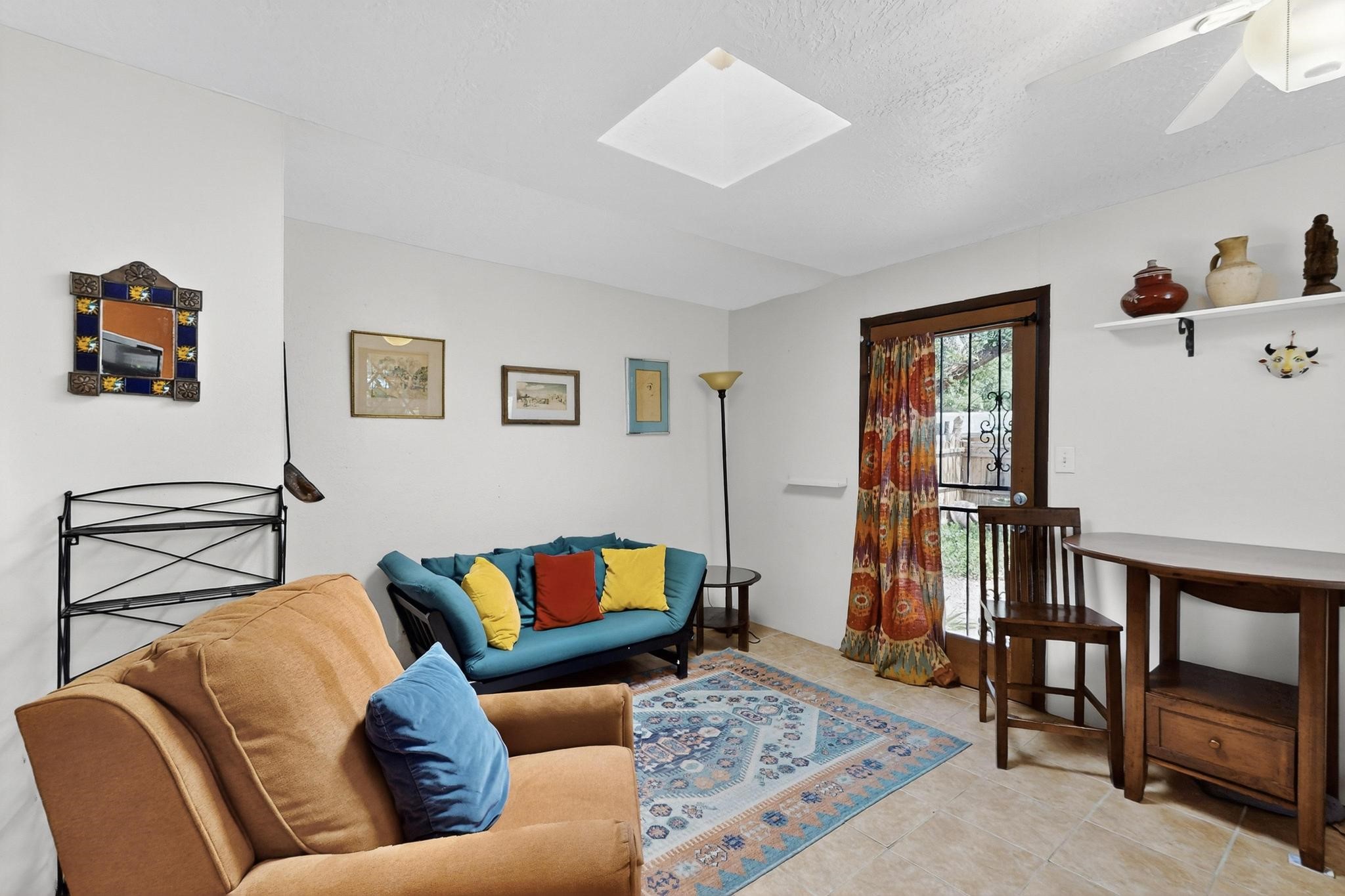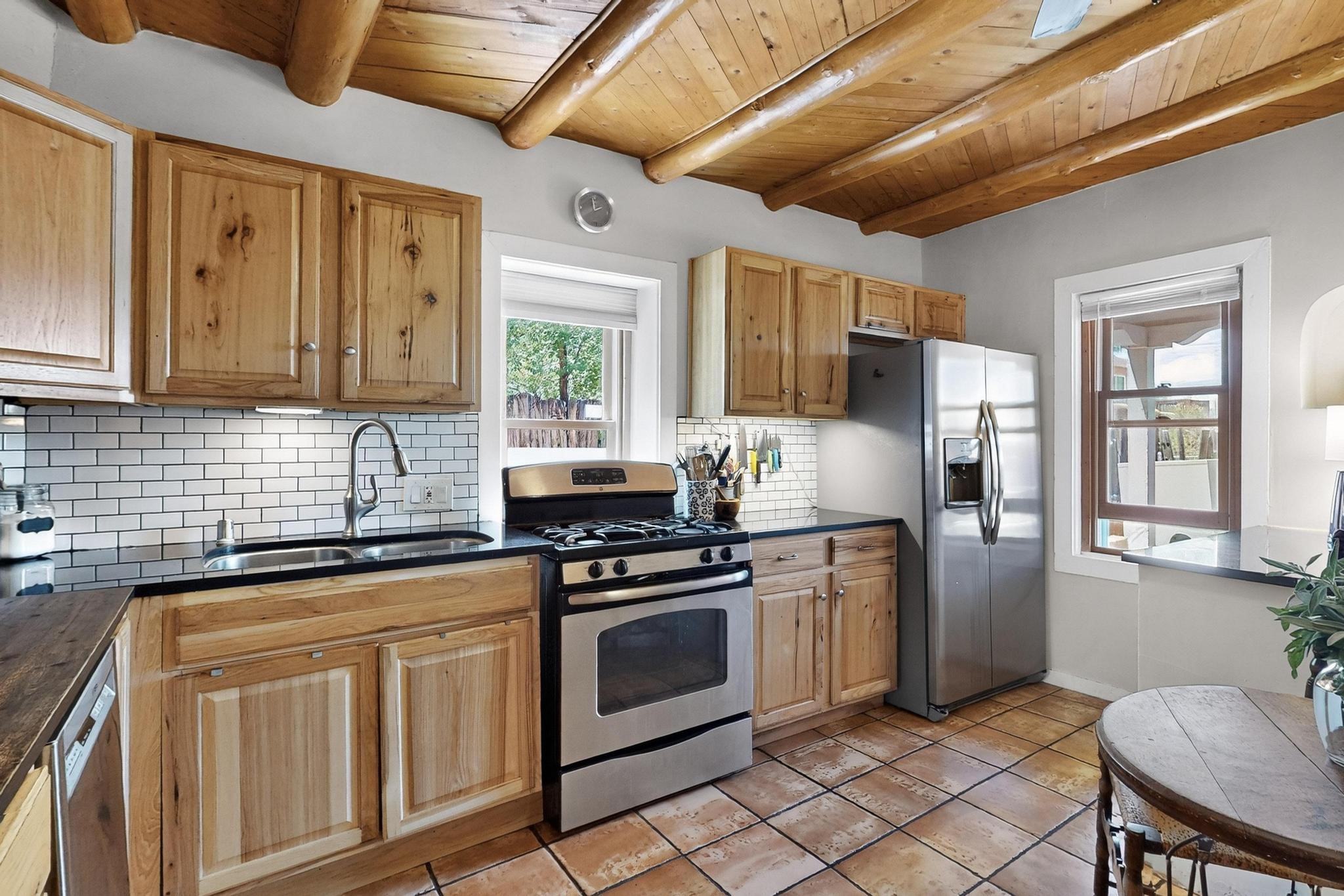 Excellent family home with extra income potential in the heart of Santa Fe! This classic 1930s adobe has been thoughtfully updated for modern living while retaining its historic charm.The main residence features 3 bedrooms and 2 baths, including a fully renovated kitchen, updated electrical, and a newly built modern primary suite added as a second story in 2020 - a true private retreat perched above the traditional adobe footprint.Behind the main home sits a fully independent 1-bedroom, 1-bath casita with its own full kitchen, ideal for extended family living, a private guest house, or rental income opportunity. The layout of the property offers strong appeal for owner-occupants looking to offset expenses while living in a fantastic central location. It can also offer fantastic investment opportunities as a dual income rental for long-term tenants or vacation rentals. Central to everything and located just blocks from the thriving Railyard District, Historic Downtown Plaza, River Trail, Montanita Co-op, and Santa Fe's vibrant shops and restaurants, this property is ideally positioned to offer a true Santa Fe lifestyle.Additional features include off-street parking, a fully fenced and gated property, and a generous yard with a newly built stone wall, offering the potential for a spectacular private garden space.Don't miss this unique opportunity to own a piece of Santa Fe history, updated for modern living in one of the city's historic and desirable neighborhoods.