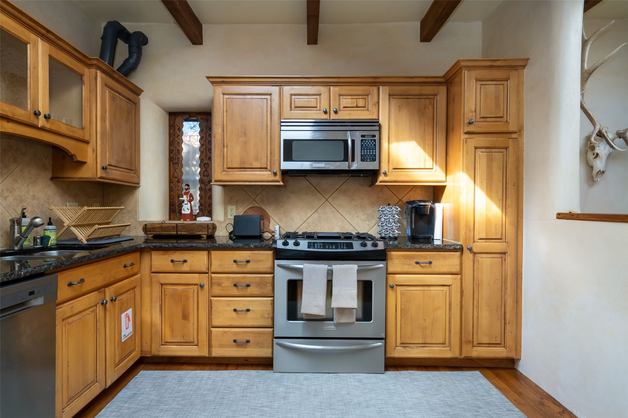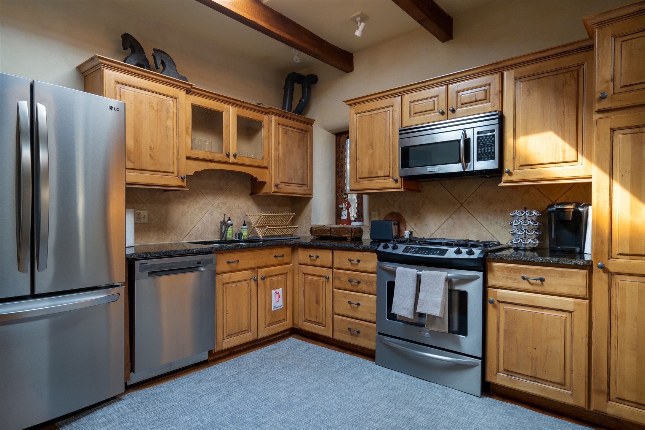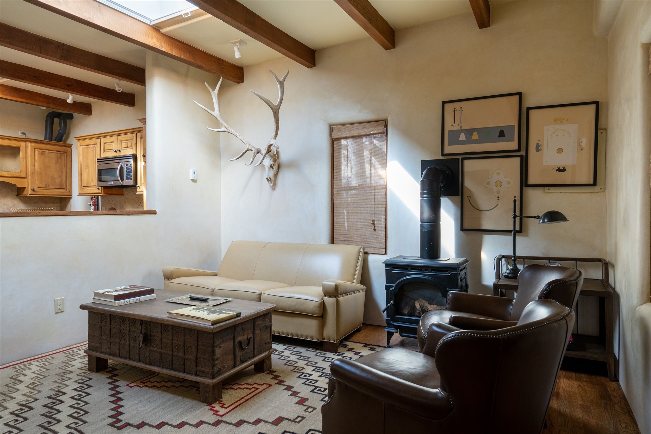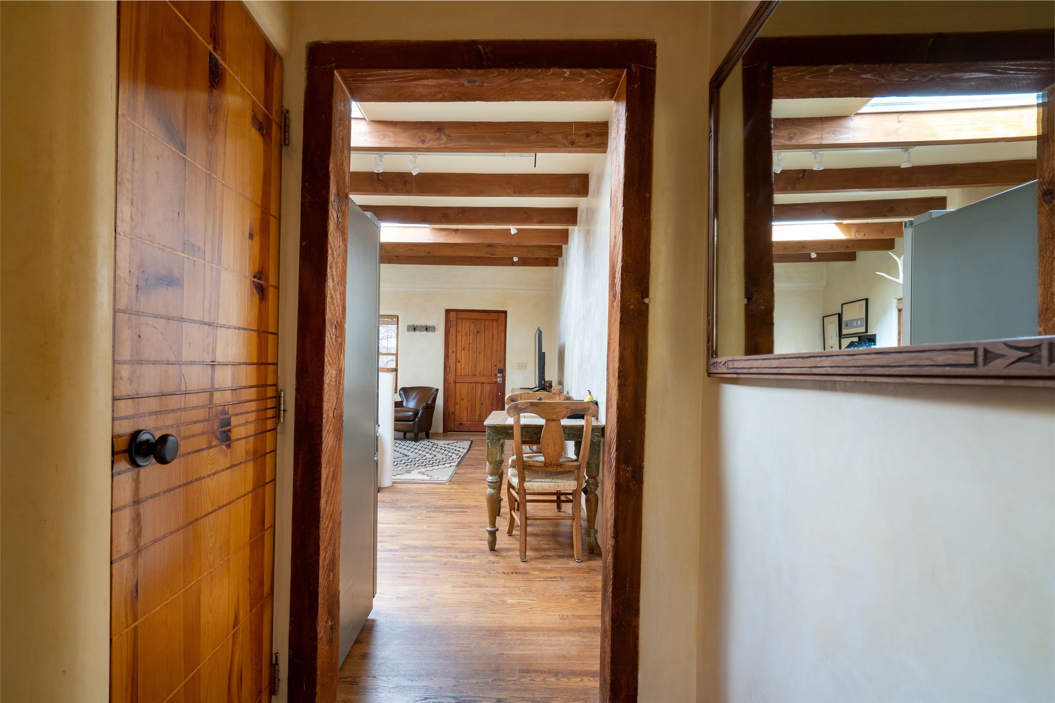Looking to purchase the most charming condo in the downtown Santa Fe Railyard District? Look no further! This charming quintessential Santa Fe property is located on W Manhattan and boasts wood floors, plaster walls, nichos, and tons of natural light. Unit A has a recently redone bathroom with a walk in shower and a brand new mini split system installed in 2024 that provides both heating and cooling. All appliances have been updated along with an in-unit washer and dryer. The exterior landscaping was redone in 2024 with all new flagstone and freshly painted gates and provides a private outdoor patio with well established trees making this the perfect yard for pets or just relaxing outdoors! Just bordering the Santa Fe Historic District, this condo is 1 of 4 in the complex and currently has a high quality tenant in place who would be possibly interested in staying under new ownership but is currently going month to month. Call us for any questions or to schedule a showing!