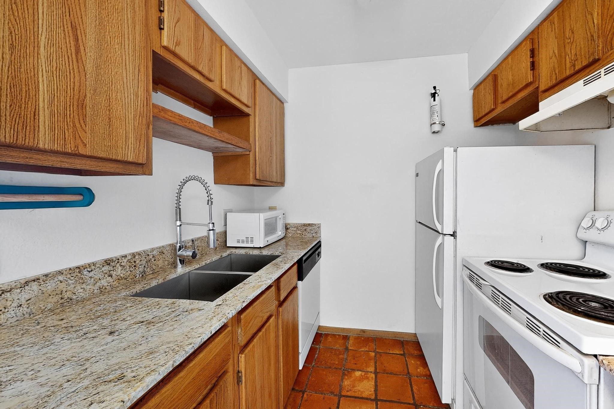 Discover the charm and serenity of this rare 2-bedroom, 2-bath condo located in Tierra de Zia community. Infusedwith Southwestern warmth and character, this Pueblo-style gem features classic Saltillo tile floors and new carpet, paint, granite kitchen countertops, a cozy kiva fireplace, and expansive views overlooking the tranquil pond. Thoughtfully designed for comfort and style, the open living space flows seamlessly onto a private patio -- the perfect spot for morning coffee or evening relaxation amid the soothing sounds of nature. Both bedrooms feature en suites with great separation. Located in a gated, beautifully landscaped community with walking paths, mature trees, and seasonal gardens, Tierra de Zia offers a unique blend of privacy and convenience, just minutes from downtown Santa Fe. Whether you're seeking a serene full-timeresidence, a lock-and-leave getaway, or a smart investment opportunity, this rare condo offers it all.