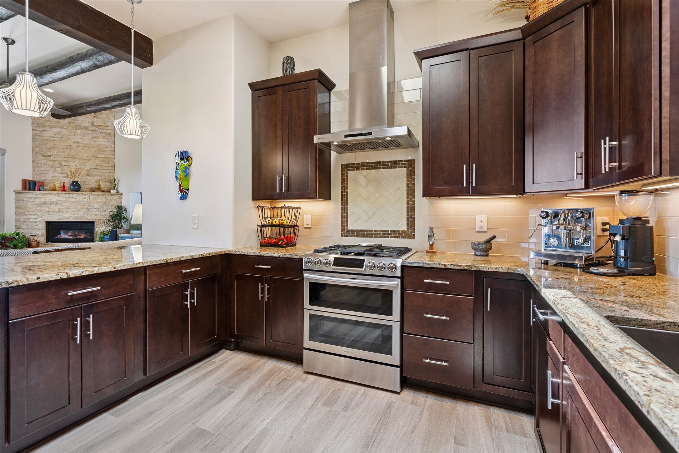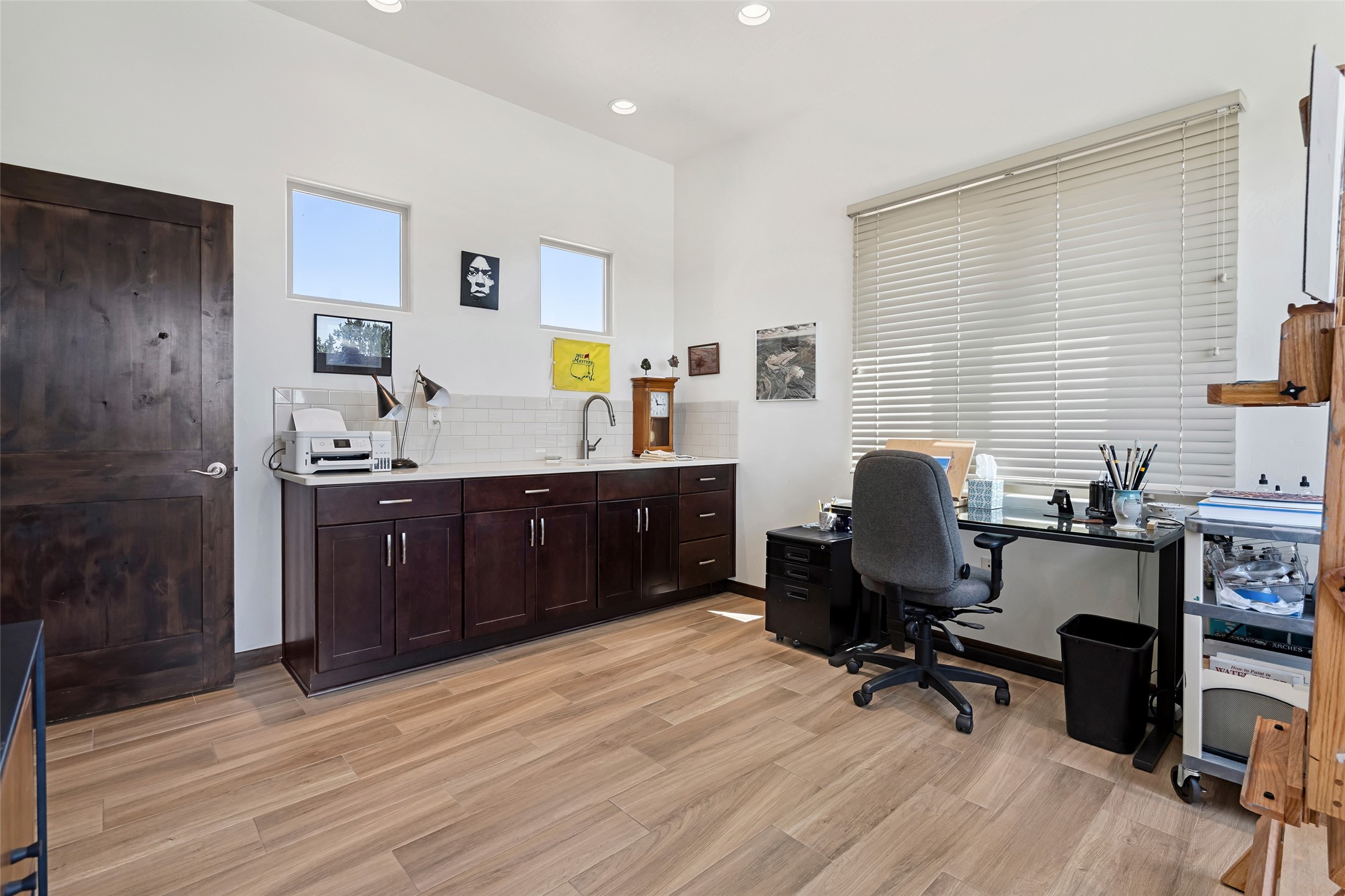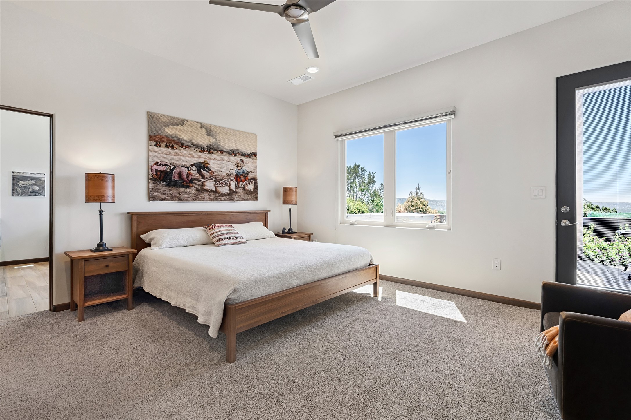 Perched high in The Ridges, a prestigious subdivisionbordering Eldorado greenspace and nearby conveniences,this stunning 3-bedroom, 2-bath home blends modern Southwestern design with serene high-desert living. Thoughtfully situated on 4.08 acres, the home features an open-concept layout that seamlessly connects the kitchen, dining, and living areas, ideal for entertaining or quiet enjoyment. The corner gas fireplace and overhead vigas add coziness andwarmthand expansive picture windows frame breathtaking panoramic views flooding the interior with natural light. Step outside to a spacious covered portal surrounded by an enclosed courtyard, perfect for morning coffee or evening gatherings under the stars. Themature, xeriscape landscaping is enhanced by a drip irrigation system, and a meandering pathwayleads to peaceful secluded areasto take in the fiery sunsetsof the Galisteo Basin and the morning sun rising over theSangre de Cristo Mountains.A dedicated artist's studio, complete with water and storage space, offers a private haven for creativity or a flexible bonus space.The oversized owner'ssuite features a separate tub and shower with walk-in closet, and you will love the finished over size garage with workshop! This is more than a home; it'sa private retreat that captures the essence of Santa Fe living!