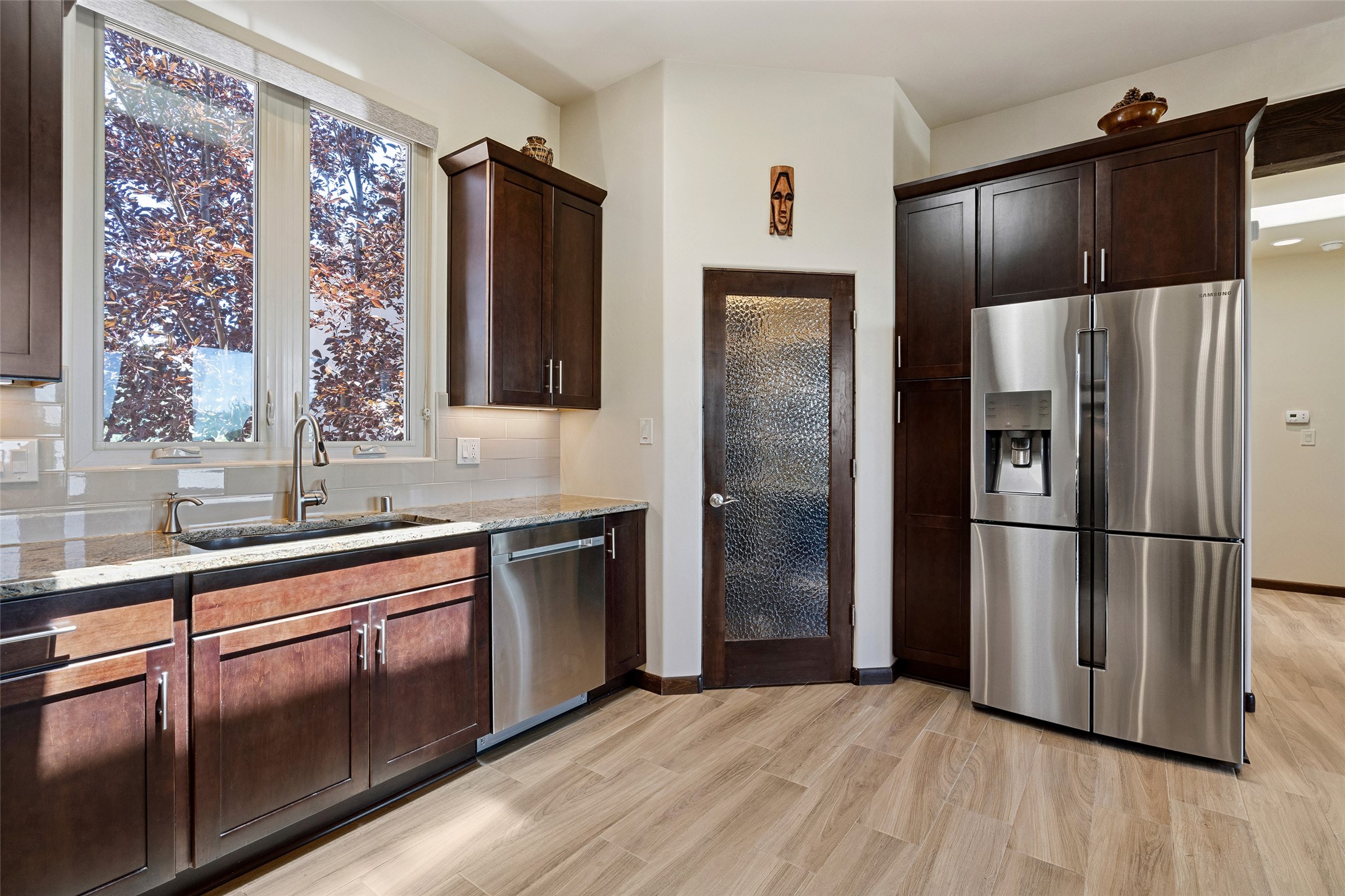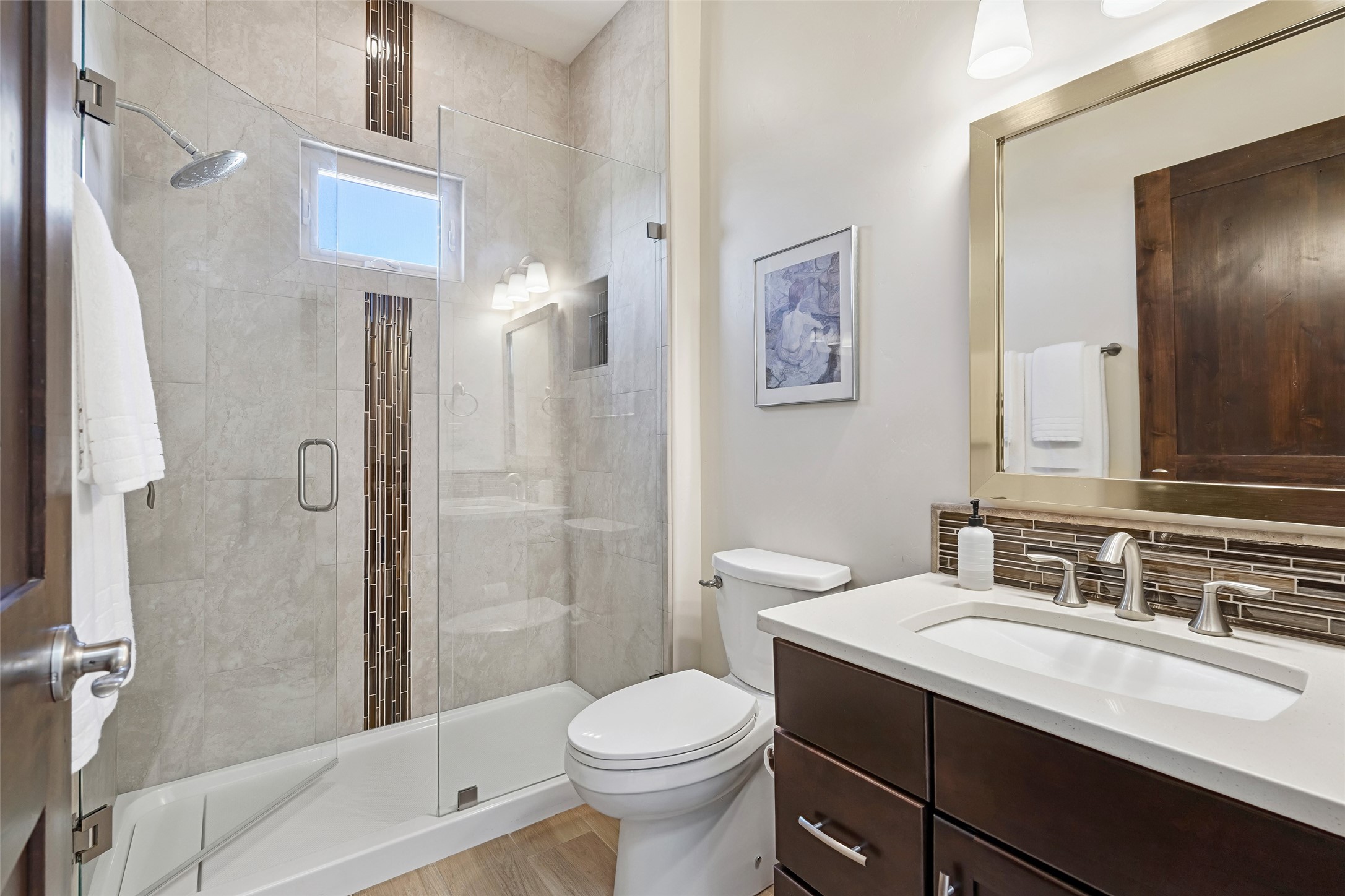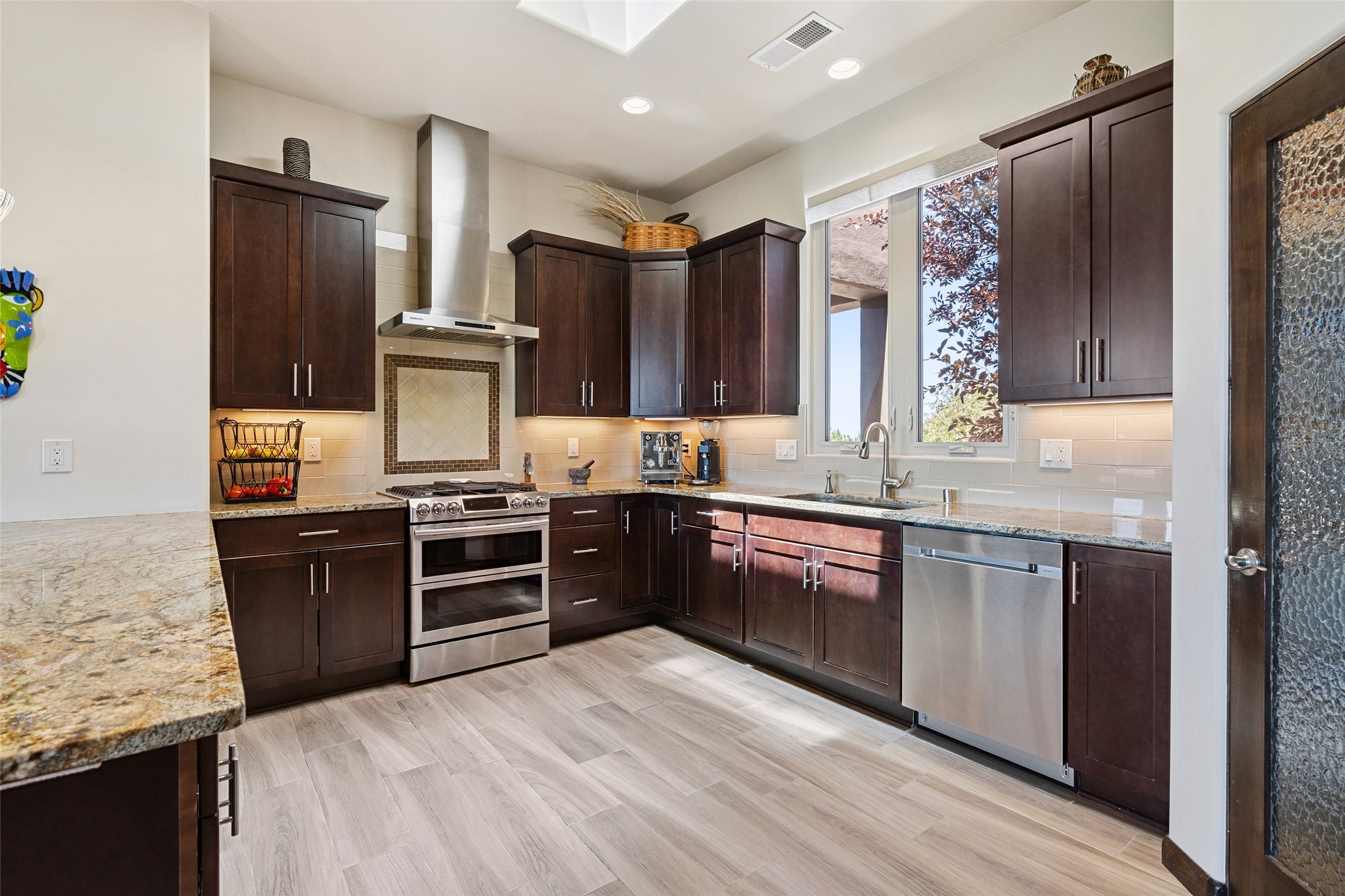 Perched high in The Ridges, a prestigious subdivisionbordering Eldorado greenspace and nearby conveniences,this stunning 3-bedroom, 2-bath home blends modern Southwestern design with serene high-desert living. Thoughtfully situated on 4.08 acres, the home features an open-concept layout that seamlessly connects the kitchen, dining, and living areas, ideal for entertaining or quiet enjoyment. The corner gas fireplace and overhead vigas add coziness andwarmthand expansive picture windows frame breathtaking panoramic views flooding the interior with natural light. Step outside to a spacious covered portal surrounded by an enclosed courtyard, perfect for morning coffee or evening gatherings under the stars. Themature, xeriscape landscaping is enhanced by a drip irrigation system, and a meandering pathwayleads to peaceful secluded areasto take in the fiery sunsetsof the Galisteo Basin and the morning sun rising over theSangre de Cristo Mountains.A dedicated artist's studio, complete with water and storage space, offers a private haven for creativity or a flexible bonus space.The oversized owner'ssuite features a separate tub and shower with walk-in closet, and you will love the finished over size garage with workshop! This is more than a home; it'sa private retreat that captures the essence of Santa Fe living!