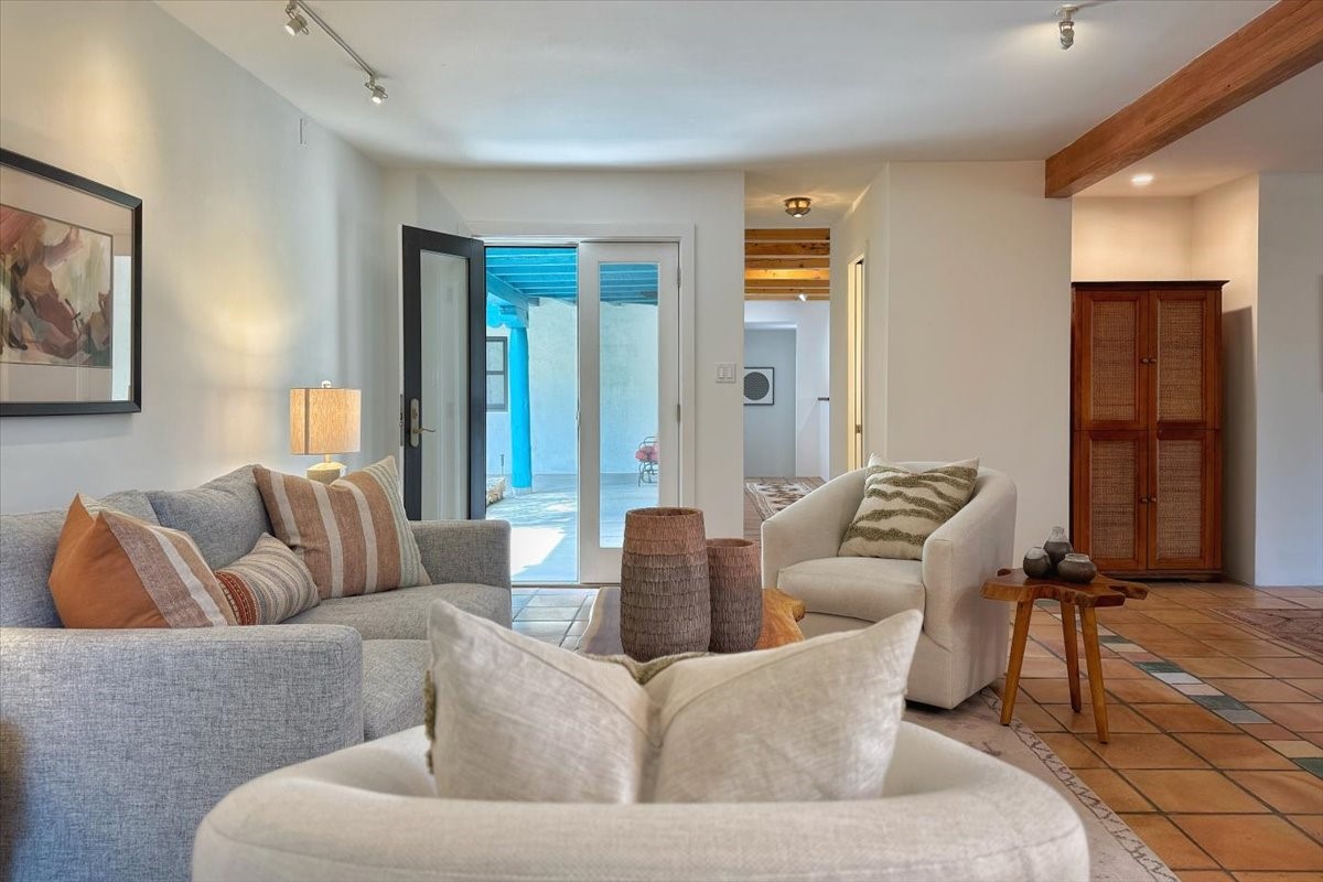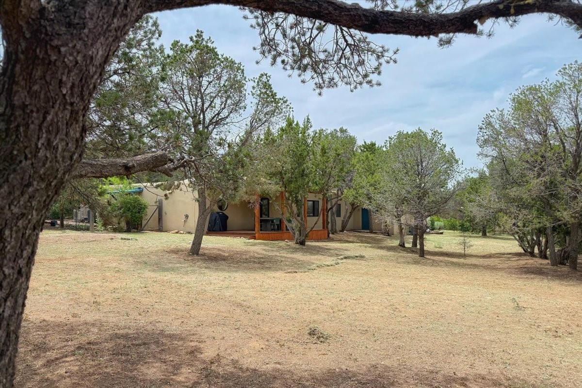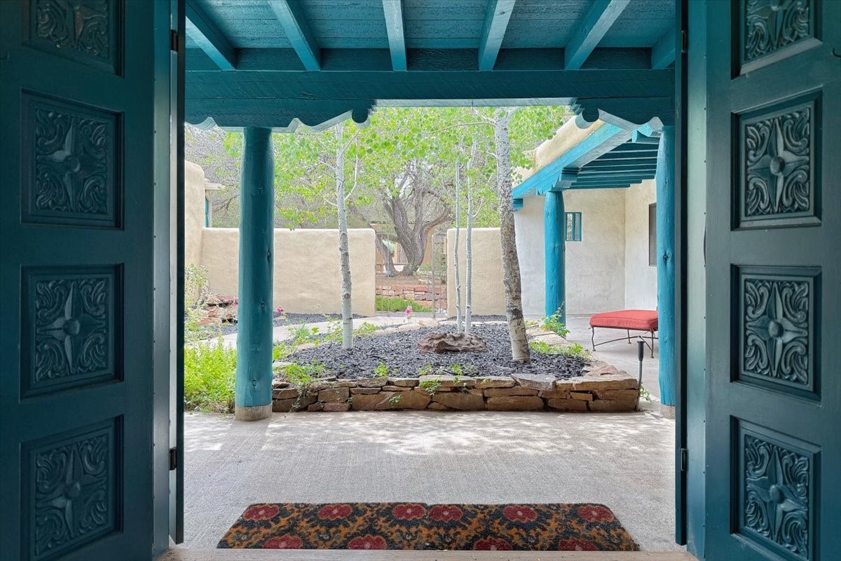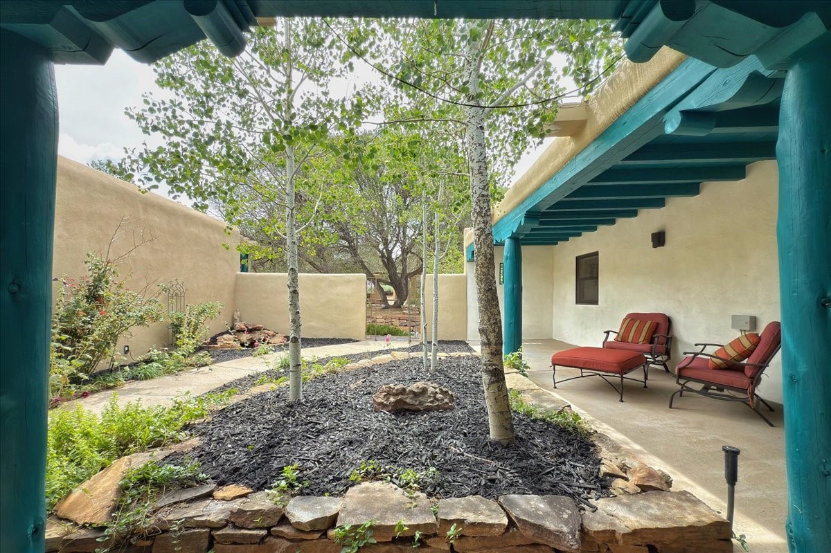 Tucked away in the highly sought-after Sol Y Lomas neighborhood, this peaceful property with mature landscaping on over an acre of land with a fenced-in backyard offers flexible living, exceptional privacy, and a sense of serenity--minutes from the Plaza, restaurants, and I-25.The 3 bed / 2.5 bath main house features a spacious living room with a fireplace and an excellent view of old-growth trees in your fenced-in backyard, an additional sitting room or lounge off the kitchen, and a generous primary suite with a large walk-in closet, soaking tub, and private patio. Nearly every window offers beautiful views of mature trees, giving the home a tranquil, retreat-like feel.Ideal for multigenerational living, rental income, or a home office, the 1 bed / 1 bath casita, with a separate entrance, includes its own washer and dryer, kitchenette, and sits adjacent to a charming courtyard framed by aspens. There is also a separate studio/flex space/arts and crafts room in the back of the main home with its own entrance. And a storage shed! Entertain with ease both indoors and out--whether you're gathering in the inviting living spaces or unwinding in one of the many outdoor areas perfect for gardening, dining, or soaking in the natural beauty. Additional features include a newer all-in-one on-demand hot water heater and boiler(c. 2023), new lighting in the kitchen and primary bedroom walk-in closet. An unbeatable location on a dead-end street just off Old Pecos Trail with quick access to all that Santa Fe has to offer such as Canyon Road, the Historic Plaza, Fine Dining, World-Class Galleries, Museum Hill, and so much more.