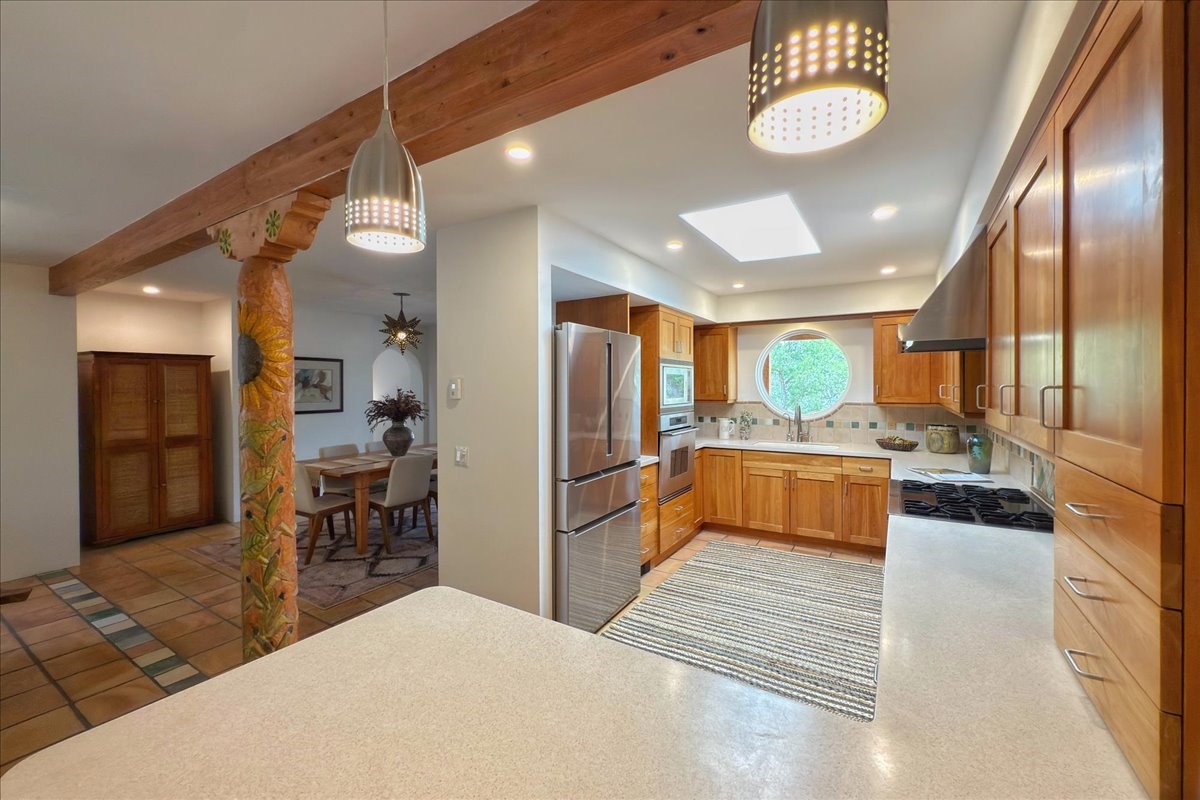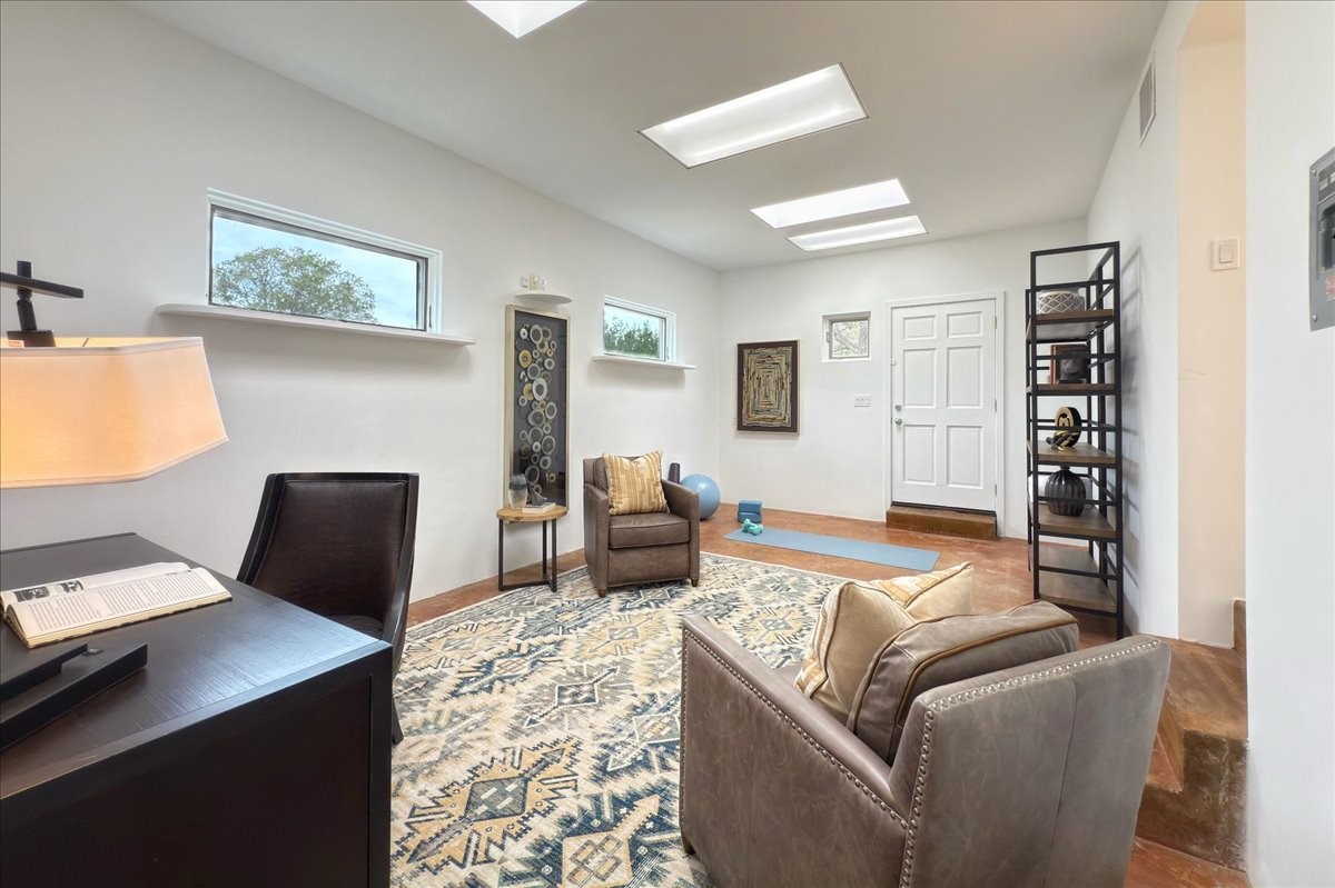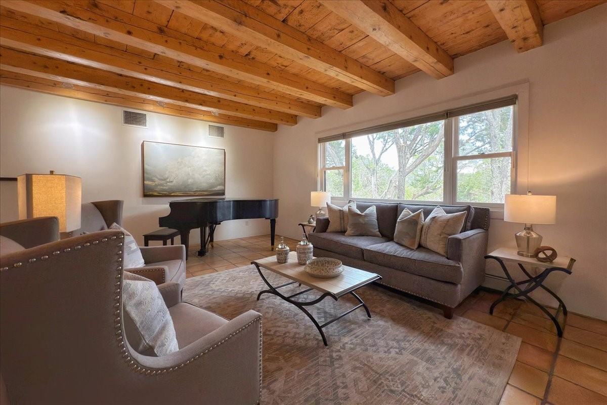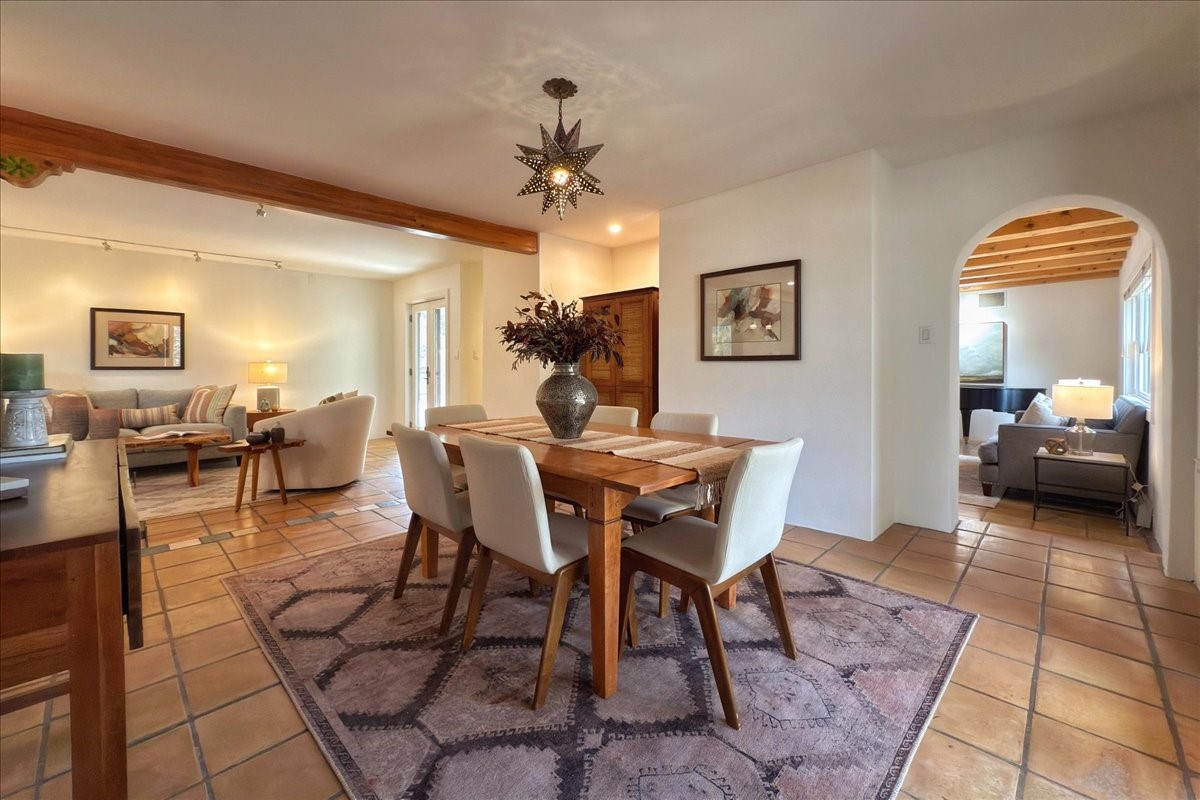 Tucked away in the highly sought-after Sol Y Lomas neighborhood, this peaceful property with mature landscaping on over an acre of land with a fenced-in backyard offers flexible living, exceptional privacy, and a sense of serenity--minutes from the Plaza, restaurants, and I-25.The 3 bed / 2.5 bath main house features a spacious living room with a fireplace and an excellent view of old-growth trees in your fenced-in backyard, an additional sitting room or lounge off the kitchen, and a generous primary suite with a large walk-in closet, soaking tub, and private patio. Nearly every window offers beautiful views of mature trees, giving the home a tranquil, retreat-like feel.Ideal for multigenerational living, rental income, or a home office, the 1 bed / 1 bath casita, with a separate entrance, includes its own washer and dryer, kitchenette, and sits adjacent to a charming courtyard framed by aspens. There is also a separate studio/flex space/arts and crafts room in the back of the main home with its own entrance. And a storage shed! Entertain with ease both indoors and out--whether you're gathering in the inviting living spaces or unwinding in one of the many outdoor areas perfect for gardening, dining, or soaking in the natural beauty. Additional features include a newer all-in-one on-demand hot water heater and boiler(c. 2023), new lighting in the kitchen and primary bedroom walk-in closet. An unbeatable location on a dead-end street just off Old Pecos Trail with quick access to all that Santa Fe has to offer such as Canyon Road, the Historic Plaza, Fine Dining, World-Class Galleries, Museum Hill, and so much more.