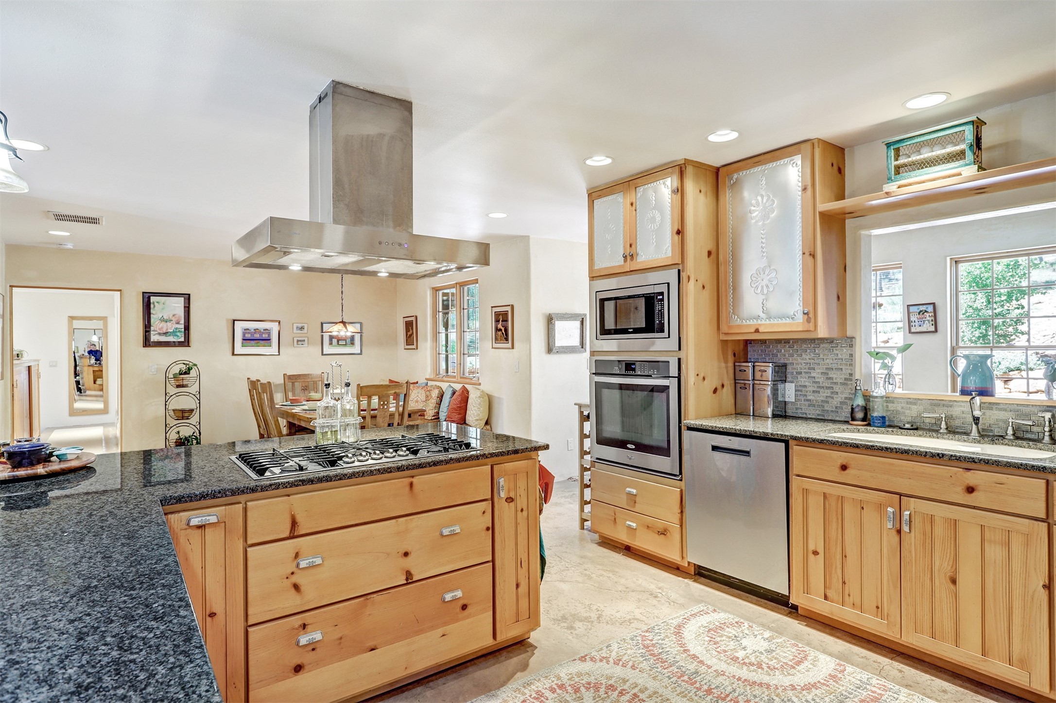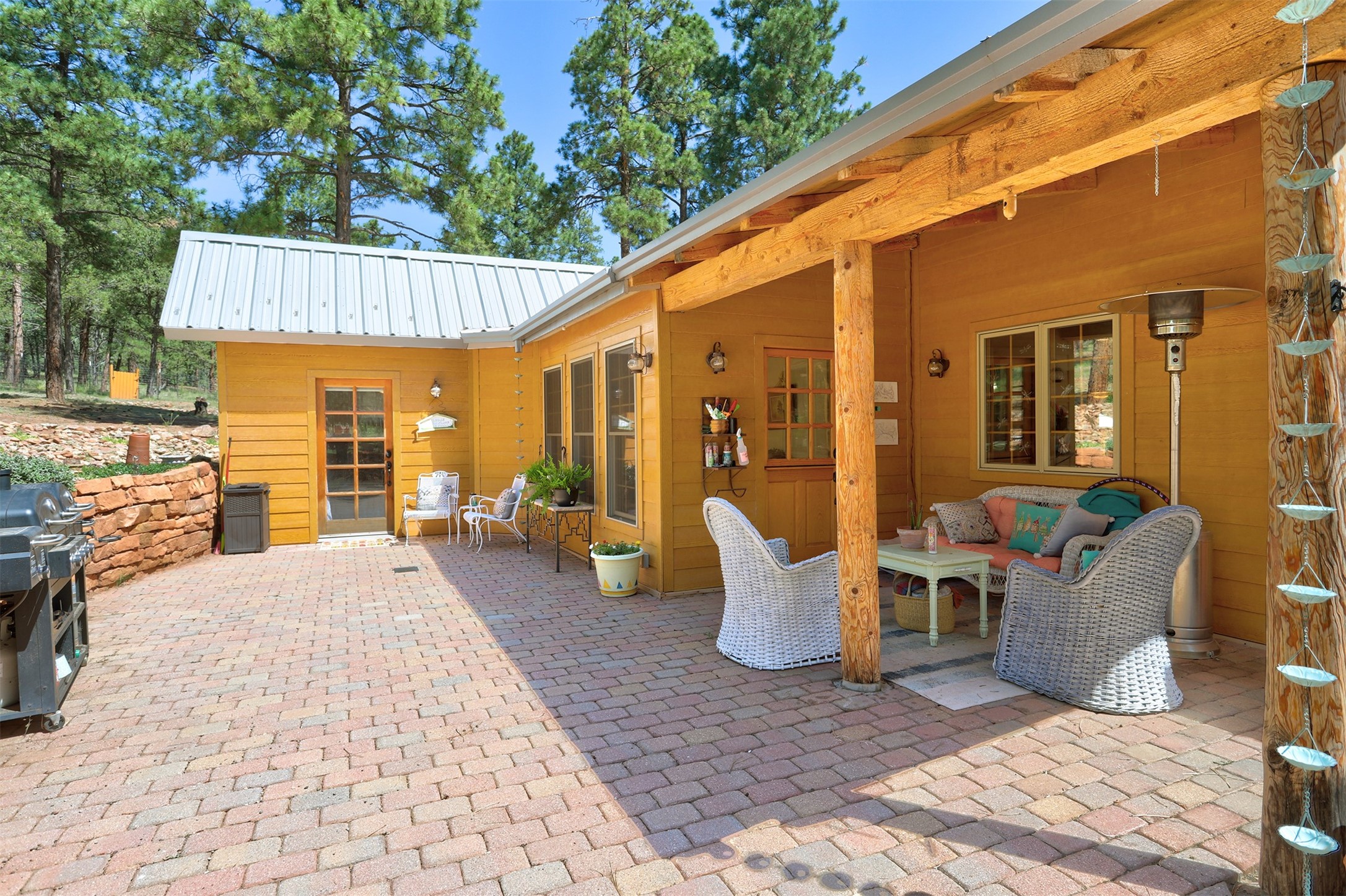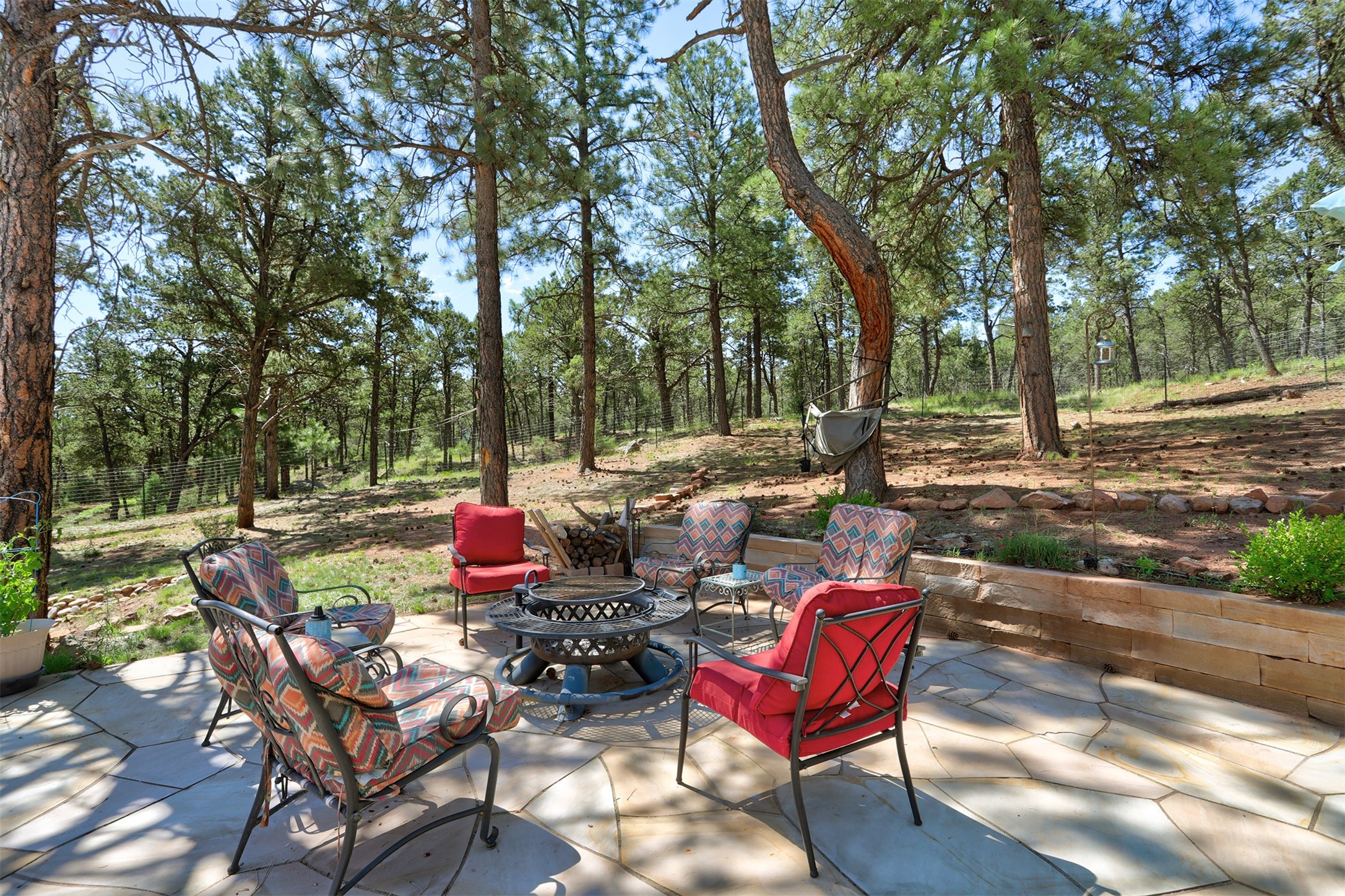 Attention Mountain Bikers and Horse Enthusiasts! Serene 12.5-Acre Retreat with mountain views! Main house and guest casita over garage is just 25 minutes from downtown Santa Fe. Nestled at the base of the stunning Glorieta Mesa this exceptional property with private well offers access to miles of scenic trails perfect for mountain biking and horseback riding. Located across the highway from the famous Glorieta Mountain Biking Trails, this property is ideally located for outdoor lovers. The main home blends rustic charm with modern comfort, featuring a spacious living area, two primary suites, a dedicated office, and a convenient dog bath. The tranquil, private setting makes it ideal for full-time living or a weekend getaway. Step outside to the elevated sandstone terrace--a perfect space for dining, relaxing, or taking in the panoramic mountain views. A standout feature is the 800 sq. ft. casita above the garage, complete with a strong rental history--ideal as an income-producing long-term rental or a welcoming guest suite.Additional highlights include a fully fenced yard, ample RV parking, direct access to the Santa Fe National Forest, and horse-friendly property making it easy to enjoy trail riding and open space right from your property.Whether you're seeking a serene lifestyle, an investment opportunity, or proximity to Santa Fe's rich cultural and outdoor offerings, this unique property delivers on all fronts.