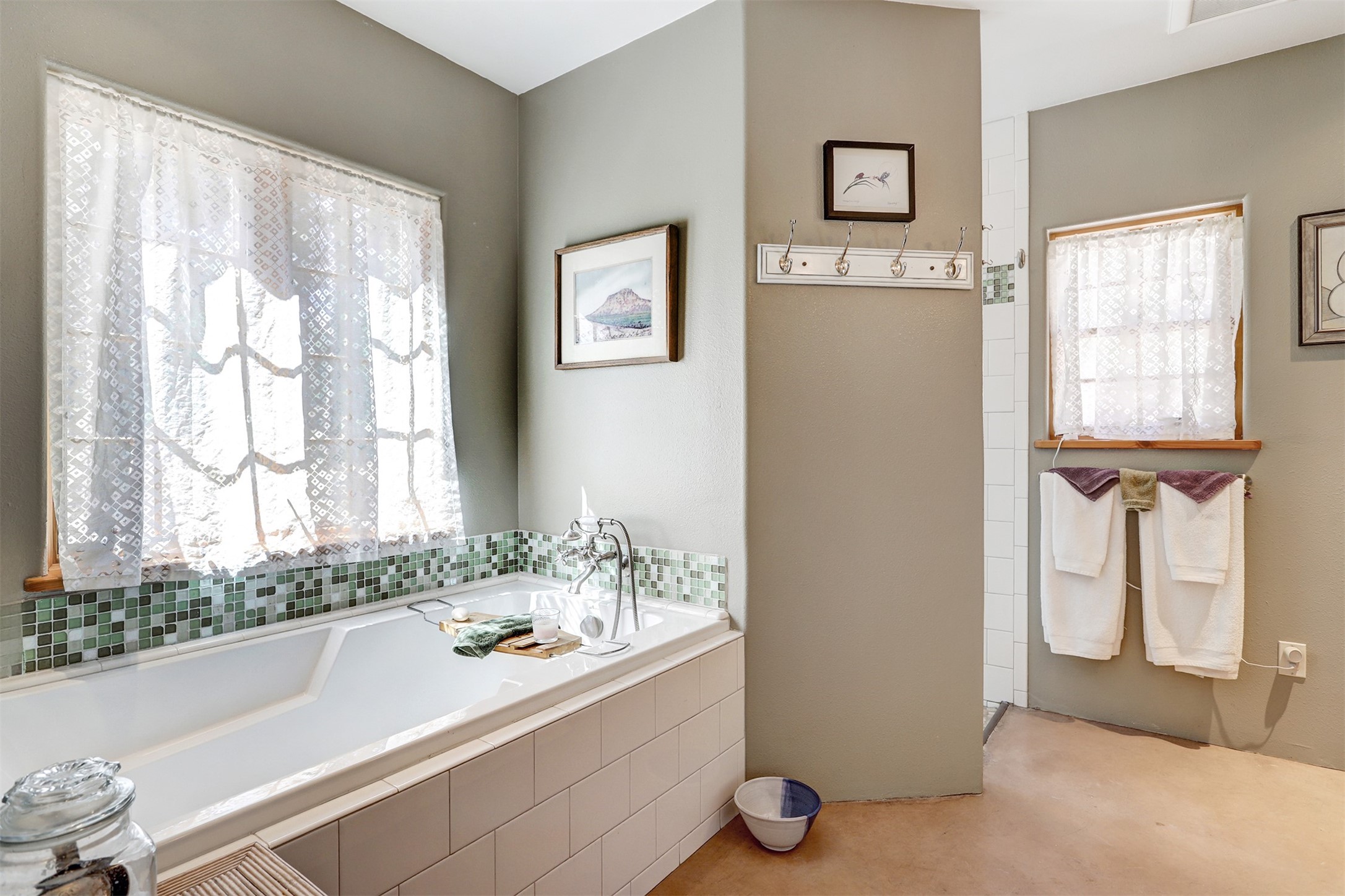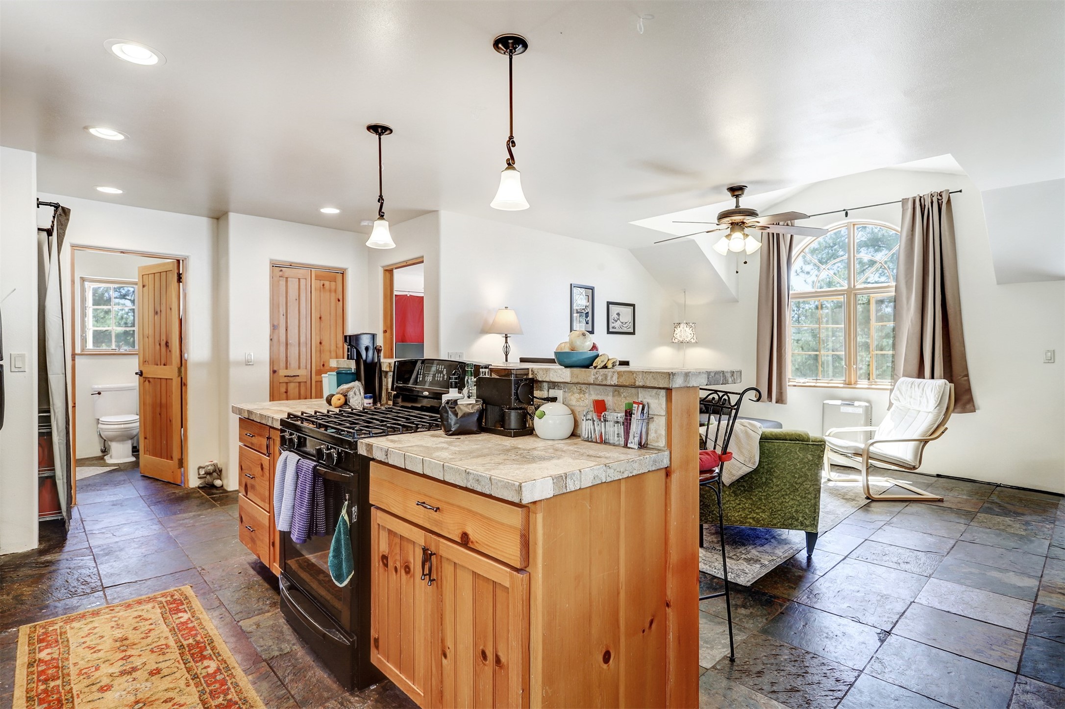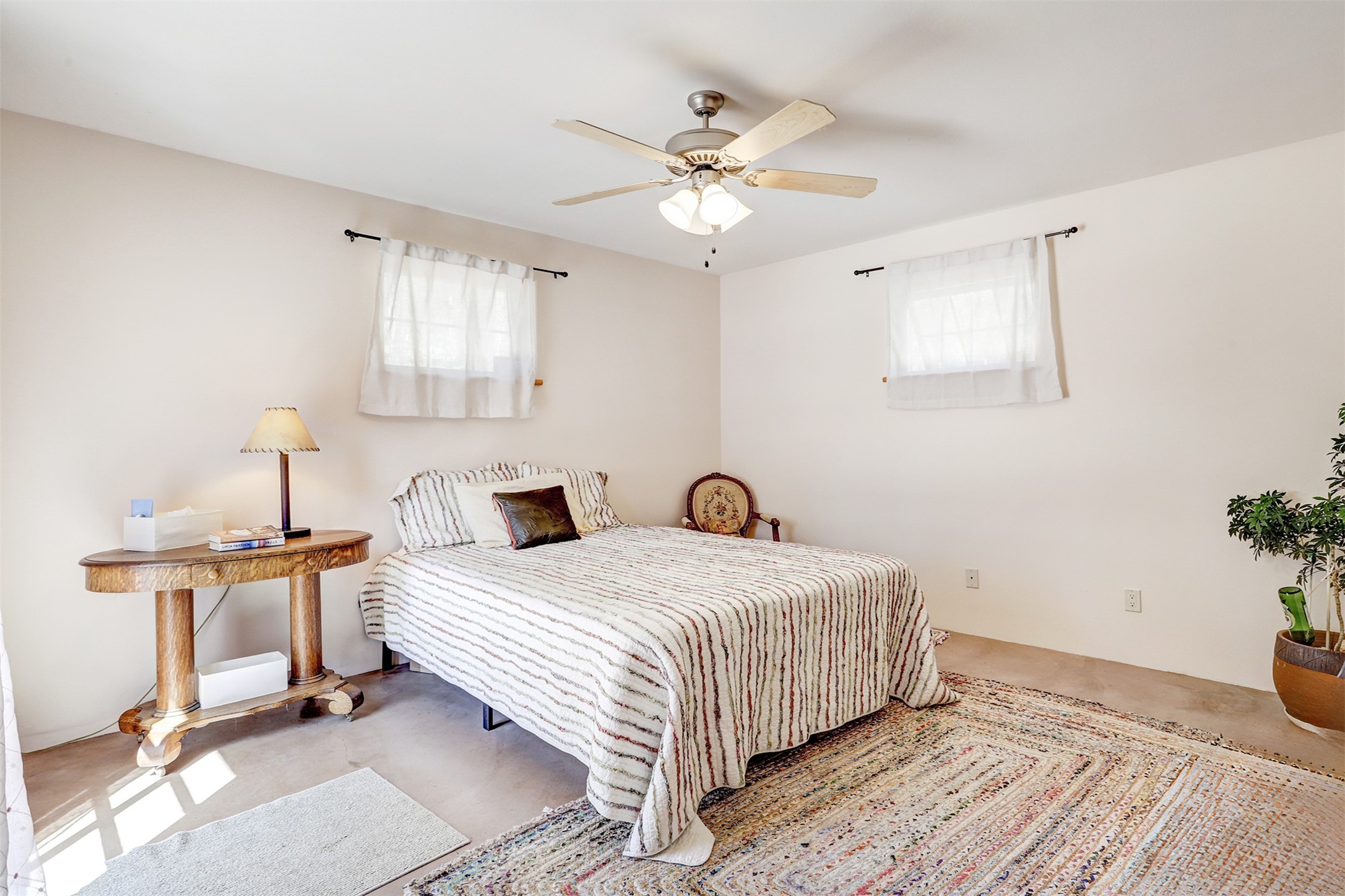 Attention Mountain Bikers and Horse Enthusiasts! Serene 12.5-Acre Retreat with mountain views! Main house and guest casita over garage is just 25 minutes from downtown Santa Fe. Nestled at the base of the stunning Glorieta Mesa this exceptional property with private well offers access to miles of scenic trails perfect for mountain biking and horseback riding. Located across the highway from the famous Glorieta Mountain Biking Trails, this property is ideally located for outdoor lovers. The main home blends rustic charm with modern comfort, featuring a spacious living area, two primary suites, a dedicated office, and a convenient dog bath. The tranquil, private setting makes it ideal for full-time living or a weekend getaway. Step outside to the elevated sandstone terrace--a perfect space for dining, relaxing, or taking in the panoramic mountain views. A standout feature is the 800 sq. ft. casita above the garage, complete with a strong rental history--ideal as an income-producing long-term rental or a welcoming guest suite.Additional highlights include a fully fenced yard, ample RV parking, direct access to the Santa Fe National Forest, and horse-friendly property making it easy to enjoy trail riding and open space right from your property.Whether you're seeking a serene lifestyle, an investment opportunity, or proximity to Santa Fe's rich cultural and outdoor offerings, this unique property delivers on all fronts.