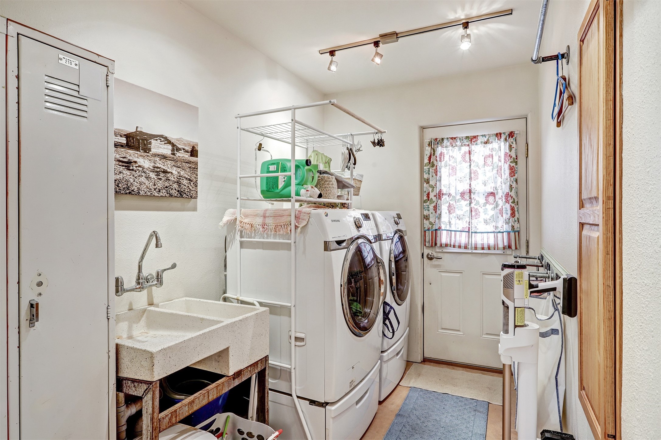 • AppliancesDryer, Dishwasher, Gas Cooktop, Disposal, Gas Water Heater, Microwave, Oven, Range, Refrigerator, Water Softener, Water Heater, Washer