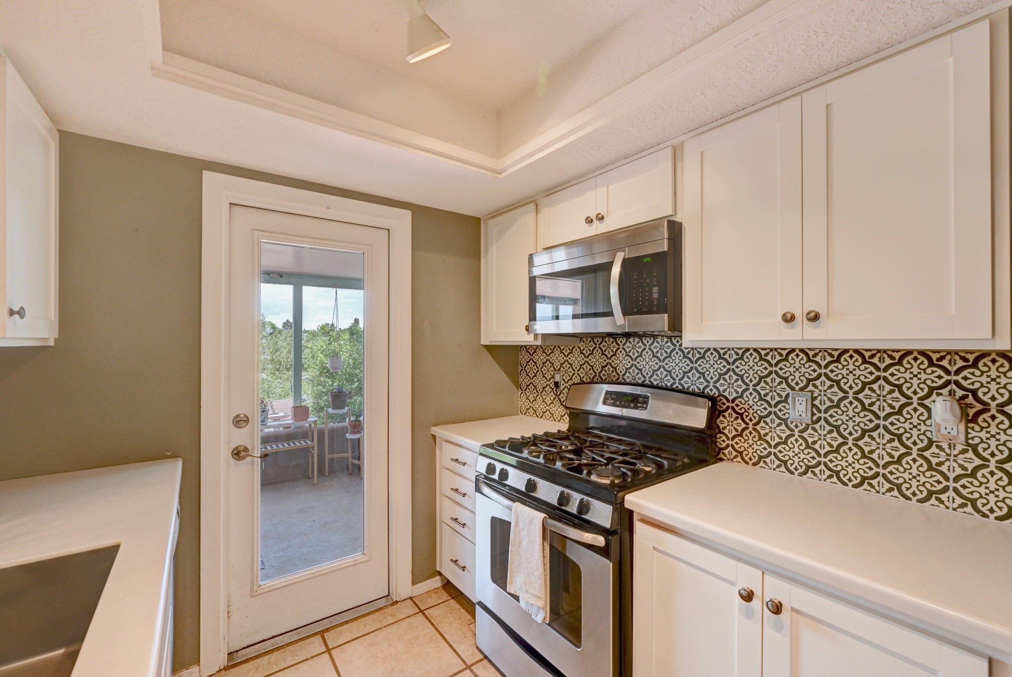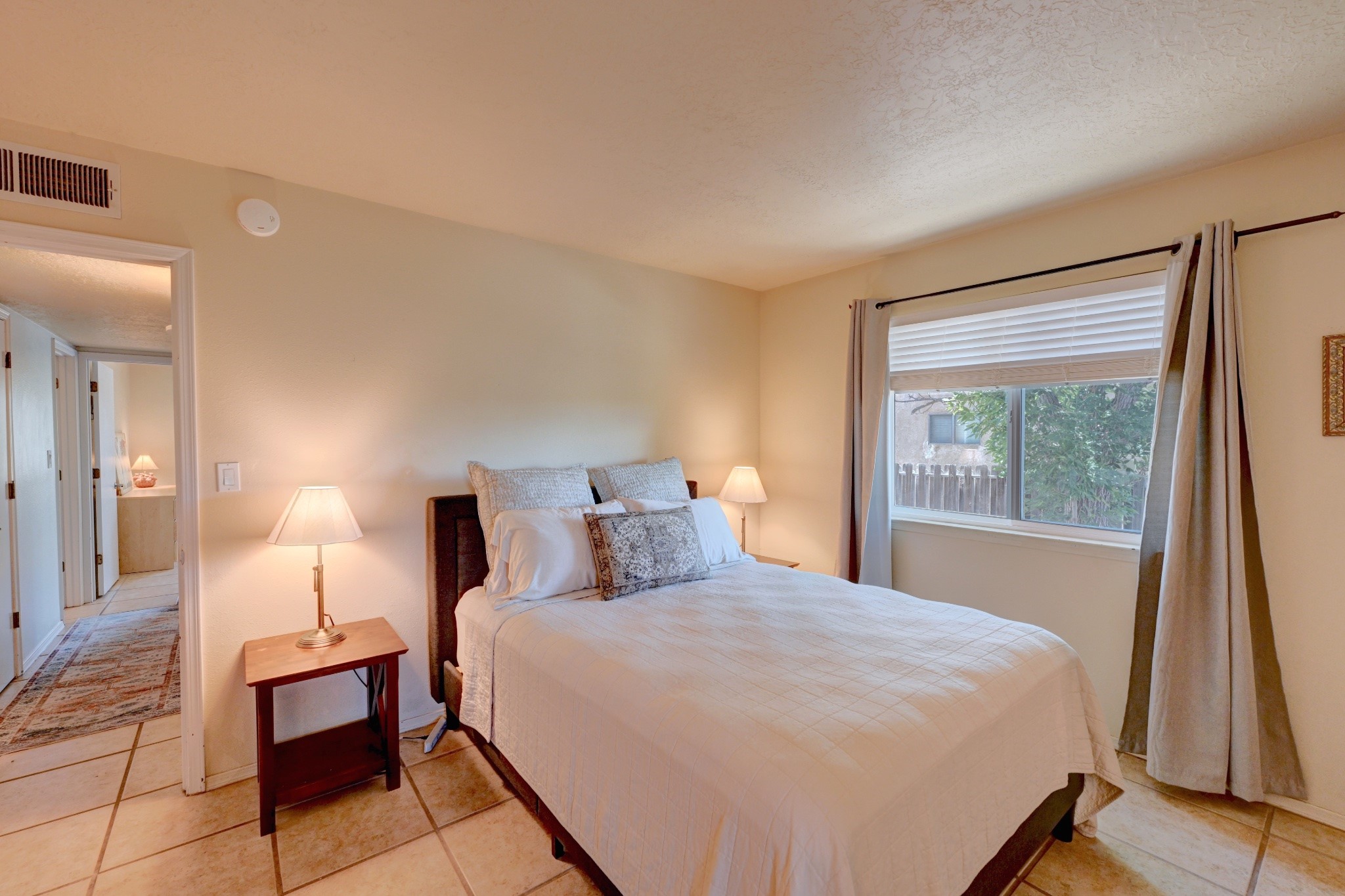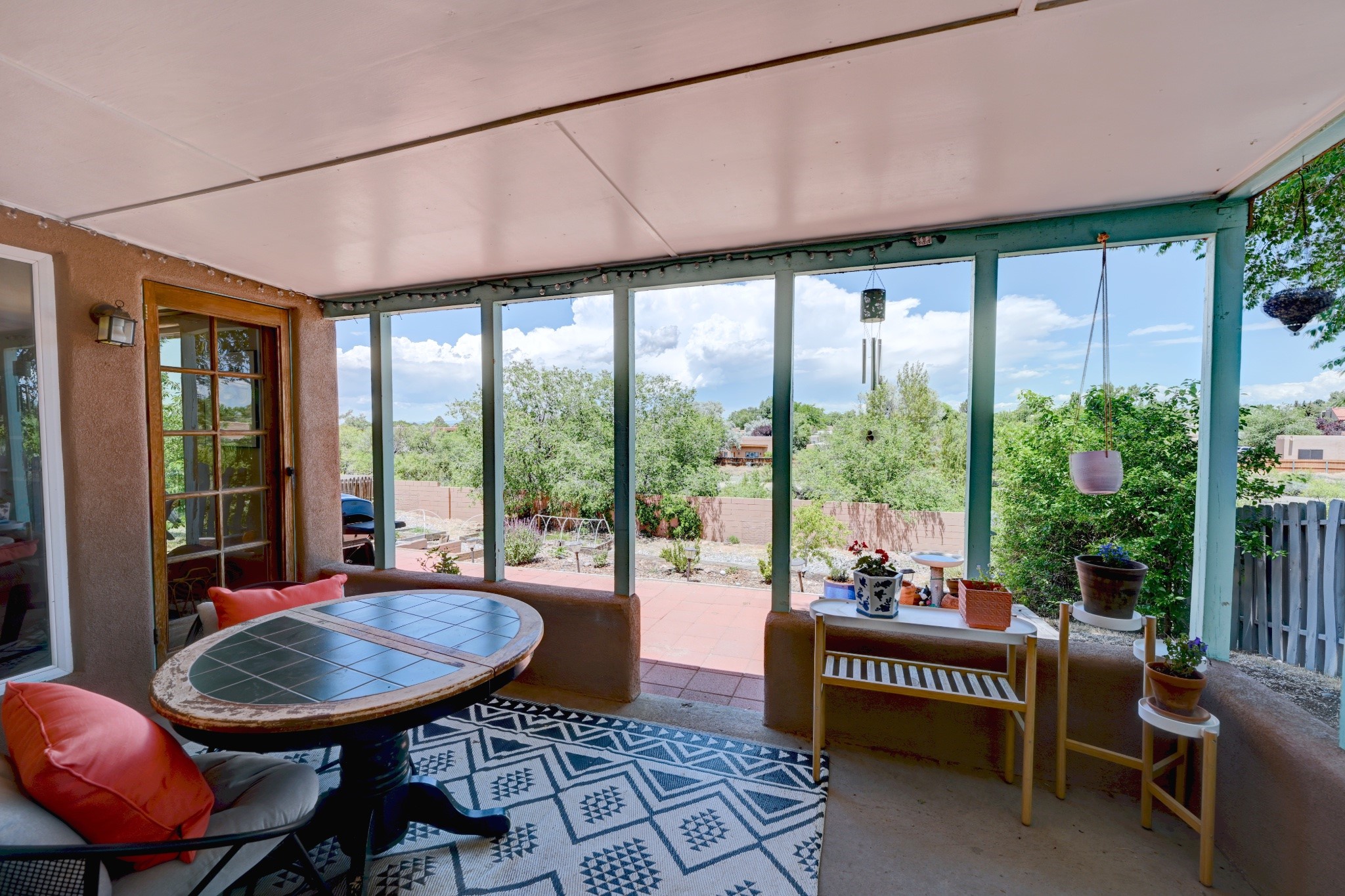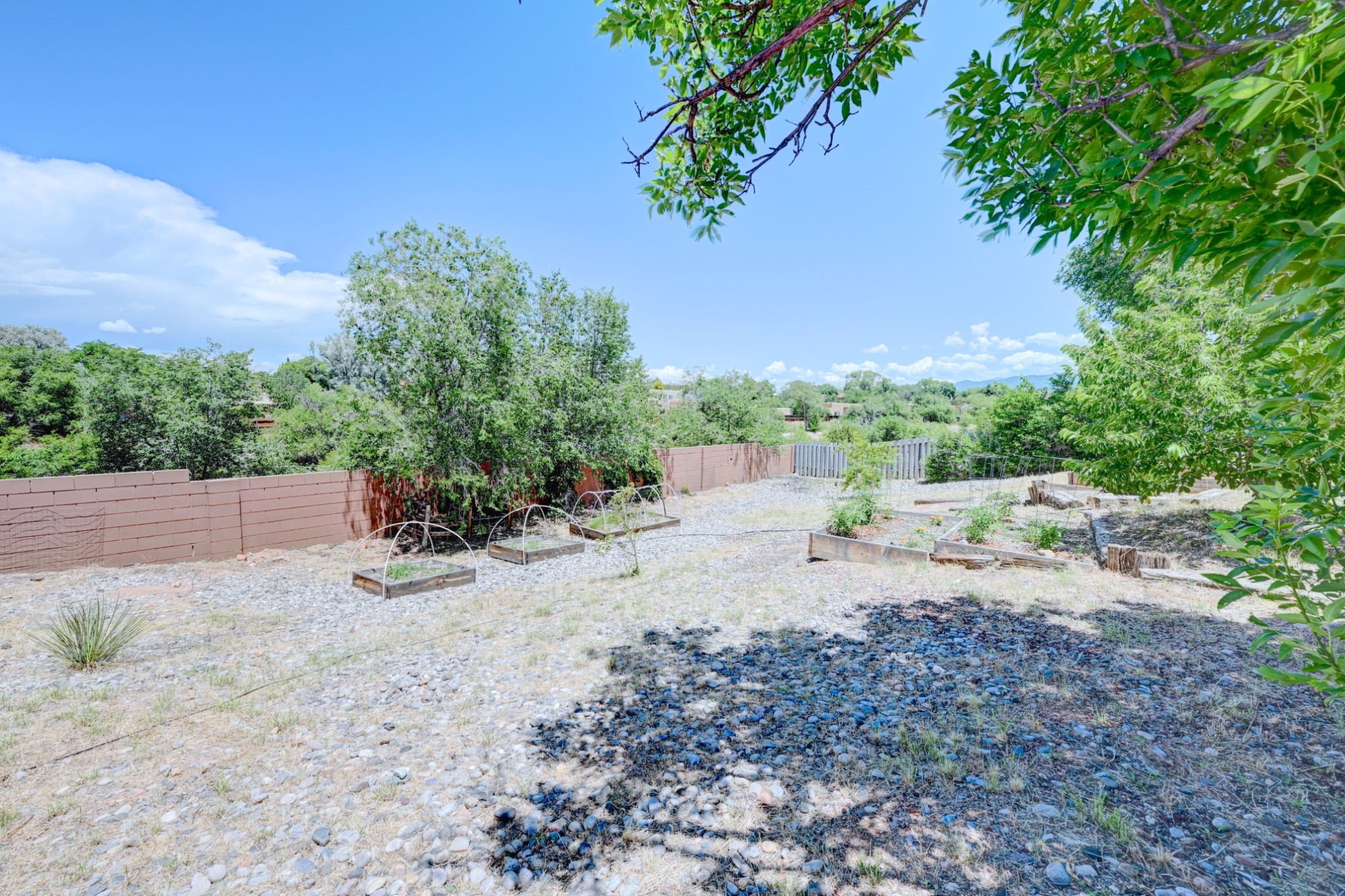 Nestled in a quiet and friendly Santa Fe neighborhood, this updated 3-bedroom, 2-bathroom home blends charm with modern convenience. With 1,154 square feet of interior space, the layout offers an easy flow between living, dining, and kitchen areas--ideal for everyday living and entertaining. A kiva fireplace adds cozy Southwestern character, perfect for curling up during those cool desert nights.Step outside and enjoy a private, spacious lot adorned with peach, pear, and cherry trees, plus perennial plants that return each year. A drip irrigation system helps keep them--and your weekends--low-maintenance. The two-car garage features newly installed doors as of 2024, pairing functionality with curb appeal.The kitchen was completely remodeled in 2020 and boasts a new refrigerator and Bosch dishwasher, while both bathrooms received full renovations in 2023. You'll also enjoy the benefits of smart climate control with a programmable thermostat, an evaporative cooler, and efficient windows installed in 2017 that help keep things comfortable year-round. Floating shelves and built-in bookshelves offer both storage and style touches throughout the home.Located just minutes from conveniences like Albertson's Supermarket and Santa Fe High School, the home's location also puts you a short trip from Dr. Martin Luther King Jr. Park--ideal for weekend strolls or playful afternoons. Commuting? Zia Road Station is nearby, making travel a breeze, whether you're heading into town or venturing further out.Thoughtfully maintained and tastefully updated, this home offers a great balance between comfort, location, and character. Whether you're planting roots or seeking a cozy retreat with fruit trees and plenty of sunshine, this property could be your perfect fit. Don't forget to check out the 3D Walkthrough and Drone Video.