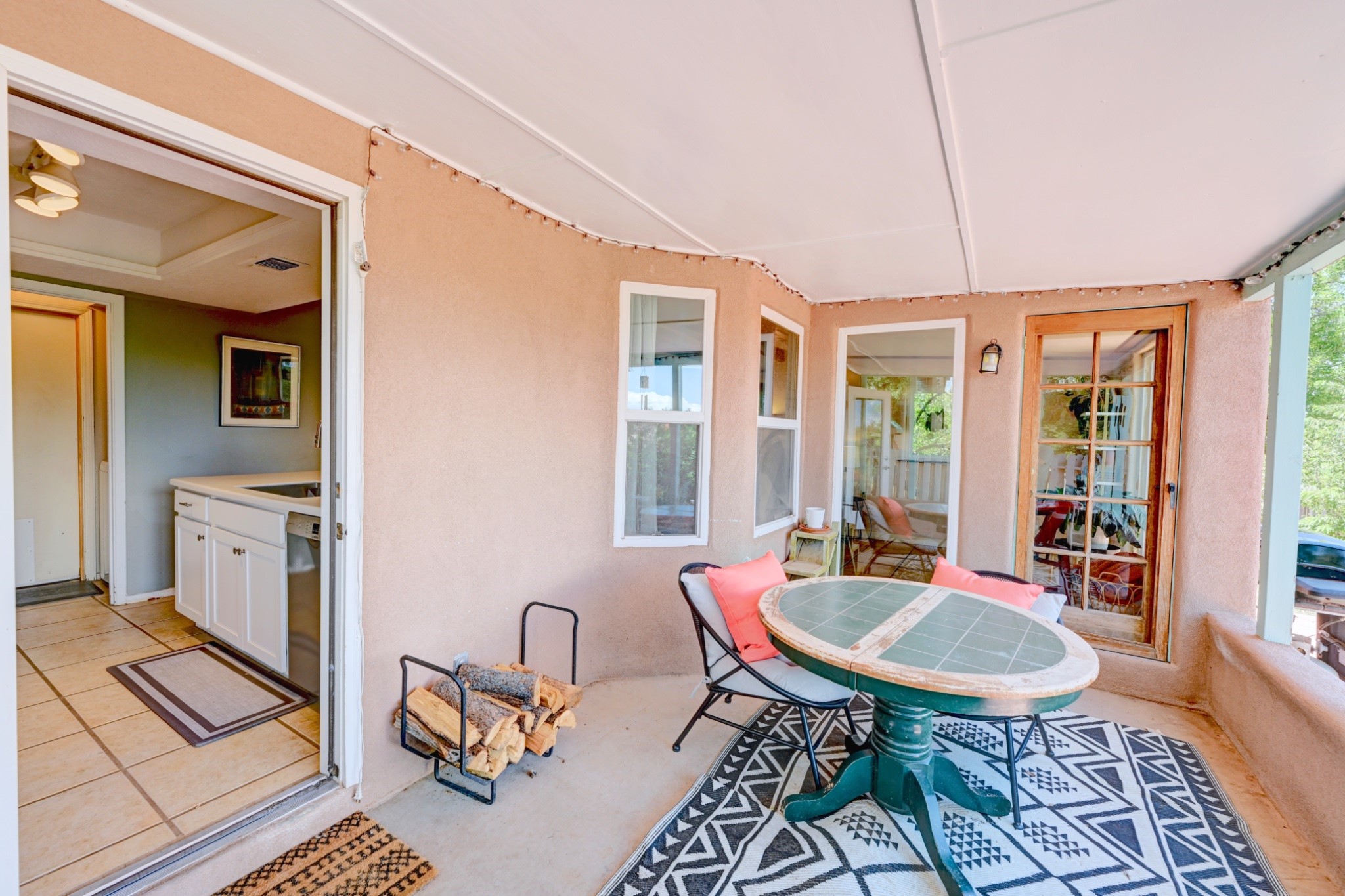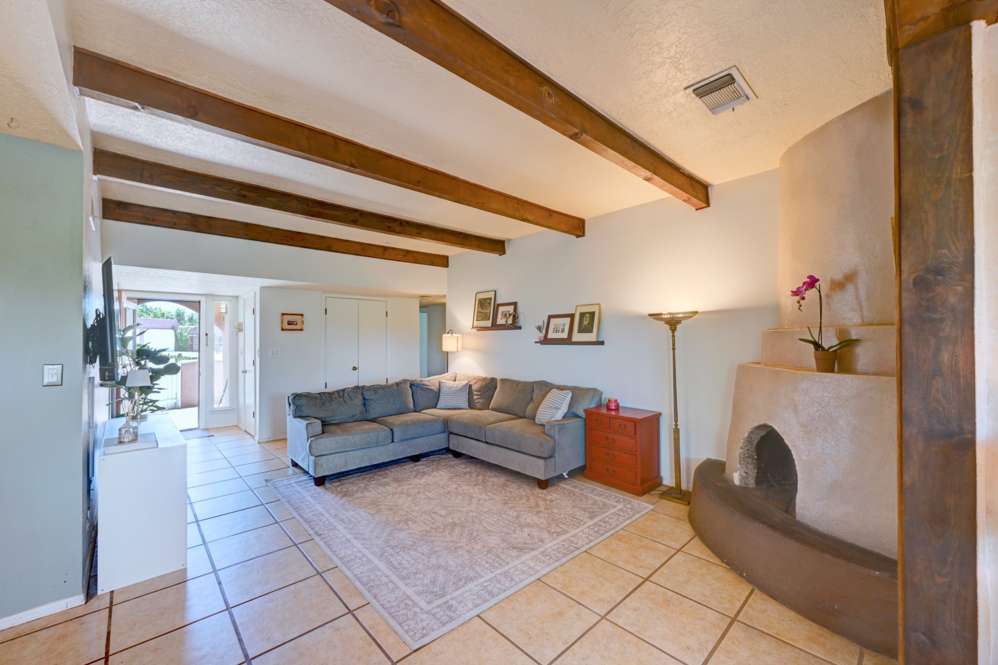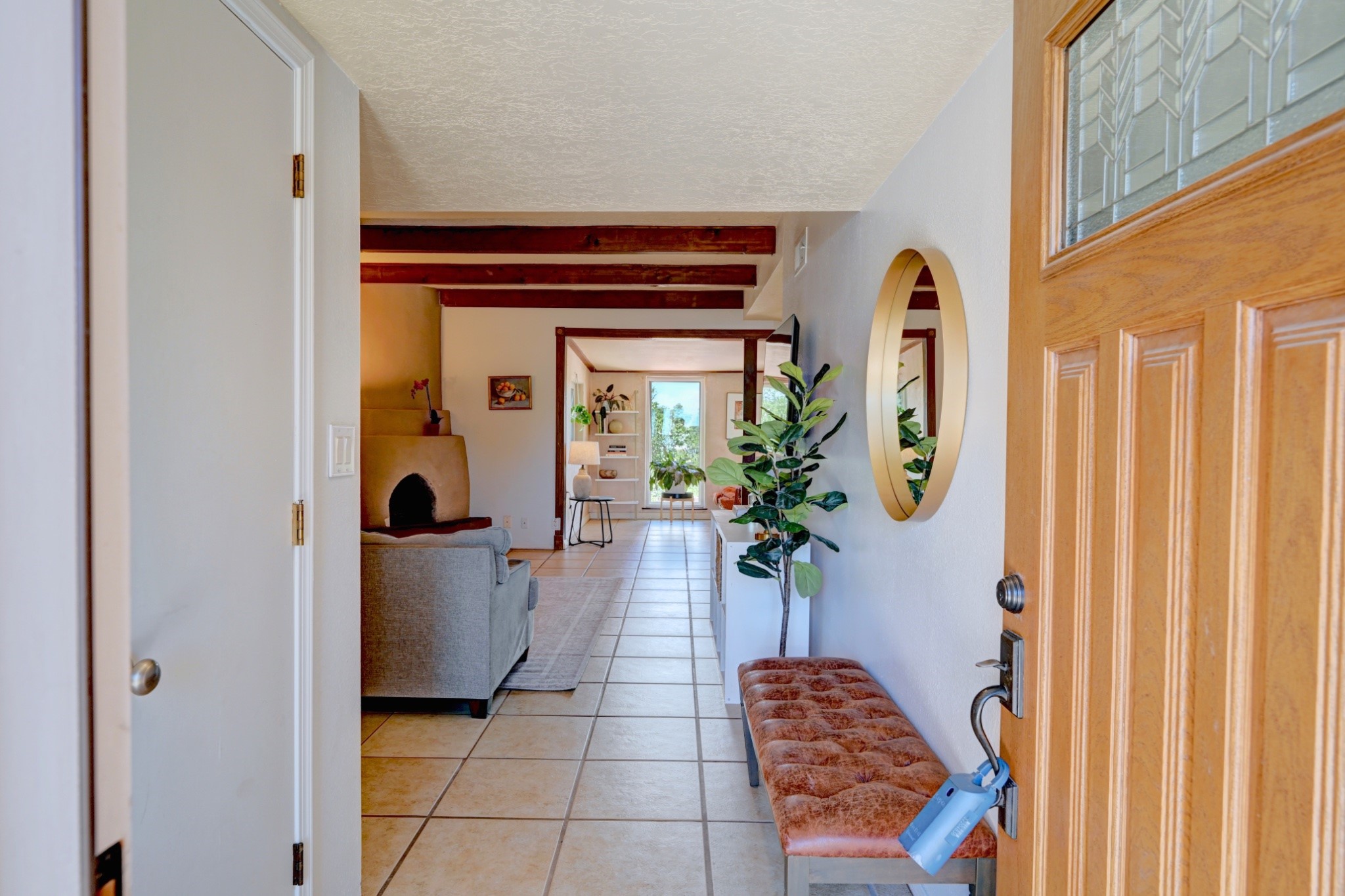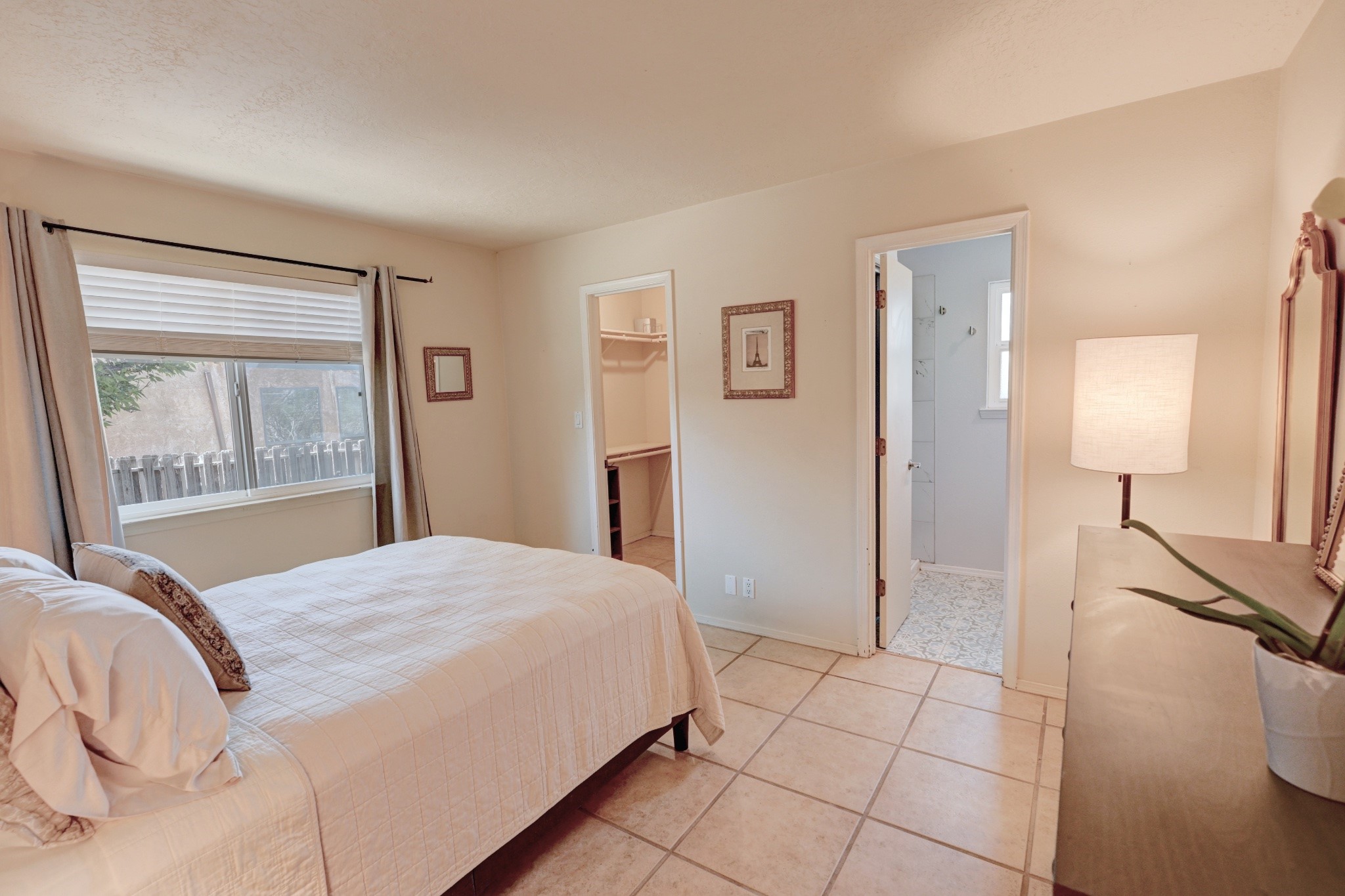 Nestled in a quiet and friendly Santa Fe neighborhood, this updated 3-bedroom, 2-bathroom home blends charm with modern convenience. With 1,154 square feet of interior space, the layout offers an easy flow between living, dining, and kitchen areas--ideal for everyday living and entertaining. A kiva fireplace adds cozy Southwestern character, perfect for curling up during those cool desert nights.Step outside and enjoy a private, spacious lot adorned with peach, pear, and cherry trees, plus perennial plants that return each year. A drip irrigation system helps keep them--and your weekends--low-maintenance. The two-car garage features newly installed doors as of 2024, pairing functionality with curb appeal.The kitchen was completely remodeled in 2020 and boasts a new refrigerator and Bosch dishwasher, while both bathrooms received full renovations in 2023. You'll also enjoy the benefits of smart climate control with a programmable thermostat, an evaporative cooler, and efficient windows installed in 2017 that help keep things comfortable year-round. Floating shelves and built-in bookshelves offer both storage and style touches throughout the home.Located just minutes from conveniences like Albertson's Supermarket and Santa Fe High School, the home's location also puts you a short trip from Dr. Martin Luther King Jr. Park--ideal for weekend strolls or playful afternoons. Commuting? Zia Road Station is nearby, making travel a breeze, whether you're heading into town or venturing further out.Thoughtfully maintained and tastefully updated, this home offers a great balance between comfort, location, and character. Whether you're planting roots or seeking a cozy retreat with fruit trees and plenty of sunshine, this property could be your perfect fit. Don't forget to check out the 3D Walkthrough and Drone Video.