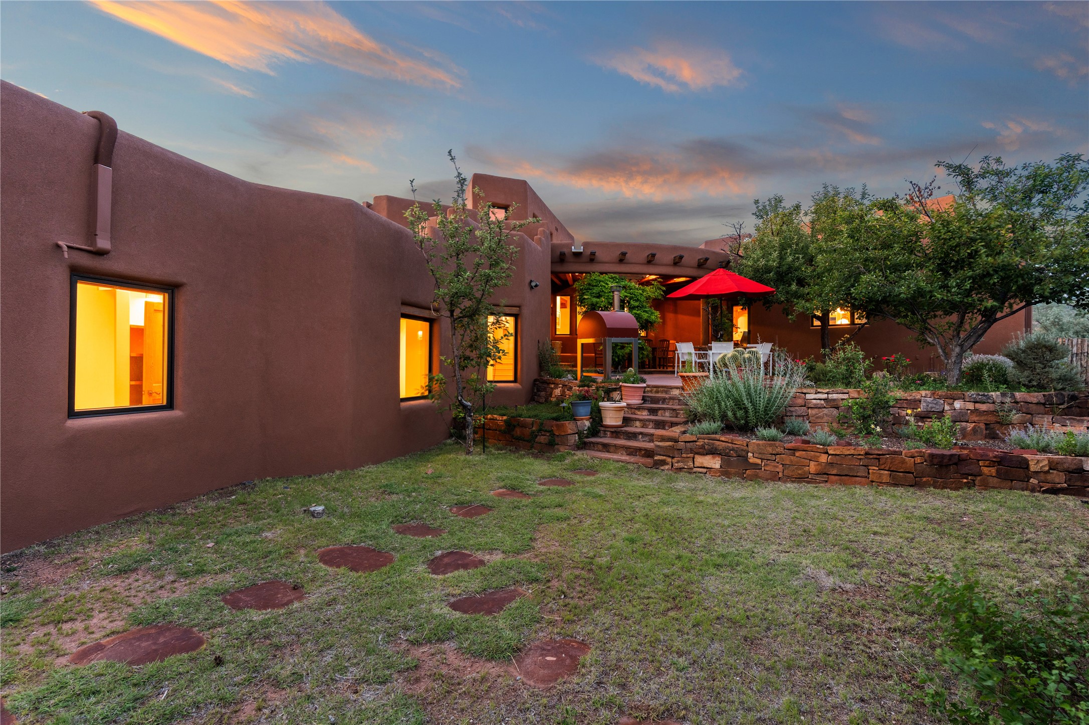 With spectacular mountain views in three directions and an enviable location just seven minutes from the Plaza, this recently remodeled home, originally constructed by noted builder Will Prull, is an exceptional estate. The 4,000-foot, 4-Bed + Office / 3.5 Bath Main House and spacious 1,700-foot 1-Bed / 2-Bath Guest House / Studio have gorgeous wood, stone, and tile finishes throughout. Nestled on a hilltop site within the exclusive Bishop Lodge Estates gated community, the property is located on 2.24 acres that overlook the storied Bishops Lodge and the National Forest. It enjoys unsurpassed, close-up views of the Sangre de Cristo mountains as well as stunning vistas of the Badlands and Jemez Mountains. It is in truly move-in condition having just undergone a comprehensive remodel in 2024-25 that includes new TPO roofs & stucco, new heating & cooling system, solar panels with battery backup, and much more. A short walk takes you to the Bishops Lodge, with numerous complimentary Club Privileges extended to the owners in this particular community. This exquisite, updated home represents a rare opportunity to live in a sought-after, gated community where properties rarely change hands. Call today to experience this extraordinary property.