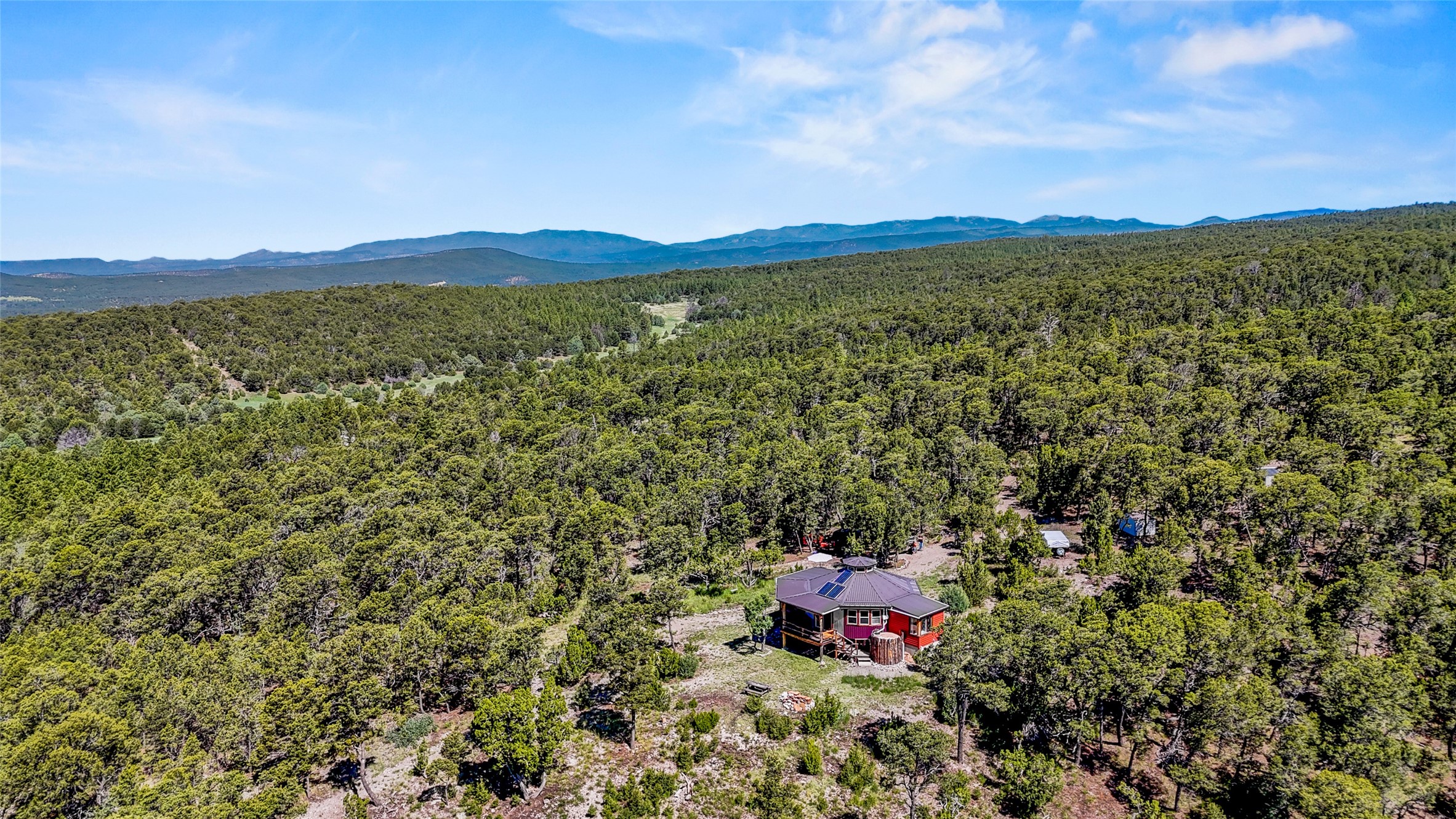 Tucked away in the Santa Fe National Forest is where a peaceful off grid retreat awaits you! 40 acres of mature pinon, ponderosa & juniper surrounded by thousands of acres of untouched forest creates the ultimate setting to relax, recreate & get away from it all. Enjoy your newer off grid home, featuring a 2200 gallon water collection system with multi step filtration system. Solar power with brand new lithium batteries, composting toilet and a Vermont castings wood stove completes your comfortable get away in the woods! Locally milled wood floors, fully insulated framed walls and roof, low maintenance metal siding. Views of Rowe mesa. Peace & quiet is calling! Will you answer? Owner financing considered.