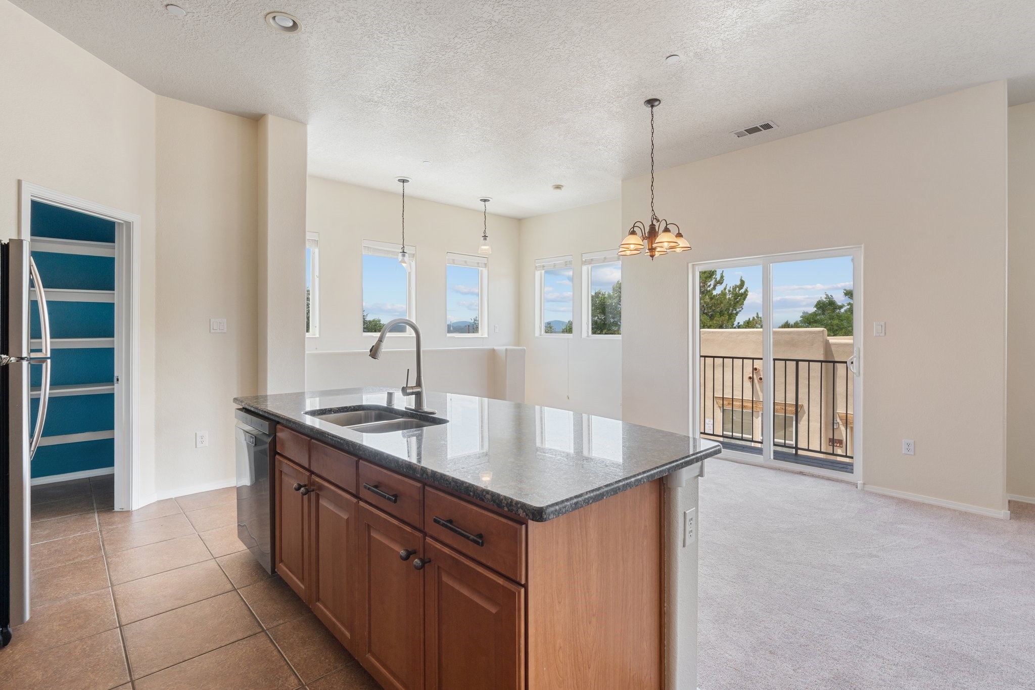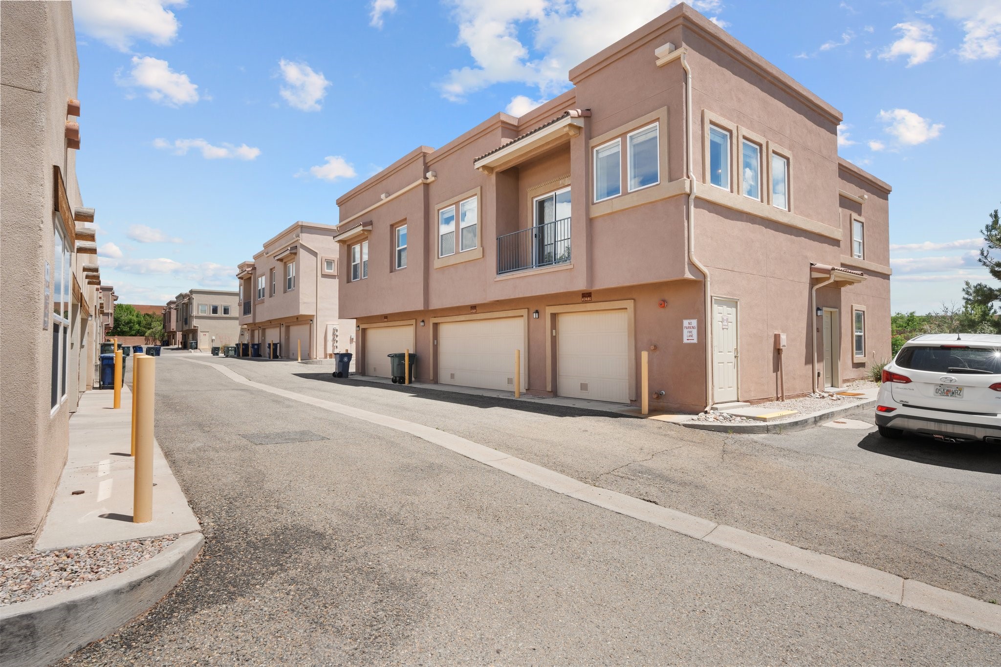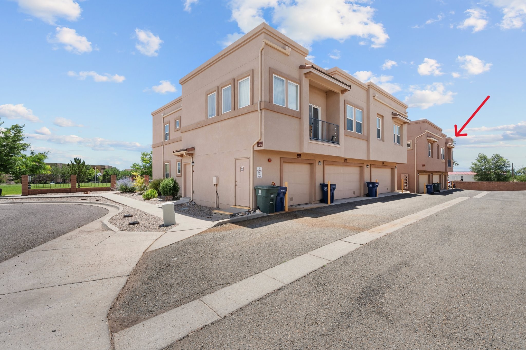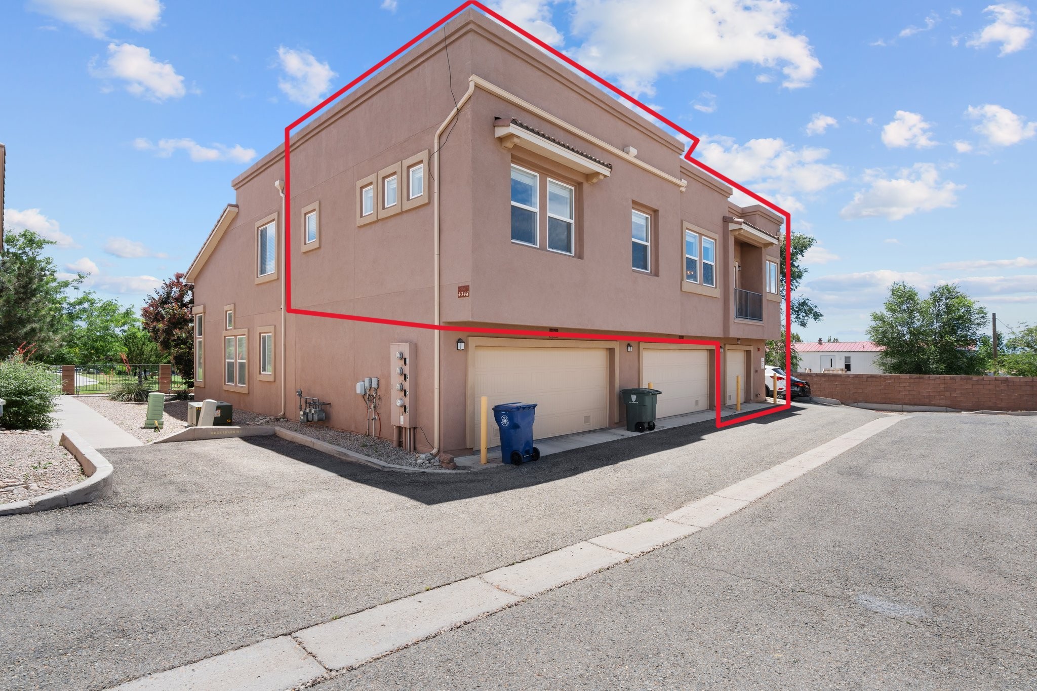 Bright, Spacious Condo with Park Access & Sunset Views! This beautifully maintained 2-bedroom, 2-bath upstairs condo offers stylish comfort, thoughtful design, and a prime location. Once upstairs, you'll find a spacious single-level layout with soaring ceilings and an abundance of natural light throughout. The heart of the home is the open-concept living, dining, and kitchen area, perfect for everyday living and entertaining. The kitchen features generous counter space, a large walk-in pantry, and an adjacent laundry room for added convenience.The primary suite is a peaceful retreat, complete with a walk-in closet and an ensuite bath that includes a soaking tub and double vanity. The guest bedroom is also nicely sized with large closets, ideal for visitors, home office use, or extra storage. Step on to the private balcony and enjoy sunset views, or explore the adjacent San Isidro Village Park, offering a jogging trail, basketball court, and playground--right next door. Additional features include new carpet, fresh paint, new HVAC (2023), updated appliances, and an attached 1-car garage with brand new opener. With a central location close to shopping and easy access to Santa Fe, Albuquerque, and Los Alamos, this turnkey home checks all the boxes for convenience, comfort, and lifestyle.