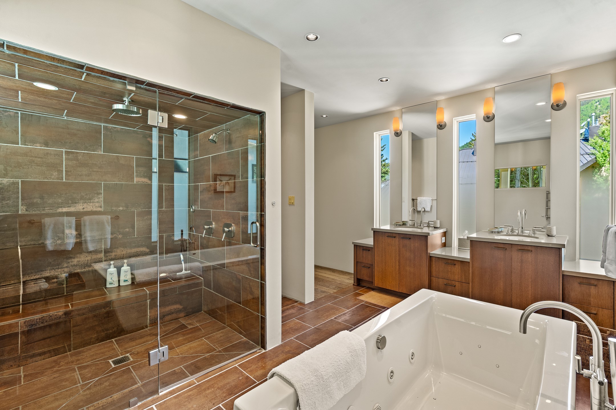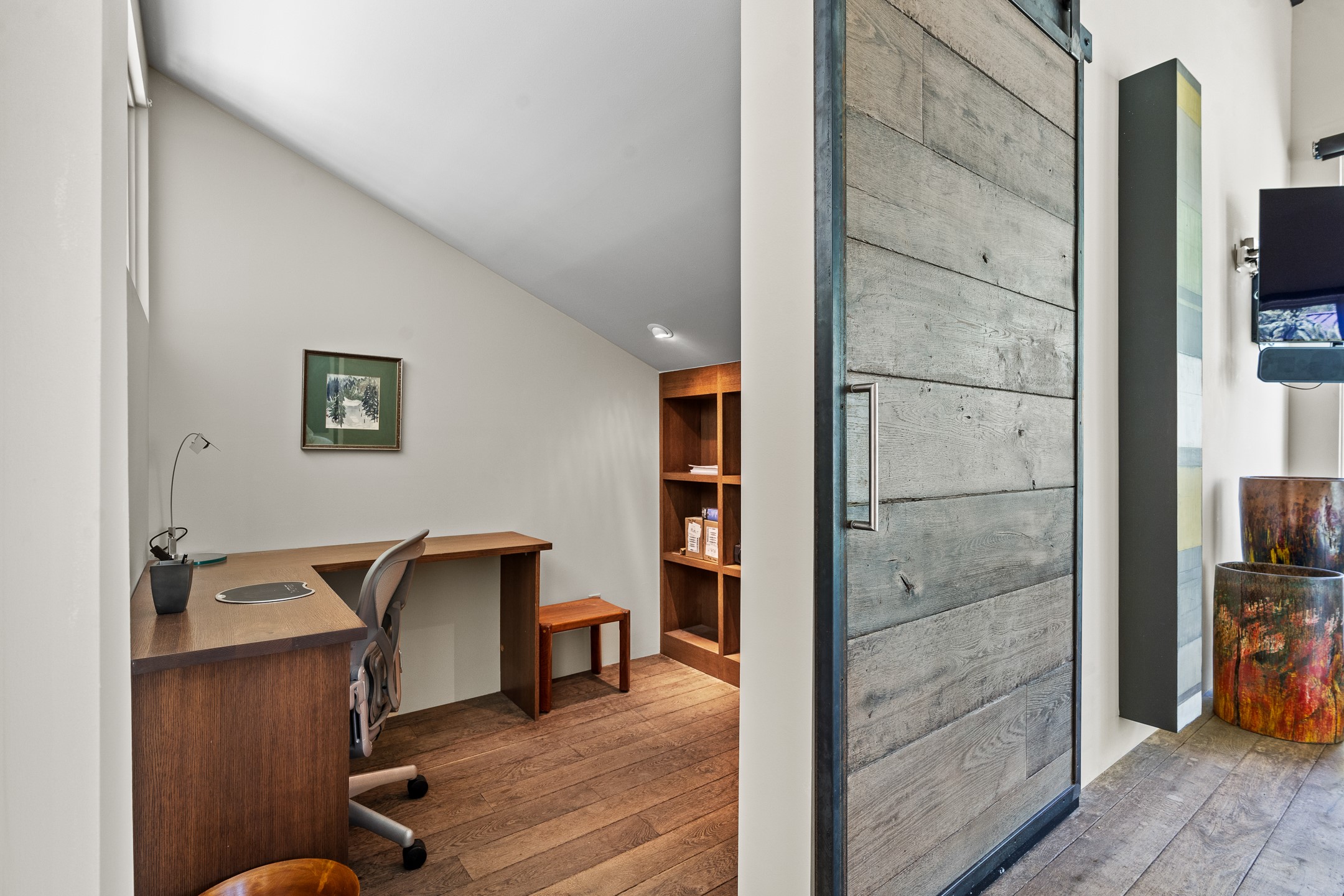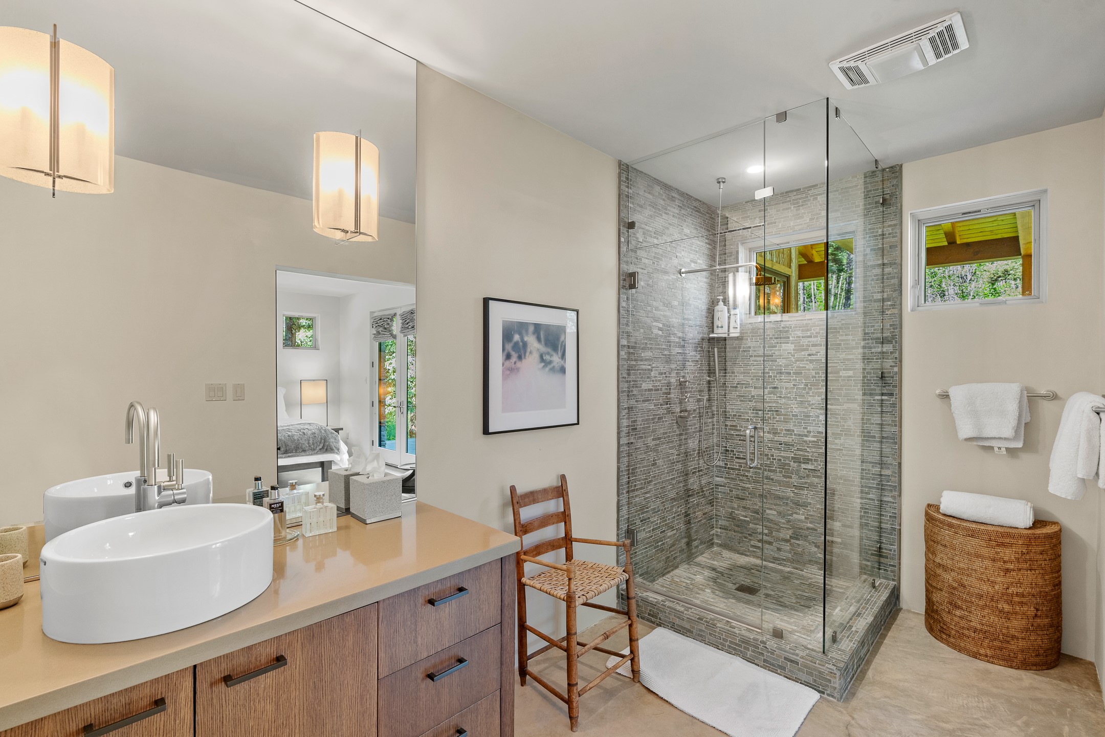 Situated in the heart of Taos Ski Valley, this one-of-a-kind Contemporary Modern Mountain Home redefines alpine luxury. Set on a rare corner lot spanning over one-third of an acre, the property is graced with more than 150 feet of the Rio Hondo River, flowing beneath two custom-built bridges that provide direct ski-in/ski-out access. Just a short walk to the base area's two main lifts, the location is simply unmatched. Every detail of this stunning home exudes sophistication and modern elegance. Designed for both comfort and performance, it features high-end finishes throughout, including automated sun shades, radiant in-floor heating, a chef's kitchen with premium appliances, and a luxurious steam shower in the primary suite. A dramatic zinc standing seam roof--engineered to last 80 to 100years--crowns the home, while a natural gas standby generator ensures seamless year-round living. Step outside to the elevated hot tub perched above the river and enjoy serene mountain ambiance like no other. The heated driveway and stone paver walkways offer effortless winter access, while the oversized 3-car garage--with one bay currently transformed into a game room--adds versatility and comfort. A dedicated ski storage room with private locker space and a separate entrance completes the alpine lifestyle experience. The home's thoughtful floor plan offers exceptional privacy and flow. The primary suite features a private office, steam shower, and complete separation from the guest quarters, which are adjacent to a spacious family lounge. A guest suite on the lower level provides additional convenience and flexibility. From its unparalleled riverfront setting to its extraordinary finishes and amenities, there is simply no other home of this caliber in Taos Ski Valley. This is more than a residence--it's an elevated mountain sanctuary. Home is being sold fully furnished, including most artwork.