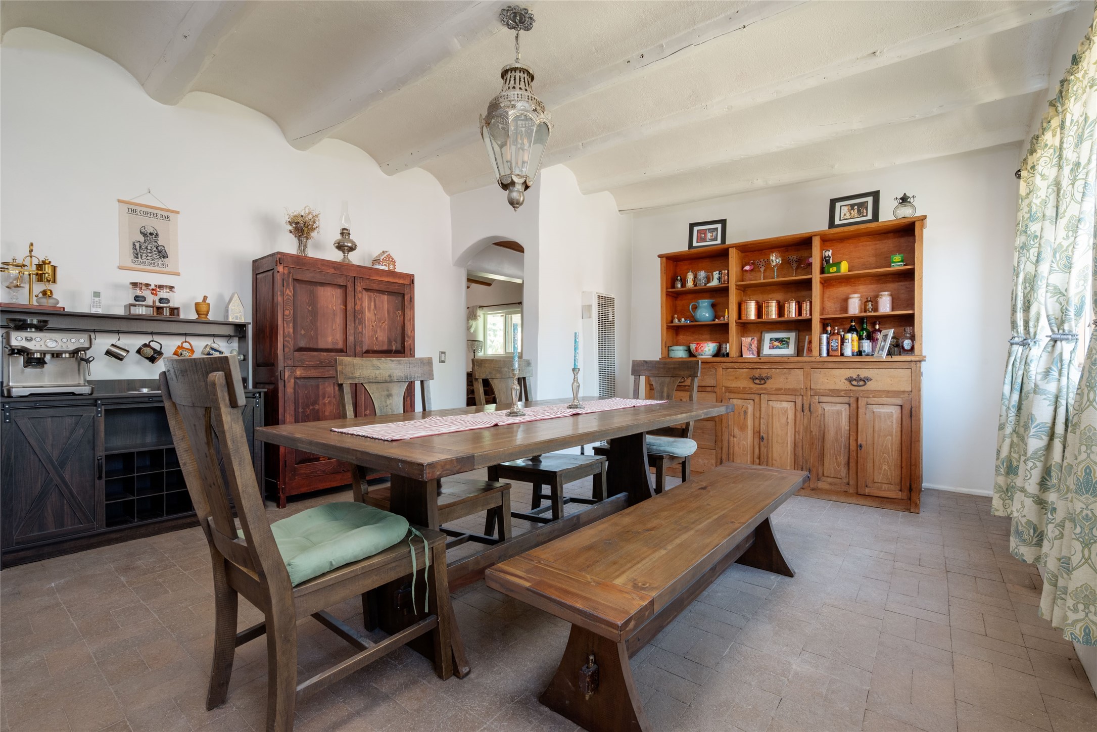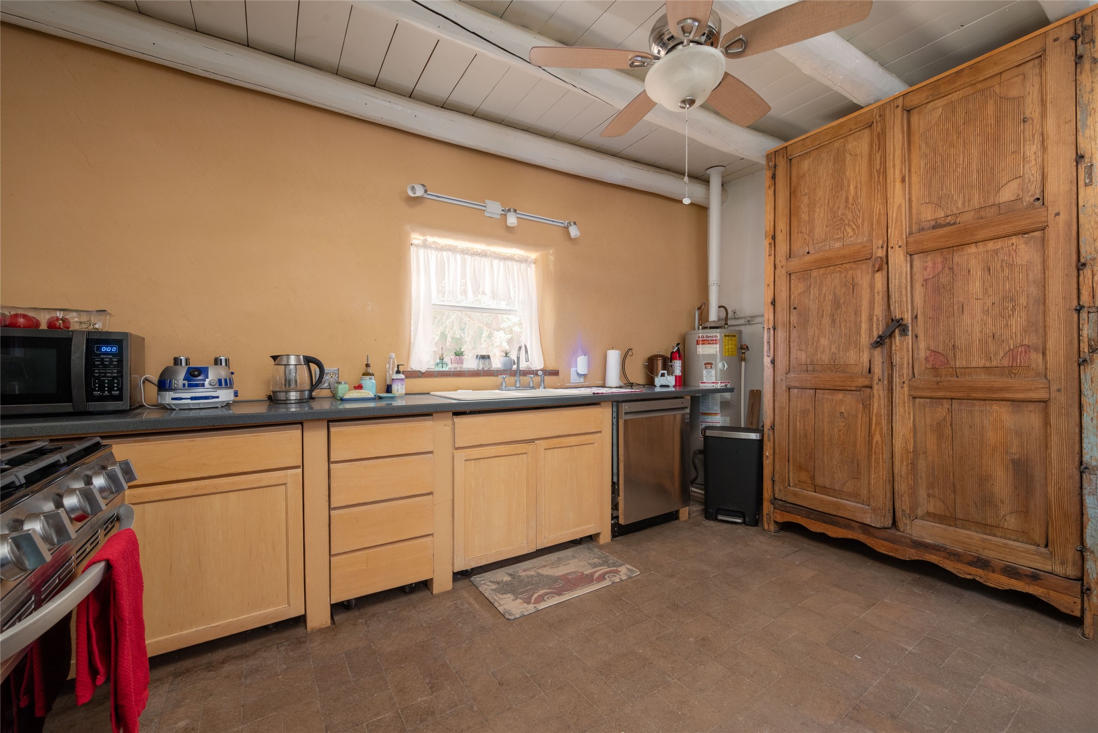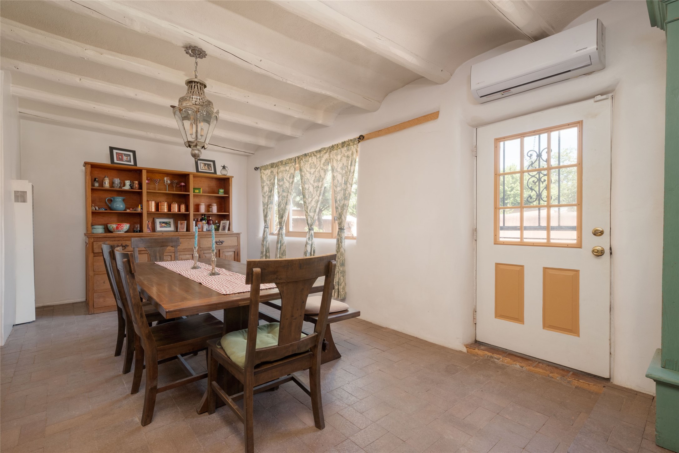 Welcome to 2918 Santeros Road--a serene and beautifully maintained home that blends classic Santa Fe charm with modern comfort. This 3-bedroom, 1 1/2-bath residence offers approximately 2098 sq ft of living space featuring traditional Southwestern elements such as adobe construction, vigas, a kiva fireplace, and plastered walls. The open-concept kitchen/dining area is perfect for entertaining. Outside, enjoy private patios, mature native landscaping, and a peaceful courtyard ideal for relaxing or dining al fresco. Located minutes from shopping, schools, biking trails, and the Santa Fe airport. This property combines tranquility with convenience. Easy access to Hwy 599. As an added bonus there are also multiple out buildings and a single wide mobile home that can be used as storage or upgraded to livable space. There is also plenty of space to expand on the 0.4 acre lot! Upgrades within the last year include: Minisplit AC/Heaters; windows in the living room, primary bed, mud room, and 1 guest bedroom; new electric circuit panel and grounding rods; soaking tub and rain shower in main bathroom. Sellers have also installed a City Water Meter it just needs to be connected if Buyer wants that option.