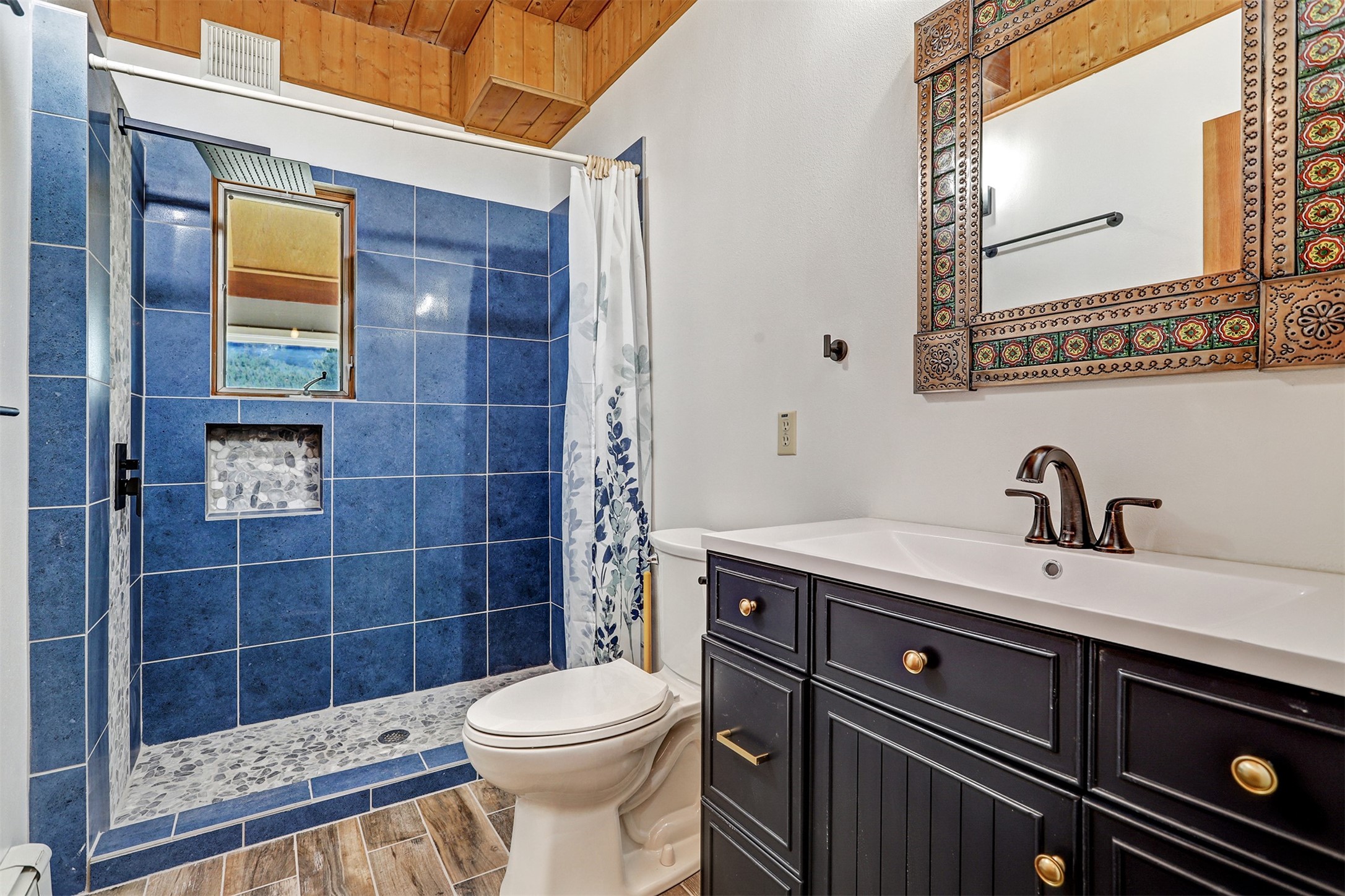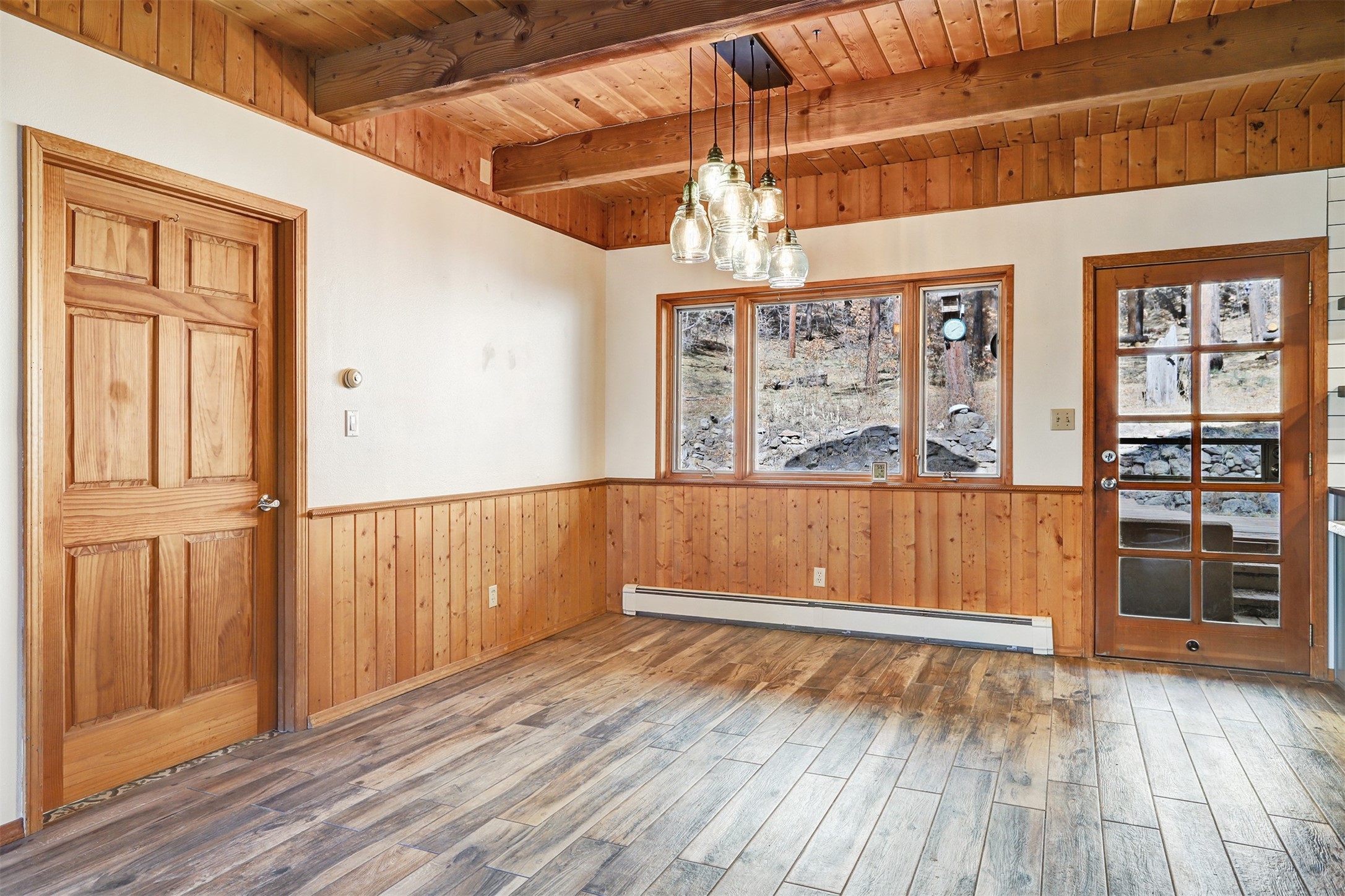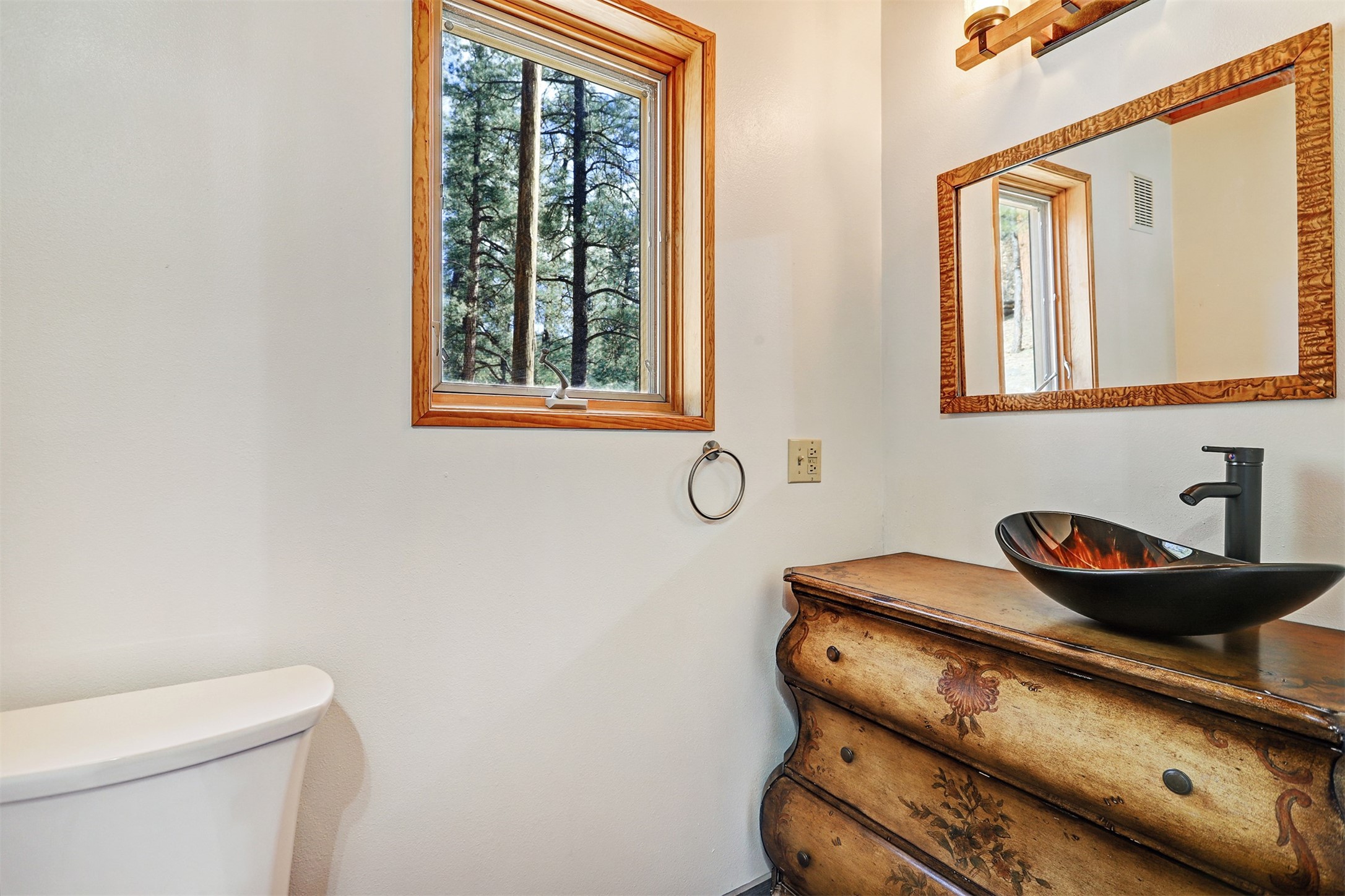 Need space? This large mountain home features 6/7 bedrooms, 5 bathrooms and storage galore! A separate apartment area has it's own entrance, kitchen, bath, and living area. The approx 2 acre property boarders the Santa Fe National Forest, and easily accessed by a county maintained road. Only a mile or so to a back gate of the Valles Caldera, and a 40 minute scenic commute to Los Alamos. Oversized 2 car garage gives you plenty of room for the toys. A sunroom on the front of the house opens to the large deck for outdoor enjoyment/entertaining. Hike out the back door into the woods, bike into the Caldera, or fish the streams in the area. This place has it all, and room for everyone!