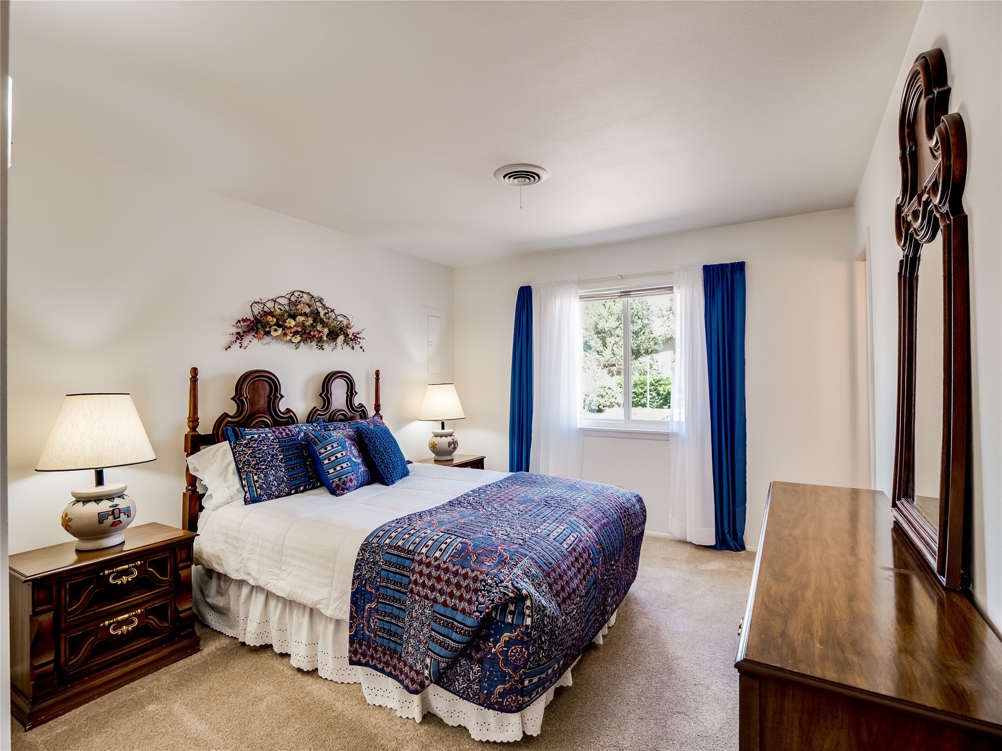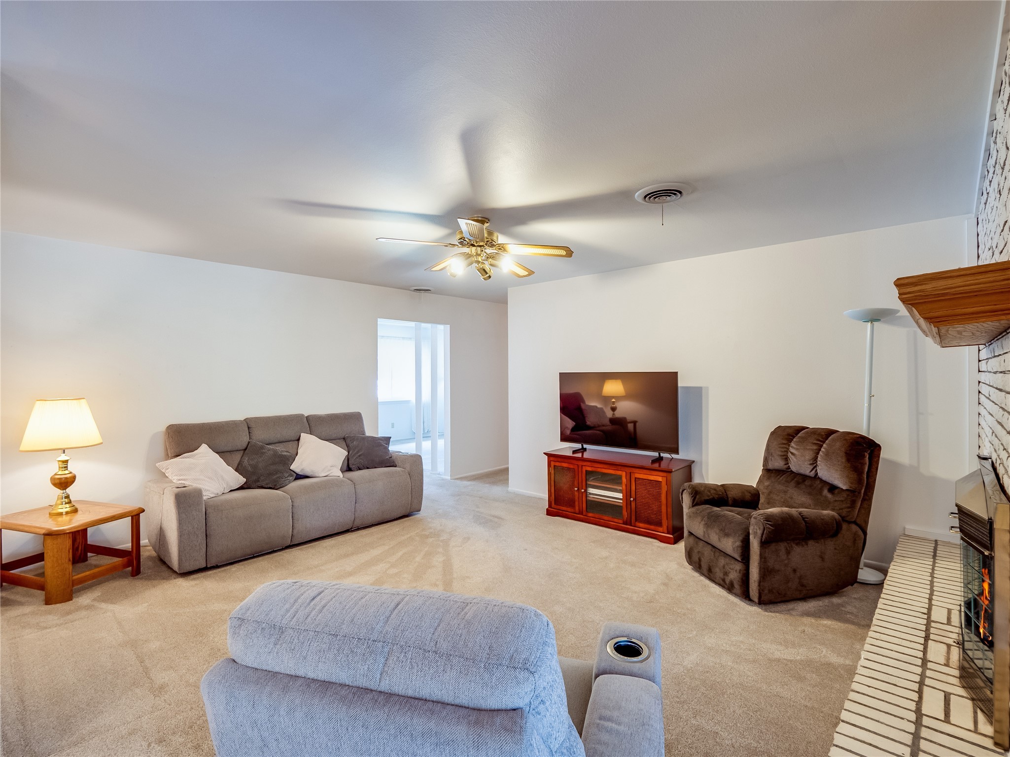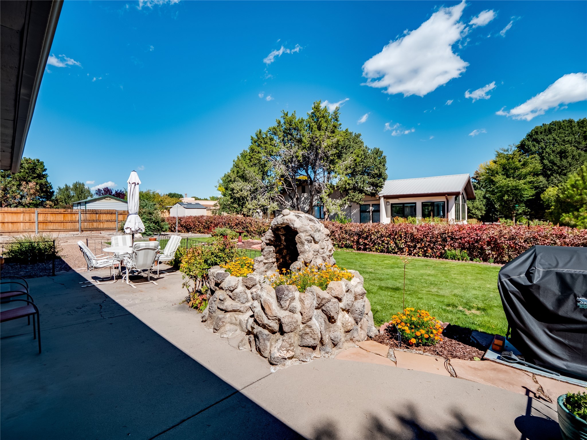 Welcome to this sensational ranch-style home in White Rock with beautiful curb appeal. A lush, green lawn and mature shade trees frame the front of the property, complemented by colorful flower beds that create a warm and inviting entrance. Step inside to find plush carpet flooring that runs throughout, adding comfort and continuity. Just off the entryway to the left is a versatile bonus room or den--ideal for a home office, study, or creative space--framed by elegant pillars that give the area a sense of separation and style. Continue forward into the cozy living room featuring a wood-burning fireplace, perfect for chilly evenings and relaxing with loved ones. The adjacent galley-style kitchen includes wood cabinets with chrome hardware and offers ample prep space, as well as a designated dining area for casual meals A 260 sq. ft. bonus room with access to backyard can be a kids play room, exercise room, a room for arts and crafts, a fifth bedroom or a great man cave! Nearby is access to the two-car garage and a convenient laundry space, providing everyday functionality. Step down into the formal dining room, filled with natural light from the surrounding windows and glass sliders that lead directly to the back patio and yard. Connected to this space is a large family room, offering another access point to the backyard, a perfect setting for gatherings, movie nights, or game days. A beautifully renovated modern guest bathroom with a white single sink vanity and a fully tiled shower/tub combo. At the end of the hall, the spacious primary en-suite overlooks the peaceful backyard and includes a walk-in closet and a private bathroom with a tiled walk-in shower and single sink vanity. The expansive backyard is a true oasis, with a lush green lawn, vibrant flower gardens, and irrigated vegetable planters--perfect for any green thumb. There's also side-yard access to park a vehicle or RV. A large patio area is ideal for outdoor dining and entertaining under the open sky.