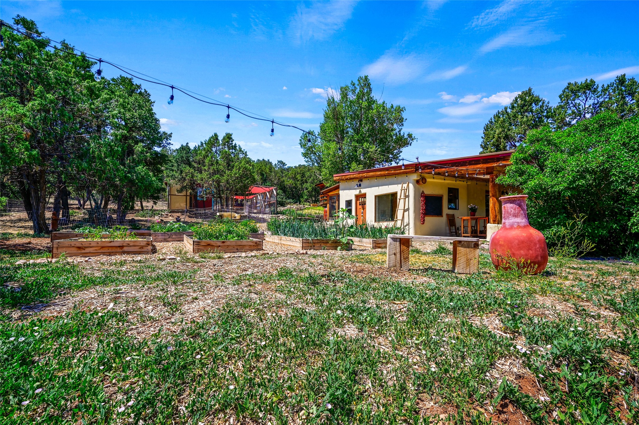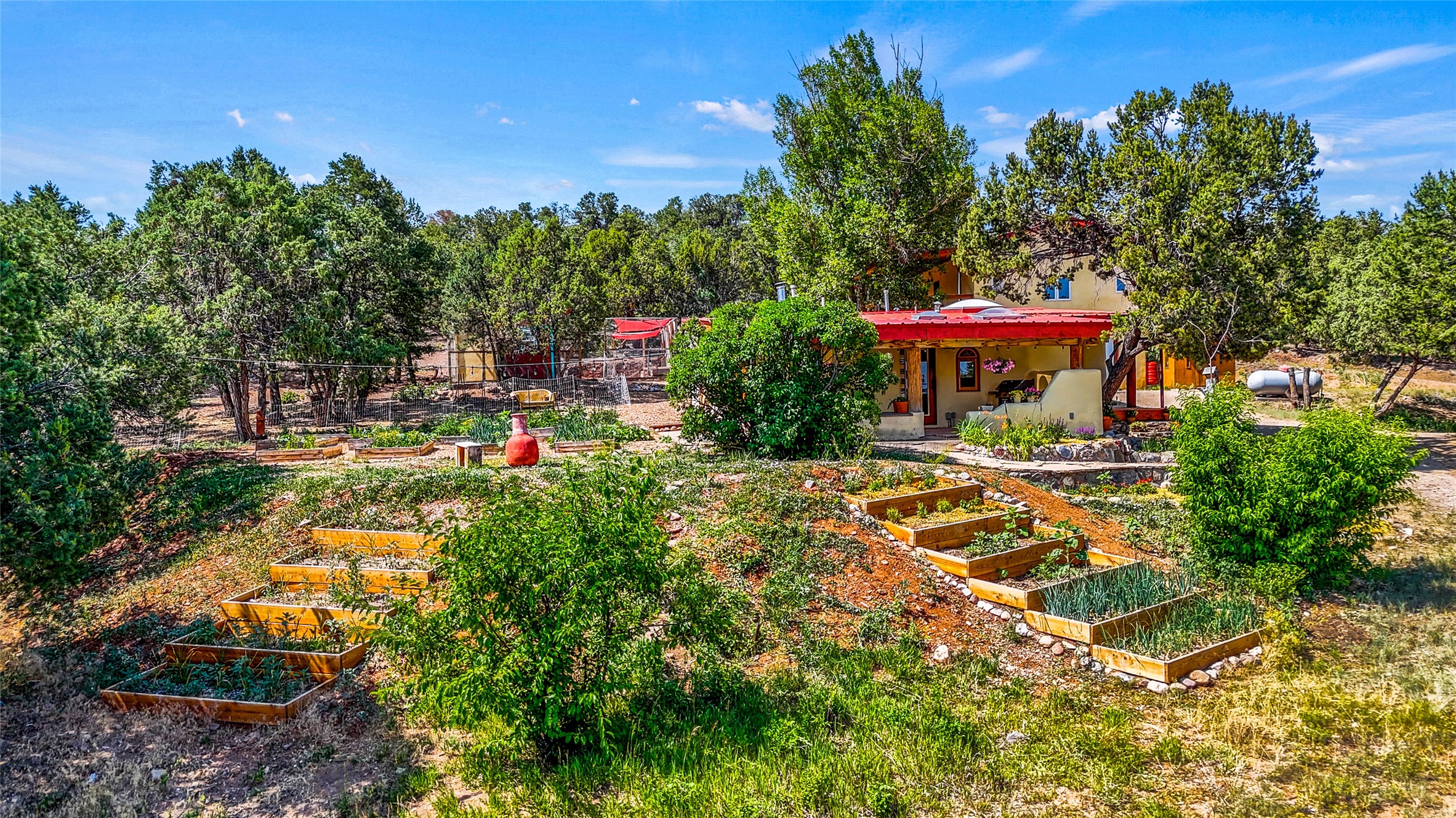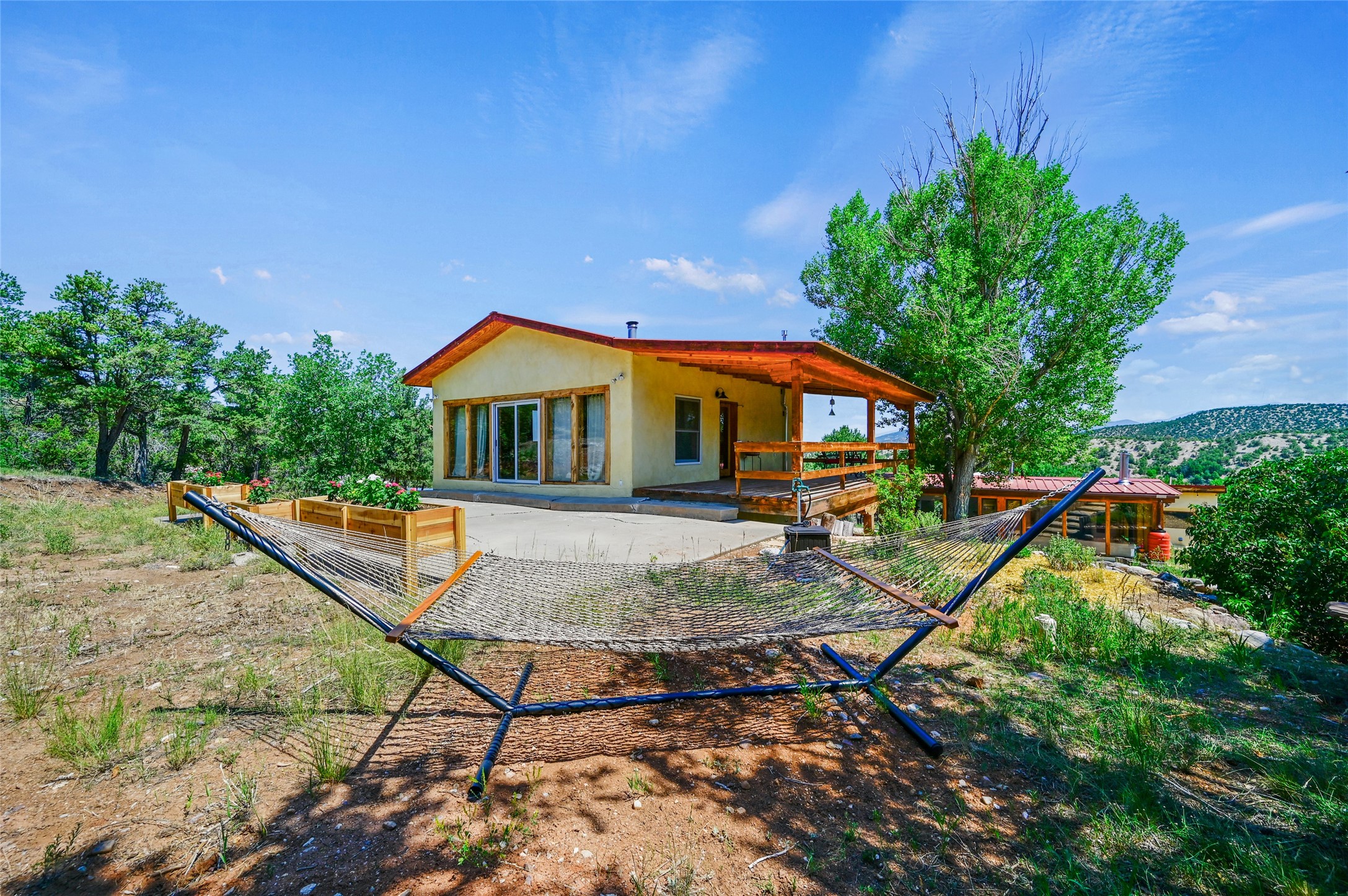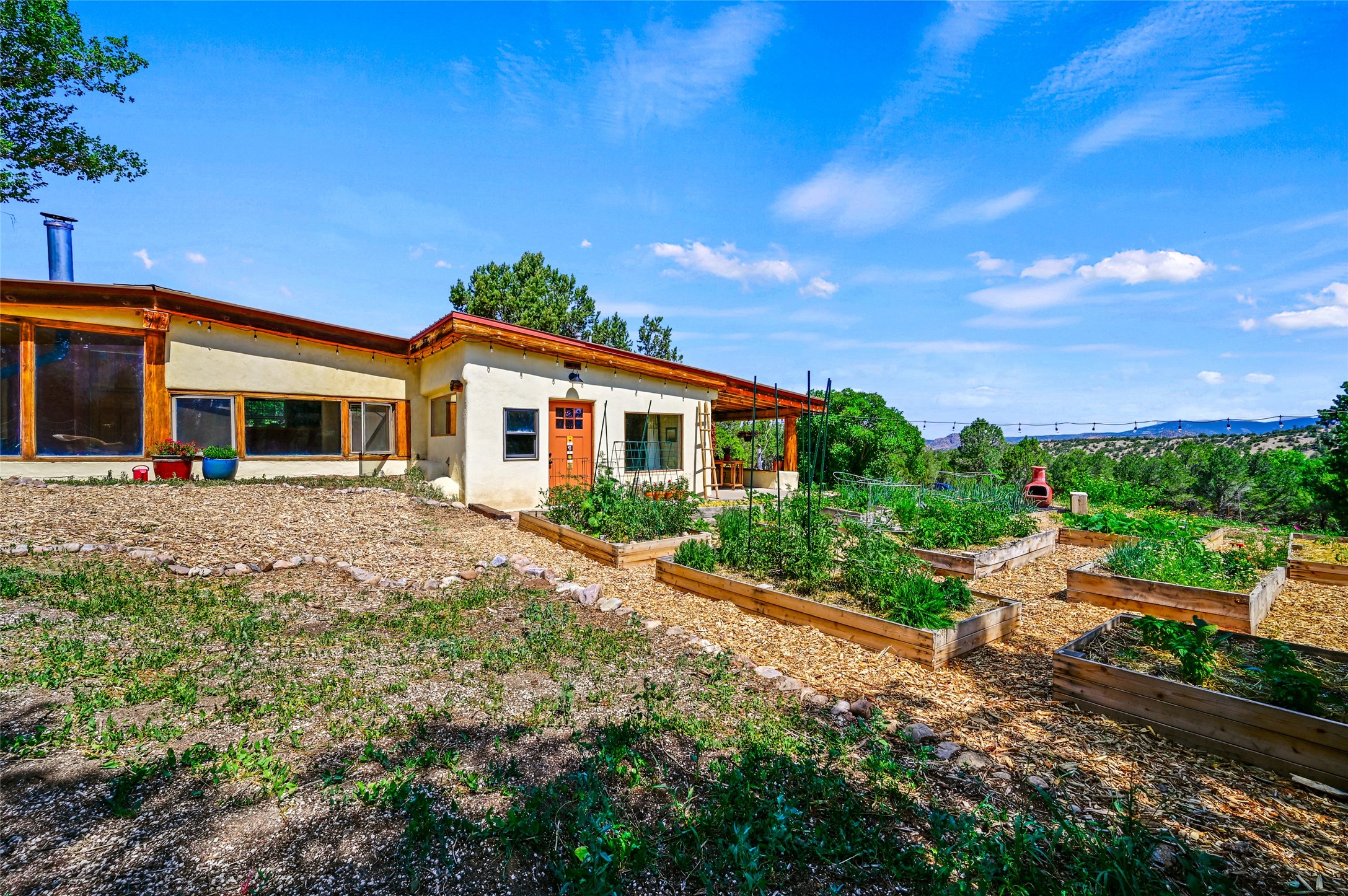 Welcome to your dream homestead, nestled in the heart of Northern New Mexico's enchanting pion and juniper landscape. Located just off the scenic High Road to Taos, this move-in-ready homestead offers a peaceful rural lifestyle with modern comforts--just 15 minutes to the historic village of Chimay and under an hour to both Santa Fe and Taos.Nestled on nearly five private acres at the edge of the majestic Carson National Forest and backed by expansive BLM land, this property offers endless, secluded hiking trails--perfect for catching unforgettable sunsets. This nod to the classic adobe compound features 2,384 square feet of versatile living space, including a 2-car garage, an artist's studio, and a charming detached casita -- perfect for guests, rental income, or creative pursuits. If you work from home, you'll also enjoy the high-speed fiber-optic internet.This homestead features a barn crafted from locally milled wood, a luxury chicken coop, cedar raised beds primed for planting your spring vegetable garden, and a generous well. Recent updates include a dream chef's kitchen, complete with a Viking stove, 3 new water heaters, all-new landscaping, new garage doors, and new plumbing. All the heavy lifting has been done--just bring your vision and come enjoy this peaceful lifestyle.