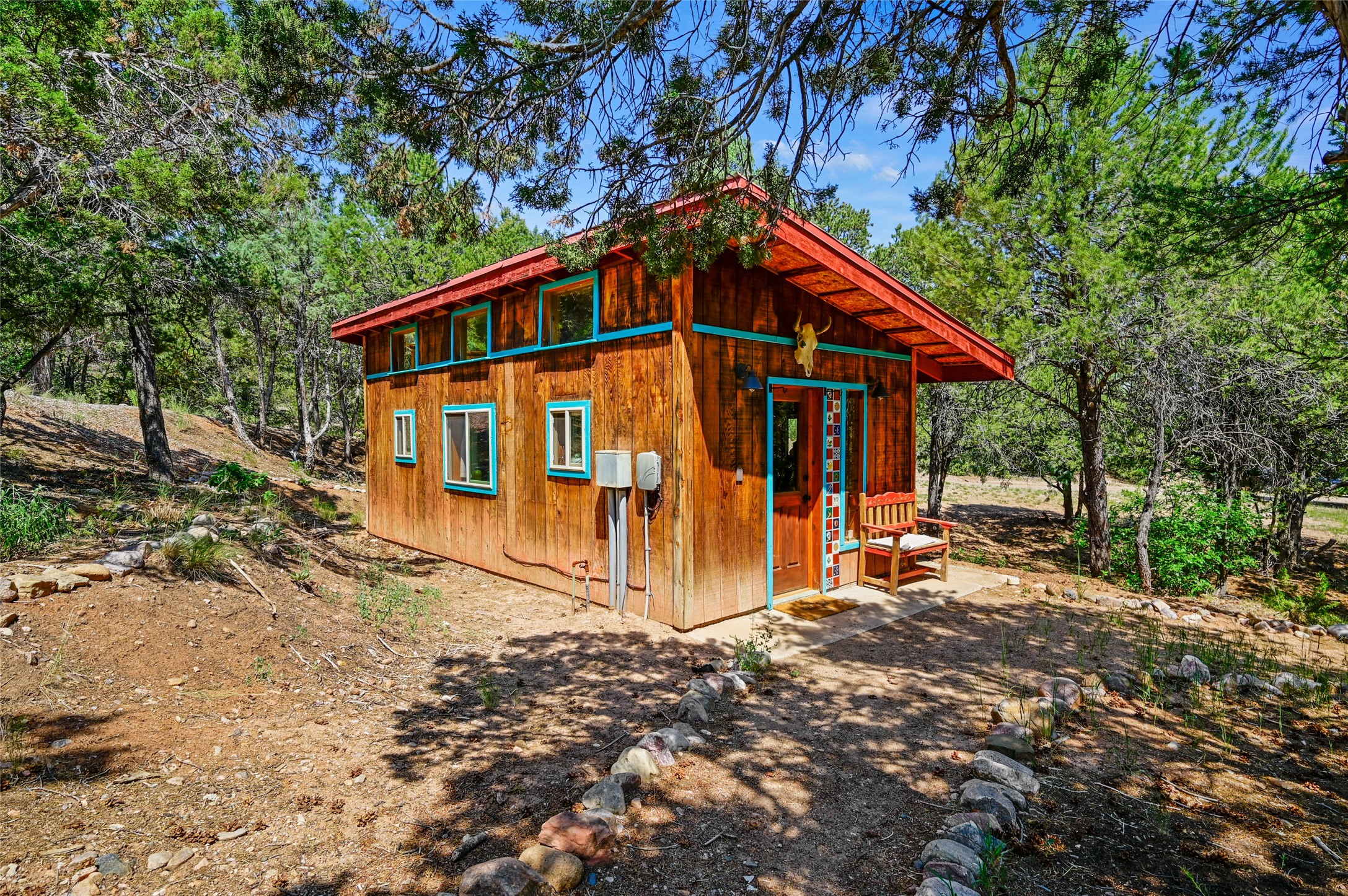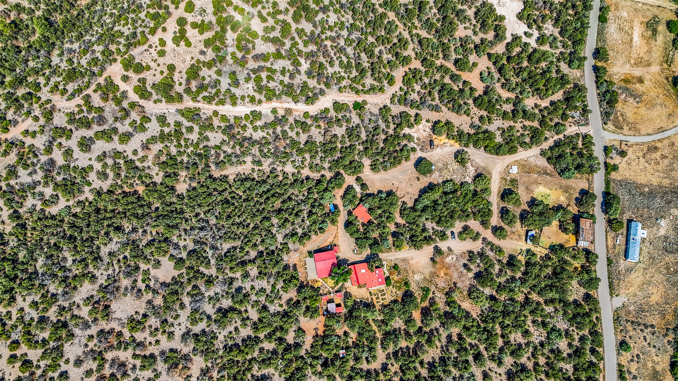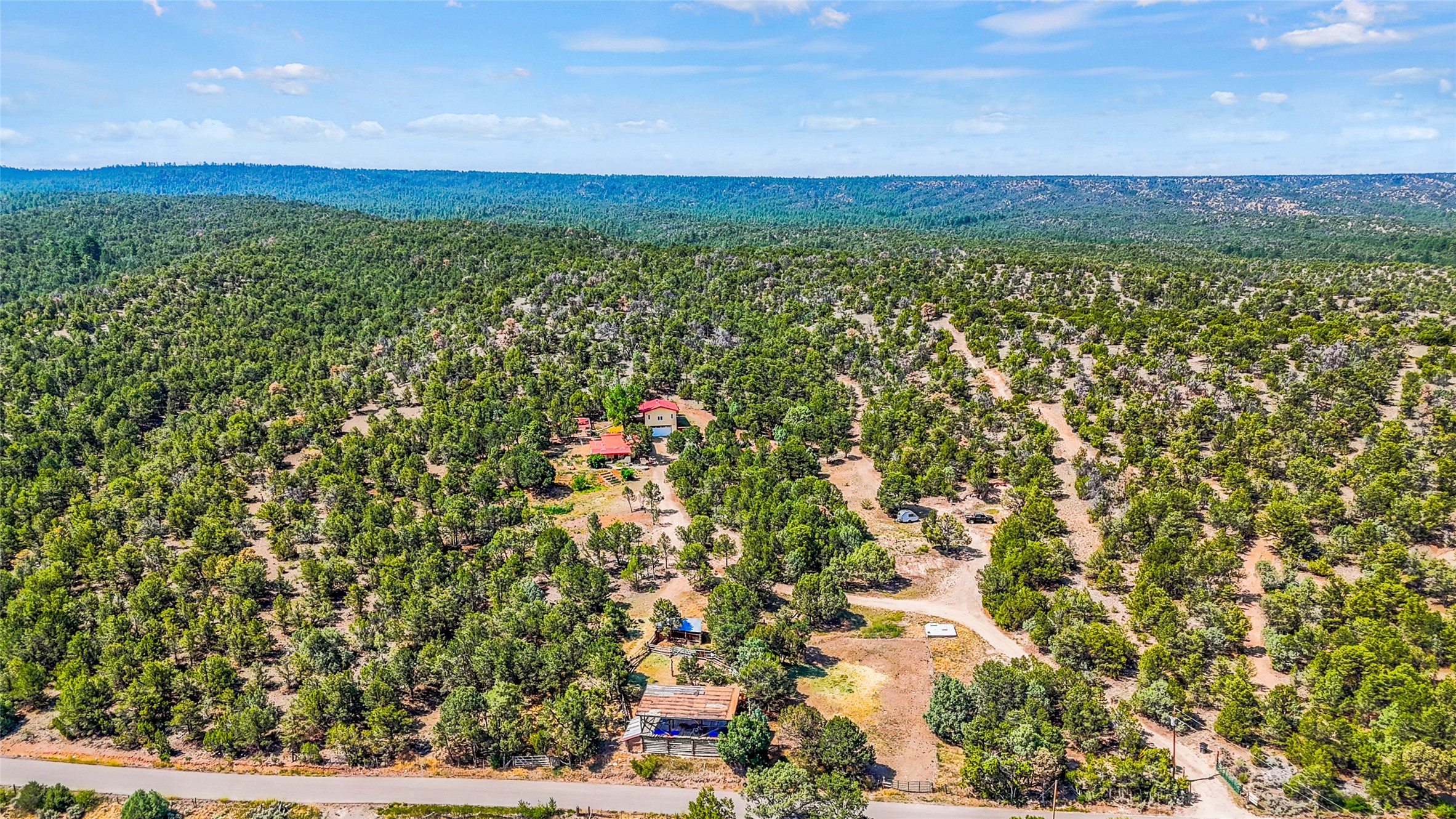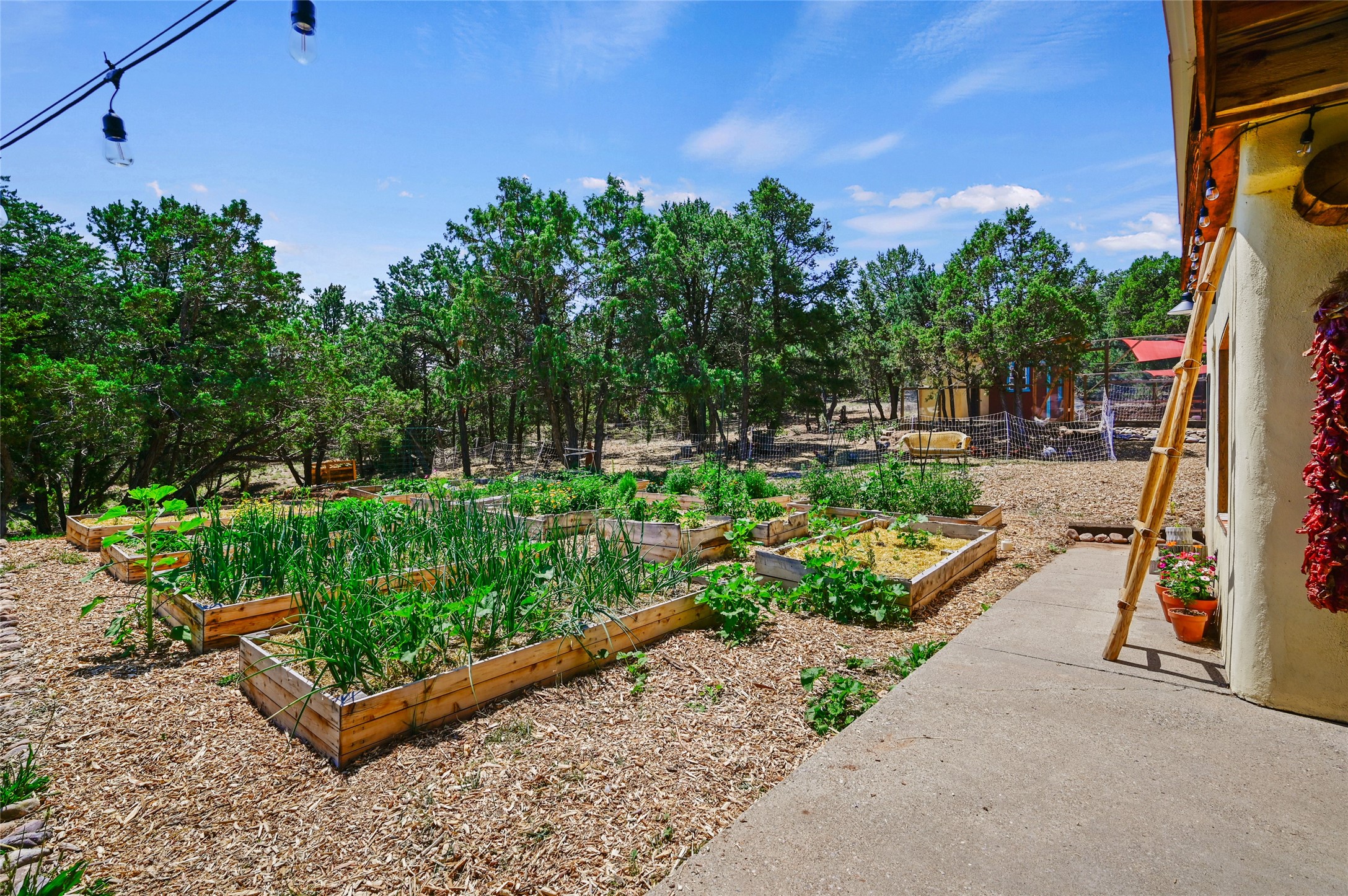 Welcome to your dream homestead, nestled in the heart of Northern New Mexico's enchanting pion and juniper landscape. Located just off the scenic High Road to Taos, this move-in-ready homestead offers a peaceful rural lifestyle with modern comforts--just 15 minutes to the historic village of Chimay and under an hour to both Santa Fe and Taos.Nestled on nearly five private acres at the edge of the majestic Carson National Forest and backed by expansive BLM land, this property offers endless, secluded hiking trails--perfect for catching unforgettable sunsets. This nod to the classic adobe compound features 2,384 square feet of versatile living space, including a 2-car garage, an artist's studio, and a charming detached casita -- perfect for guests, rental income, or creative pursuits. If you work from home, you'll also enjoy the high-speed fiber-optic internet.This homestead features a barn crafted from locally milled wood, a luxury chicken coop, cedar raised beds primed for planting your spring vegetable garden, and a generous well. Recent updates include a dream chef's kitchen, complete with a Viking stove, 3 new water heaters, all-new landscaping, new garage doors, and new plumbing. All the heavy lifting has been done--just bring your vision and come enjoy this peaceful lifestyle.