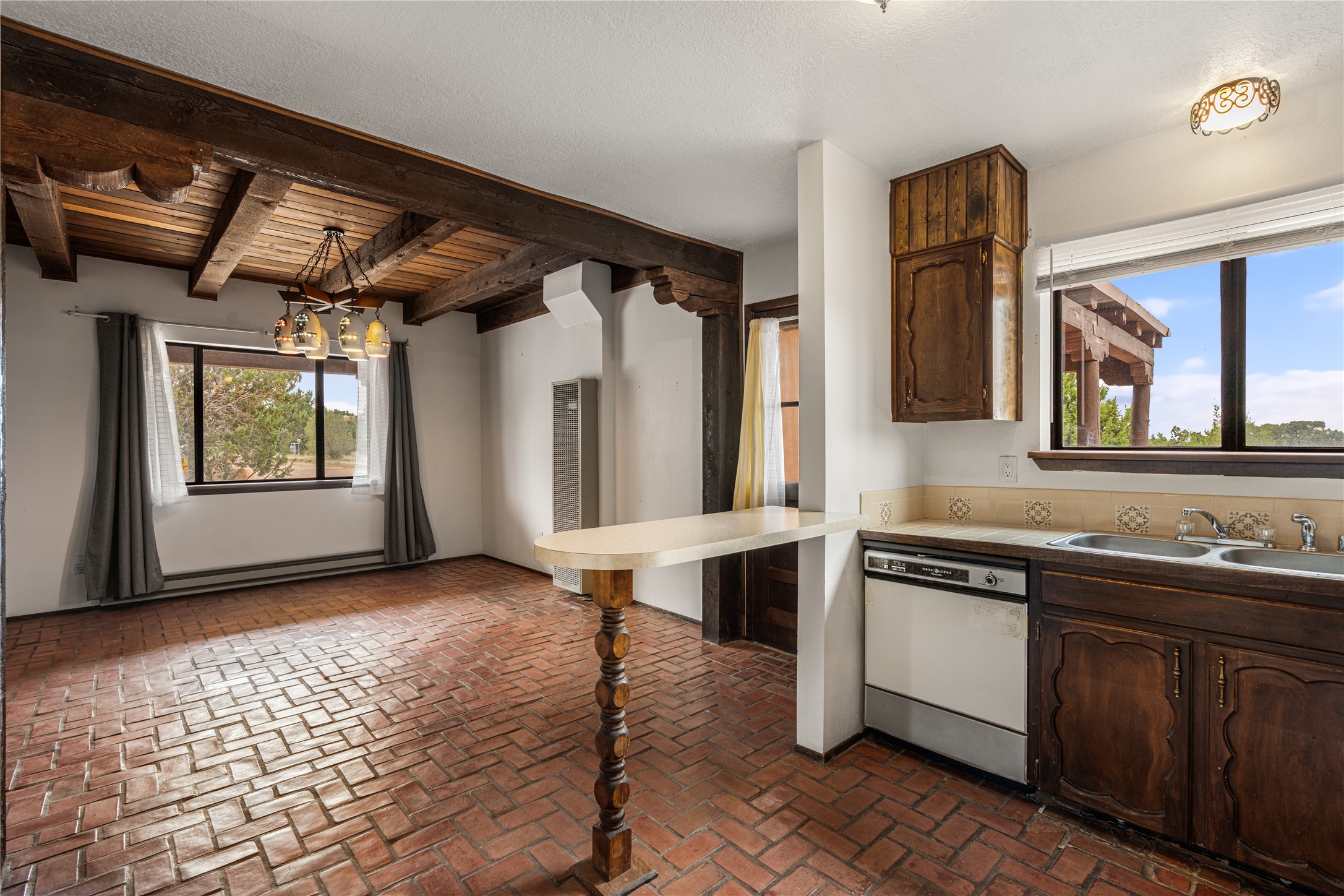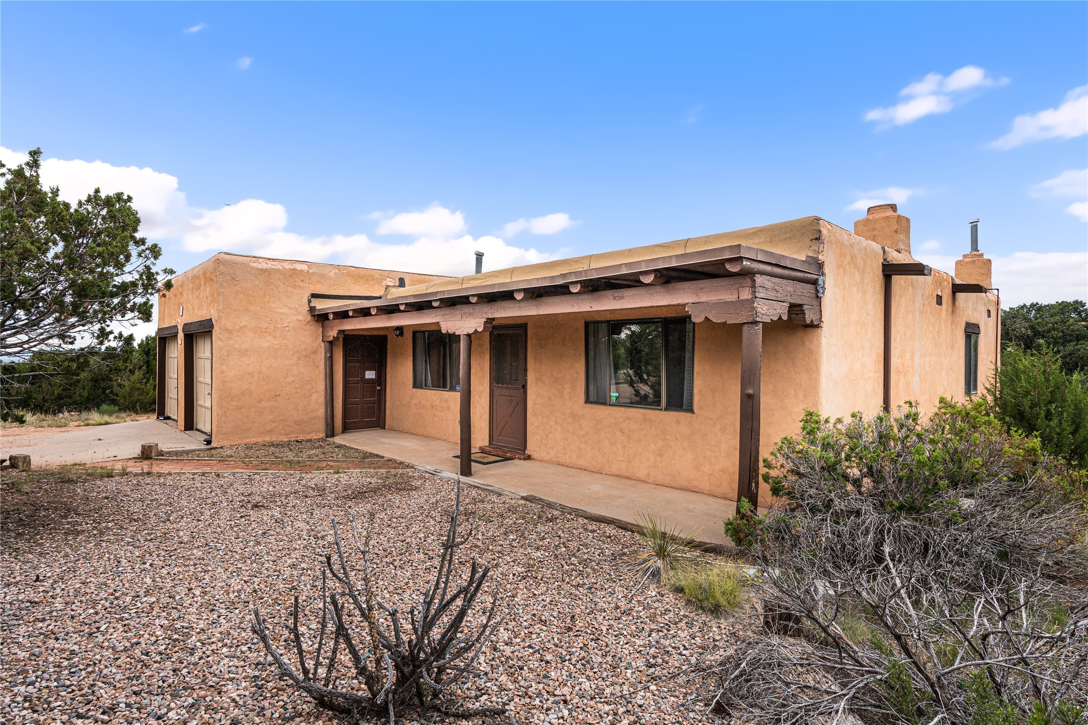 This lovely 2-bedroom, 1-bath home sits on a quiet piece of land filled with natural New Mexico vegetation, wildflowers, and beautiful trees. Enjoy wide open views of the surrounding hills and sky, with plenty of space to relax, garden, or just take in the fresh air. Inside, the home has a bright and cozy feel. The living room gets great natural light, and the open floor plan makes it easy to move between the kitchen, dining, and living areas. The kitchen has plenty of cabinet space, and the home includes a laundry area, storage, and unique details that give it charm and character.Located just off the main route between Albuquerque and Santa Fe, this home offers the perfect mix of privacy and convenience.