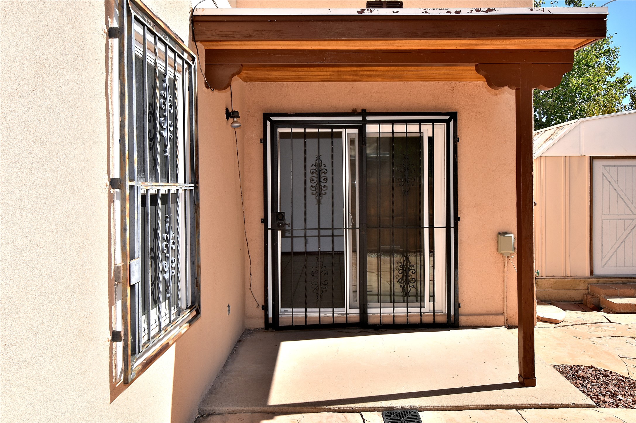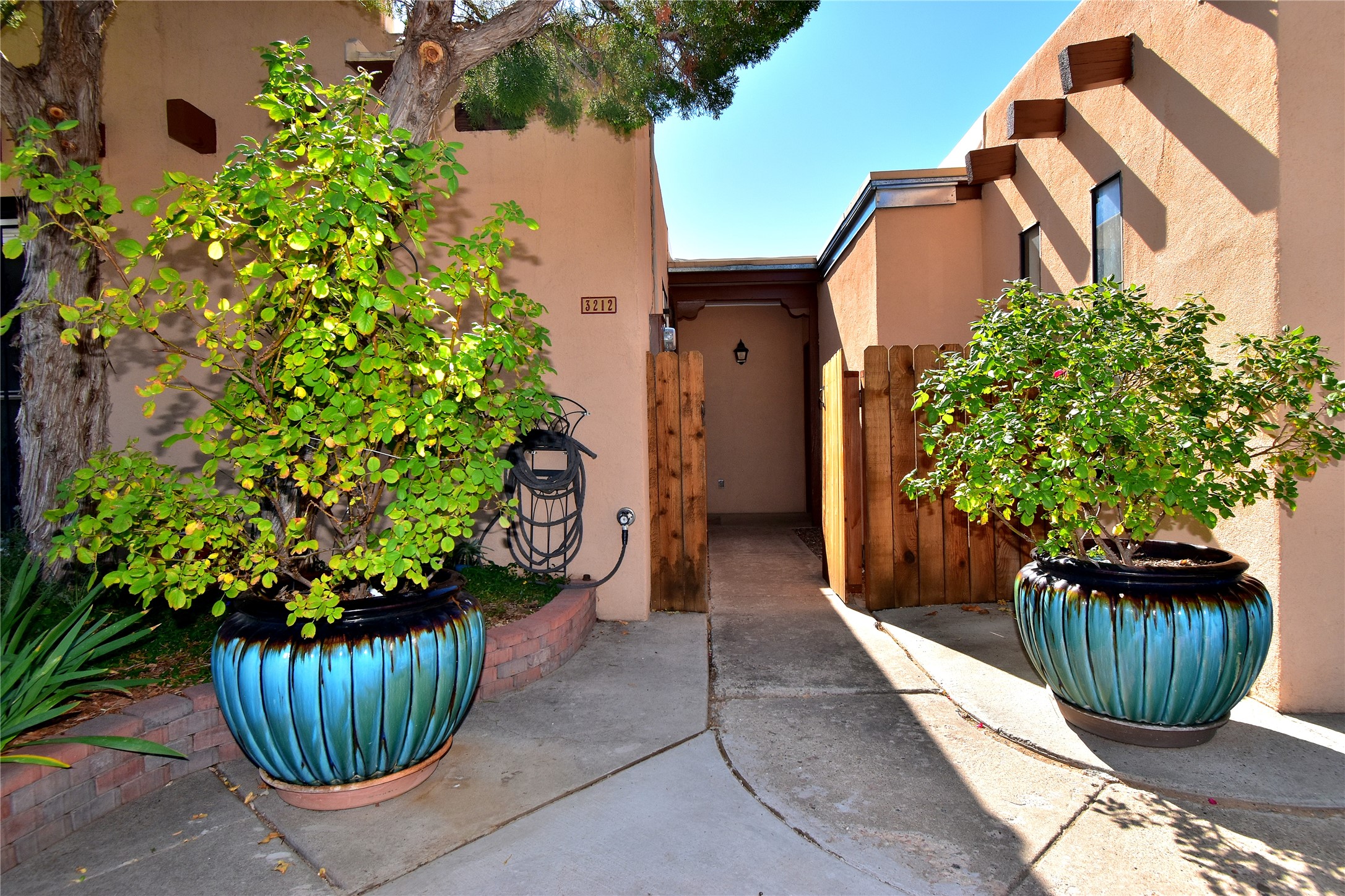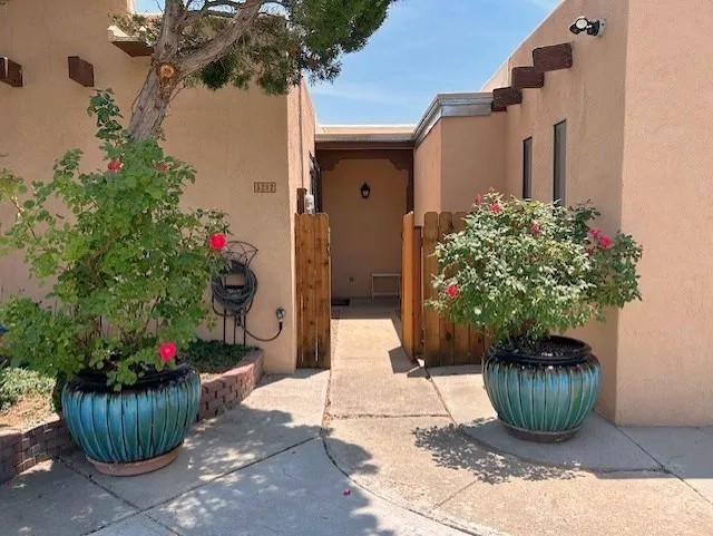 PRICE REDUCED AGAIN! NOW 425K. Beautiful, updated, light and bright and freshly painted home in Pueblo de Rodeo Rd. This single level home offers 3 bedrooms, 2 bathrooms and a 1-car garage with a spacious double driveway providing ample parking. An enclosed front entry courtyard welcomes you into the home. The galley kitchen features granite countertops, tile backsplash, pantry and new microwave in 2025. The backyard is private and offers a covered porch with flagstone and a large shed. Lovely features and amenities include: Newer windows-Remote Hunter Douglas top/down blinds-TPO roof-Tile and carpet floors-New washer and dryer in 2025 including water filter/softener system-Ceiling fans-Walk-in closet in primary suite-Carpet in the bedrooms. Super sweet home not to be missed.