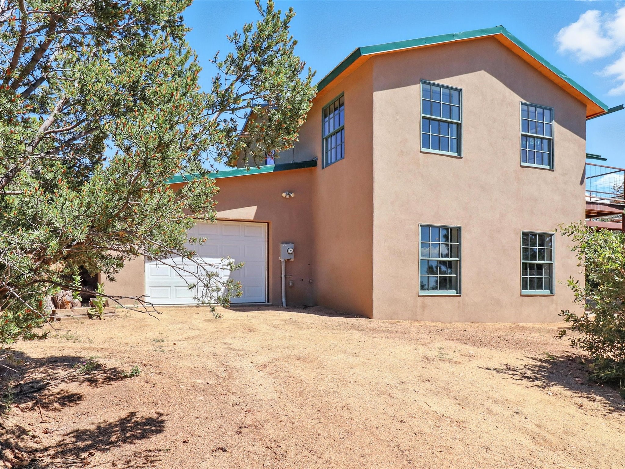 Modern Mountain Retreat Just off of Old Santa Fe Trail. A serene sanctuary nestled into the mountainside and surrounded with pines. This beautiful home offers breathtaking views of the green valley, the Shaggy Peaks and Pecos Mountains beyond--an ideal setting for those seeking peace, space, and connection with nature.With 3 spacious bedrooms and 2 full bathrooms, this home has a spacious living area perfect for relaxing, entertaining, and creating. The open-concept layout seamlessly blends the dining and kitchen spaces; all bathed in natural light from large windows that frame the stunning landscape. The kitchen is crafted for both functionality and style, making it the true heart of the home.Enjoy the comfort of a stone-tiled en-suite bath with a soaking tub and a cozy fireplace, a spacious walk-in closet, and private access to a balcony where morning coffee comes with inspiring Forest views.Each bedroom is graced with large windows that invite sunlight and forest views, while a separate laundry room upstairs adds everyday convenience. The attached garage adds to the practicality of this quiet haven, blending comfort and utility.Set in a peaceful, rural-feeling location, yet with easy access to town, 25 Calle Marisol offers the best of both worlds--tranquility and convenience. If you're seeking a lifestyle surrounded by nature, with room to breathe and views to inspire, this is your perfect place to call home.