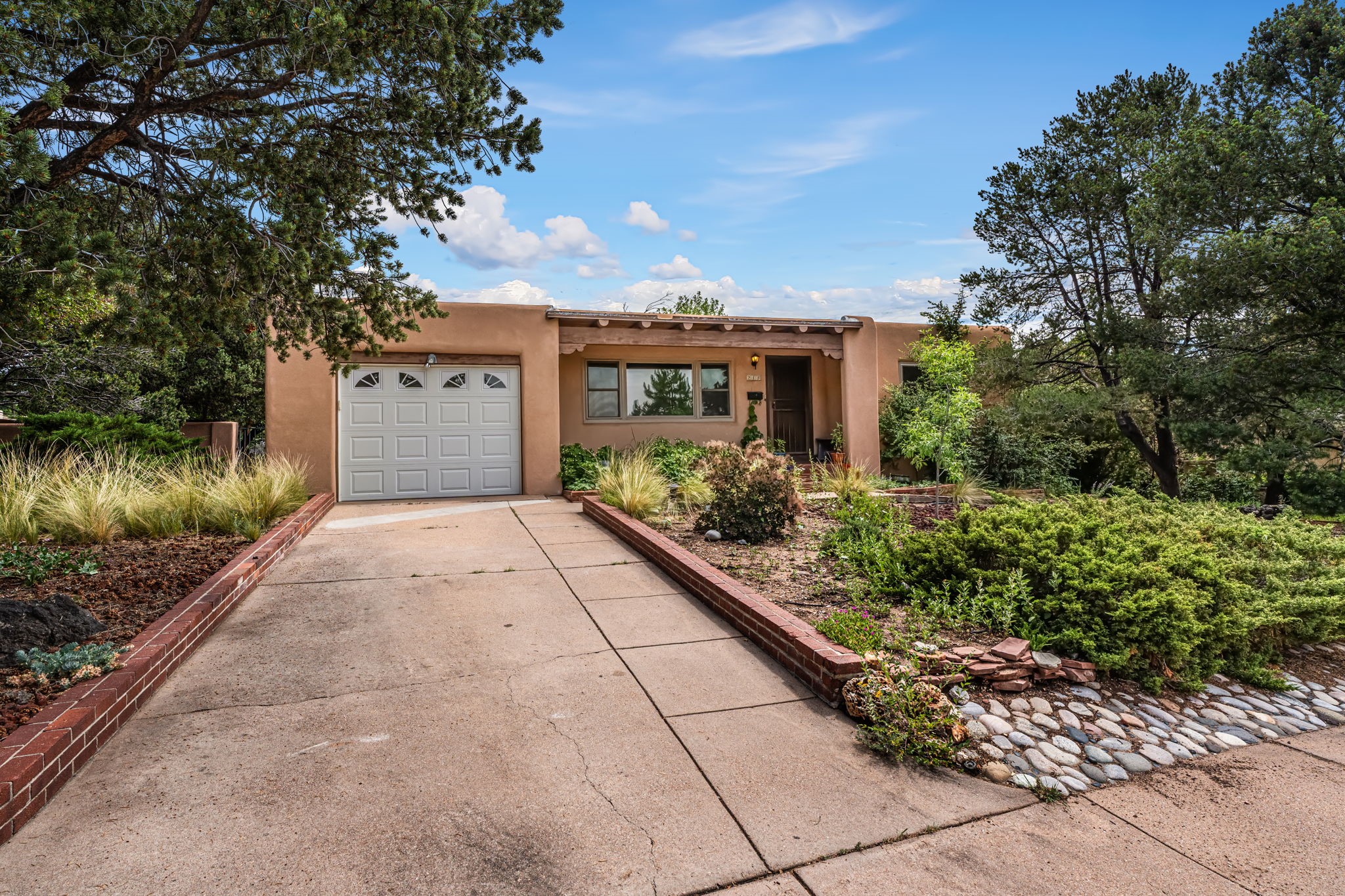 Classic Stamm-built home on a spacious corner lot in the highly desirable Casa Solana neighborhood. This well-maintained 3-bedroom, 2-bath residence features light and bright floorplan with skylights and beautiful, refinished original hardwood floors throughout. This home also boasts a huge back yard with mature trees, landscaping and turf. The home also has a bonus living space with vigas and a kiva fireplace--ideal for a den, office or 2nd family area. The home also has an enclosed sunporch offers flexible use as a studio, reading room, or creative workspace. Recent updates include washer, dryer, dishwasher, garage door opener, sewer line, upgraded windows and newer roof. The huge corner lot offers a great deal of outdoor space perfect for family time or entertaining. The home includes an attached 1-car garage with direct access. The Casa Solana neighborhood is most sought after and is located minutes from the Santa Fe Plaza, Railyard District, Casa Solana community pool, and Casa Solana Shopping Center/La Montanita Co-op, and the Frank Ortiz dog park. It is also Easy access to St. Francis Drive, parks, trails, and shopping. A rare opportunity to own a classic Santa Fe STAMM home with modern upgrades and flexible living spaces. Ideal for full-time residents, artists, or investors seeking long-term value in a prime location.