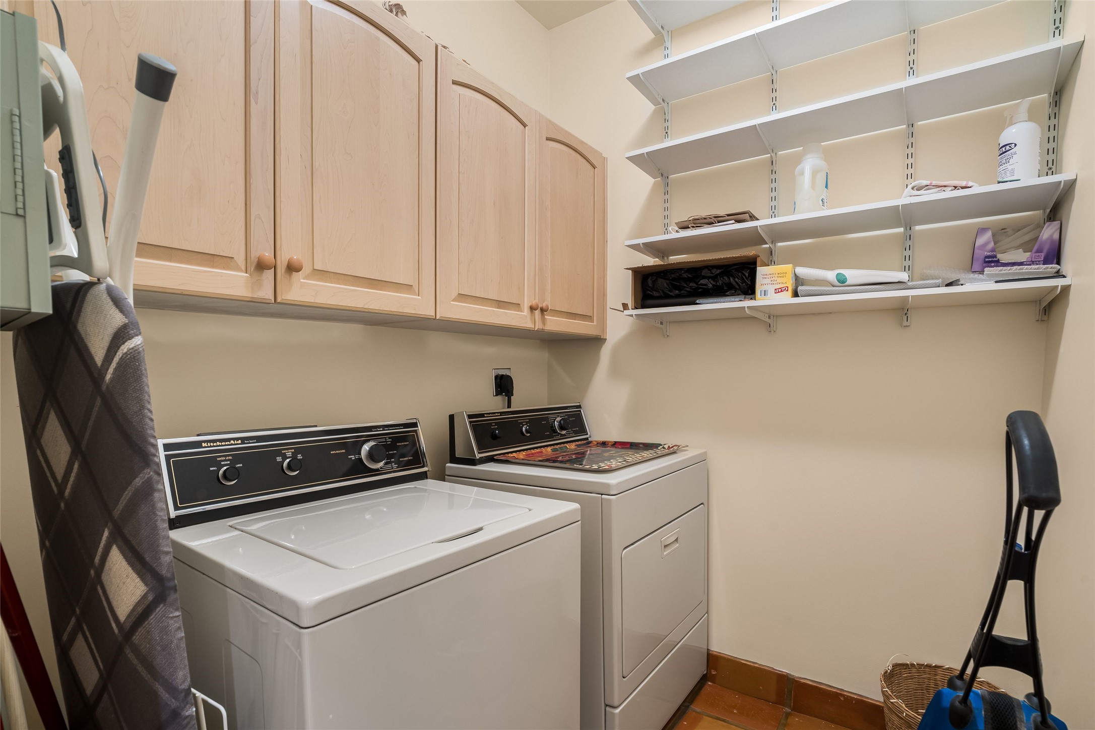 Easy living in this highly coveted Plaza Condo location at Quail Run! Not only is this home a first floor unit, it is the end unit by the bear sculpture fountain with beautiful southern light alignment for the spacious living room windows and private patio. The home has no steps, 2 bedrooms separated by a large living room with door and generous windows opening to the sizeable patio. The second bedroom is currently furnished as an office. The condo is being sold turn-key, with furniture and kitchenware included. Quail Run is a beautiful, gated community that is designed and equipped for convenient access. The HOA fee covers all amenities: golf, indoor pool, gym, fitness classes, tennis, pickle ball, 24 hour hosted security, exterior maintenance, stucco, roof, windows, patio bricks, courtyard wall. This residence is perfect for full-time living or as a lock and leave. Reside close to all Santa Fe has to offer-restaurants, galleries, museums, the Santa Fe Opera, hiking, skiing, year-round festivals, music concerts, lectures, theatre performances.