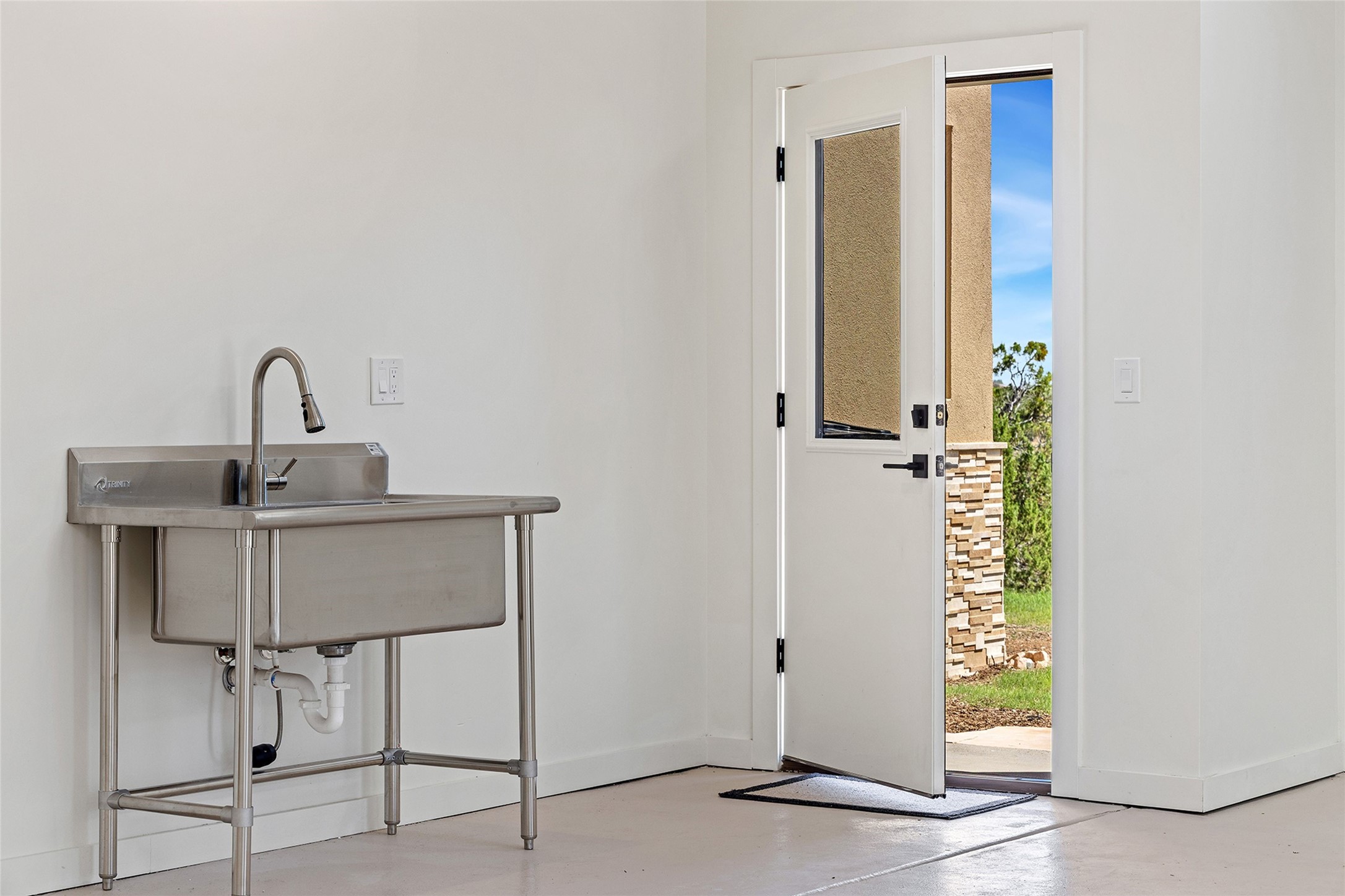 Welcome to 10 Calle Arbusto, an exceptional 2025-built custom contemporary masterpiece by the renowned builder, Clay Custom Homes. Recently completed and featured in the 2025 Haciendas Parade of Homes, this tranquil retreat is perched high above it all, offering breathtaking views of the 17th fairway at Sunset Golf Course and stunning Sangre de Cristo Mountain views. This rare offering showcases striking architecture paired with high-end designer finishes. Located within the famed community of Las Campanas, within close proximity to The Club at Las Campanas, (2) Jack Nicklaus golf courses, Spa, Swim, Tennis & Fitness Center, this home is designed to provide the ultimate indoor-outdoor living experience, ideal as a primary residence or a luxurious secondary retreat. The single-level, open-concept layout features a spacious living room with a wet bar and wine cooler, gas fireplace, sliding glass doors and a spacious dining area that seamlessly extends to outdoor living spaces, including a covered portal with an outdoor fireplace. The state-of-the-art island kitchen boasts expansive mountain and golf course views, rich cabinetry, tambour wood accents, a walk-in pantry, and top-of-the-line Dacor appliances and (2) dishwashers. The generously sized owner's suite delights with views, portal access and a spa-inspired bathroom with a glass walk-in shower, soaking tub, and a large walk-in closet. The separate guest wing includes two ensuite bedrooms and a versatile living room, perfect for accommodating guests, or a media room. Additional features include a private dedicated office, built-in BBQ/grilling station and outdoor kitchen, wood flooring, exotic stone countertops, abundant natural light, rich beam accents in the living room, and an oversized 2 car garage. This home exemplifies the pride and craftsmanship that embody the true Santa Fe lifestyle. Membership to The Club at Las Campanas is optional and by invitation only, though required to access all Club amenities.