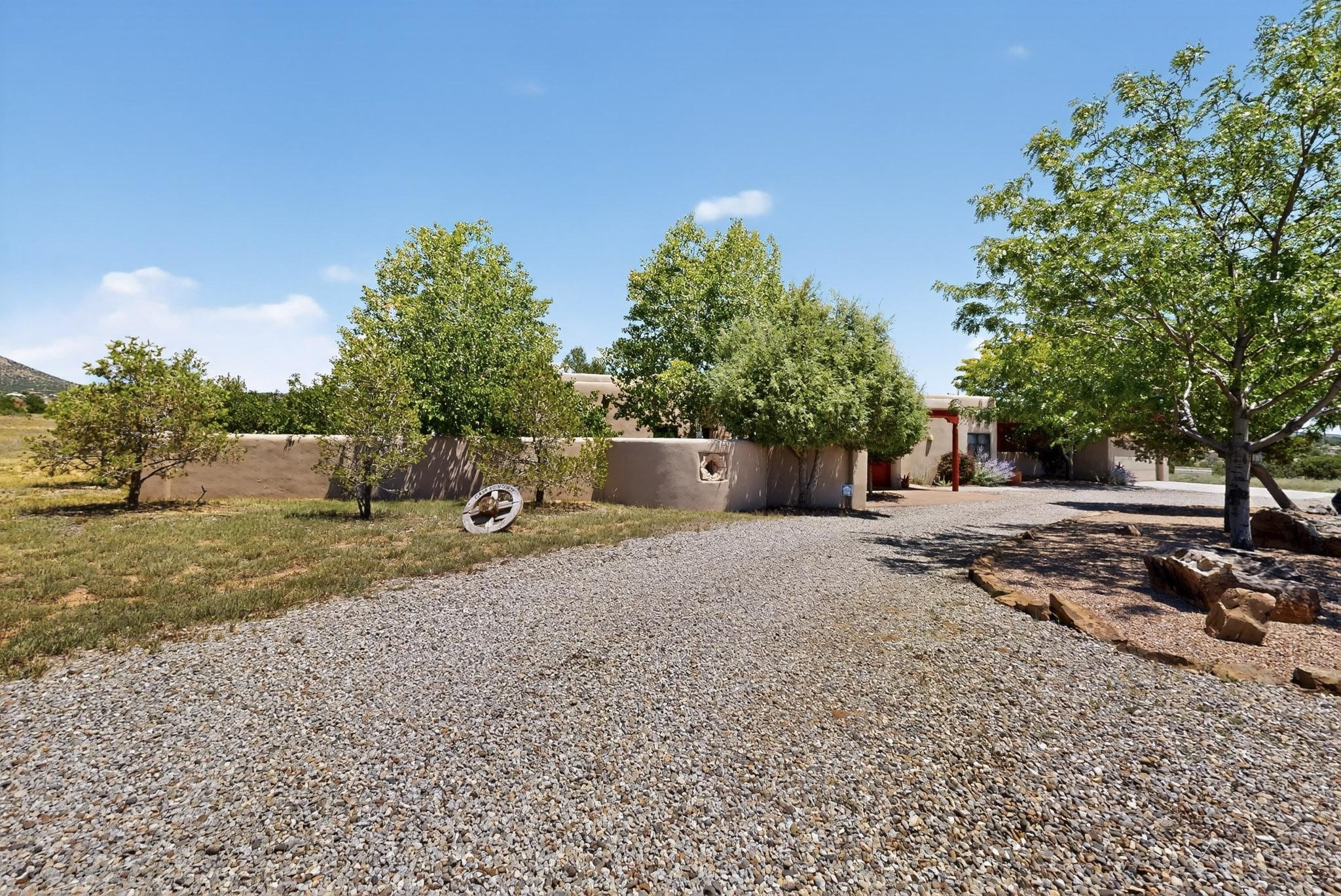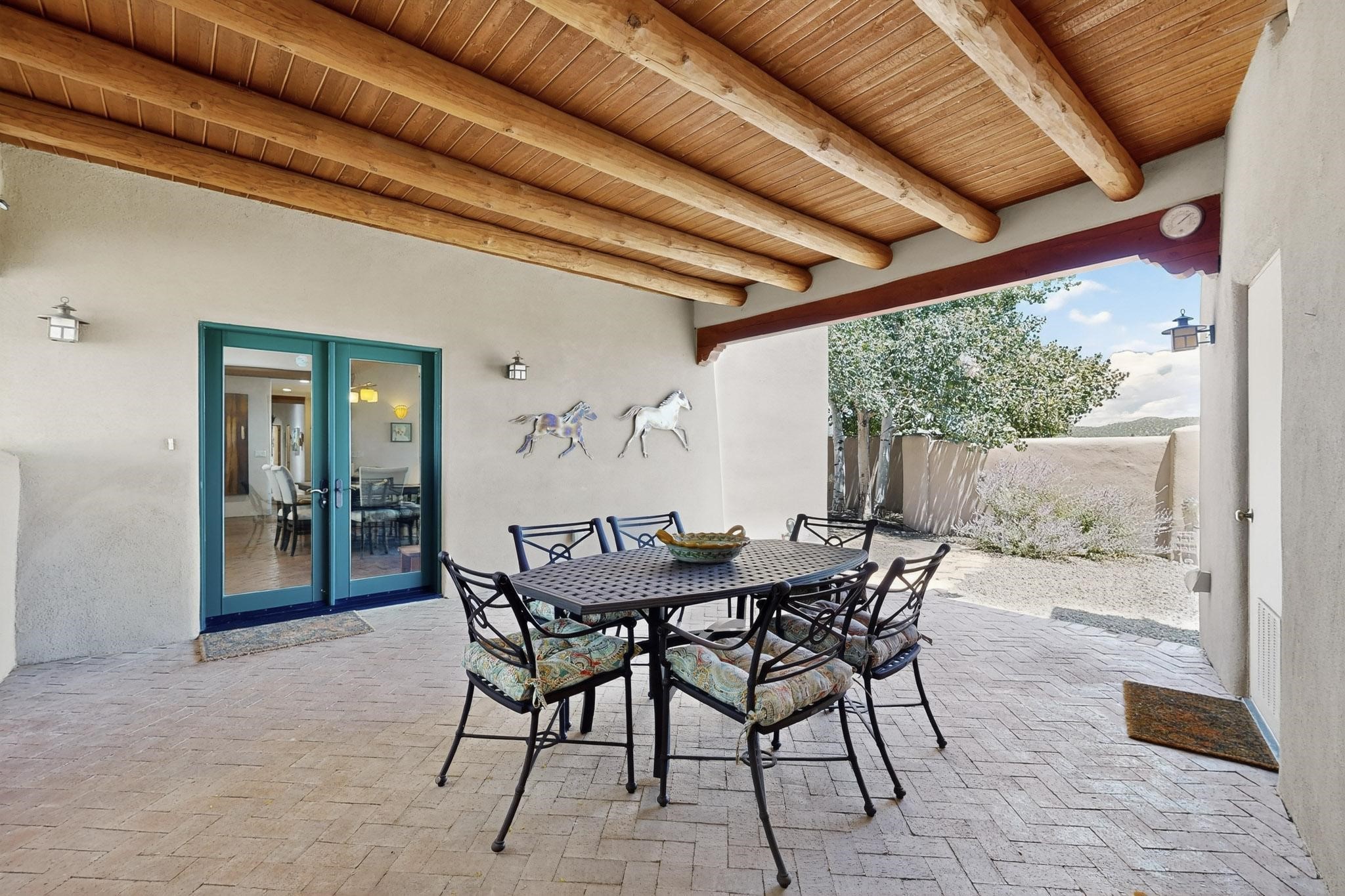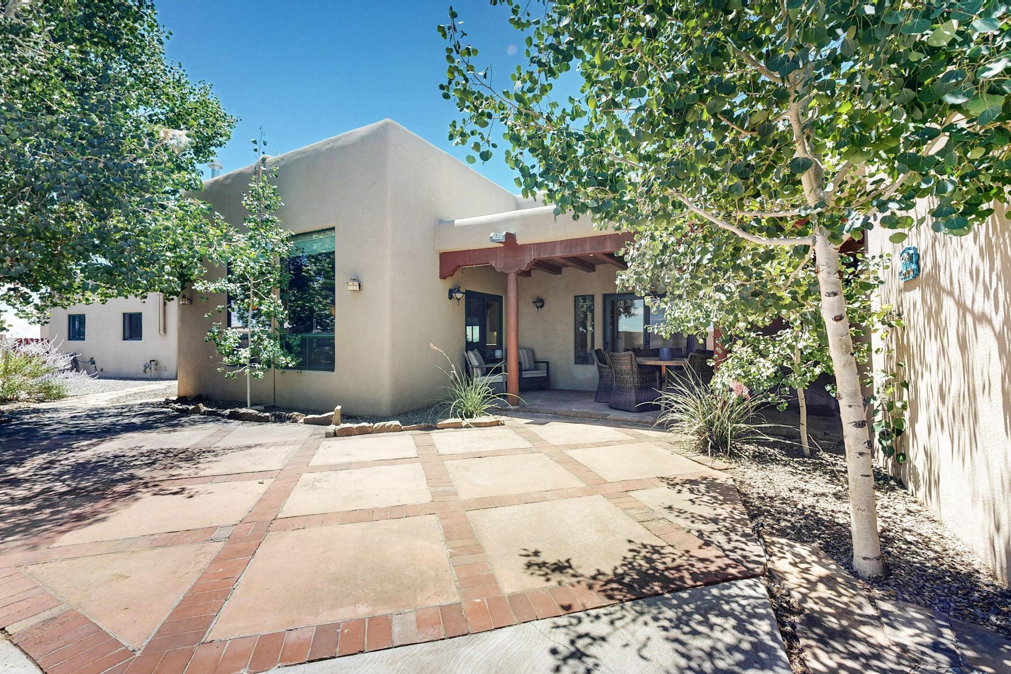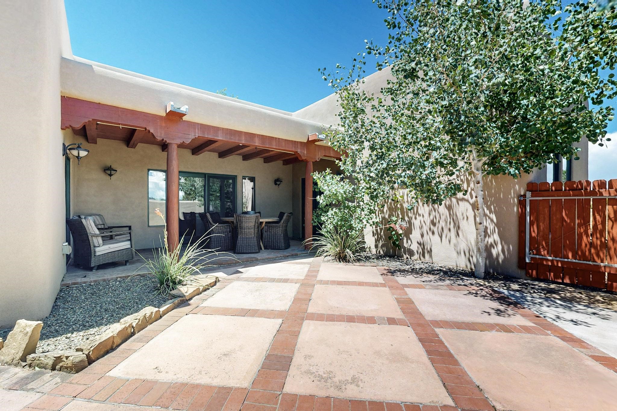 -Set on an expansive 2.73-acre lot in the highly coveted La Paz neighborhood, this exceptional Santa Fe residence offers refined living with timeless Southwestern style. Surrounded by mature aspens and beautifully landscaped grounds, the property welcomes you with a circular driveway and a sense of tranquil privacy.Inside, rich plaster walls, gorgeous brick flooring, and hand-hewn vigas reflect the region's architectural heritage, while soaring high ceilings and tall windows fill the home with light and airiness. The open-concept living, dining, and kitchen space is perfect for entertaining, featuring a custom chef's kitchen with high-end finishes and creative storage solutions.Multiple outdoor living spaces invite you to enjoy Santa Fe's famous skies--ideal for relaxing, dining, or gathering with friends and family. A flexible studio/gym/bonus room with heating and cooling offers even more room to create, work, or unwind.Additional highlights include a new water softener with reverse osmosis, a spacious two-car garage with epoxy floors, and a covered breezeway connecting to the main home. The home comes with a 1-year transferrable warranty.This is truly a rare offering--where luxury meets comfort in one of Santa Fe's most desirable communities.