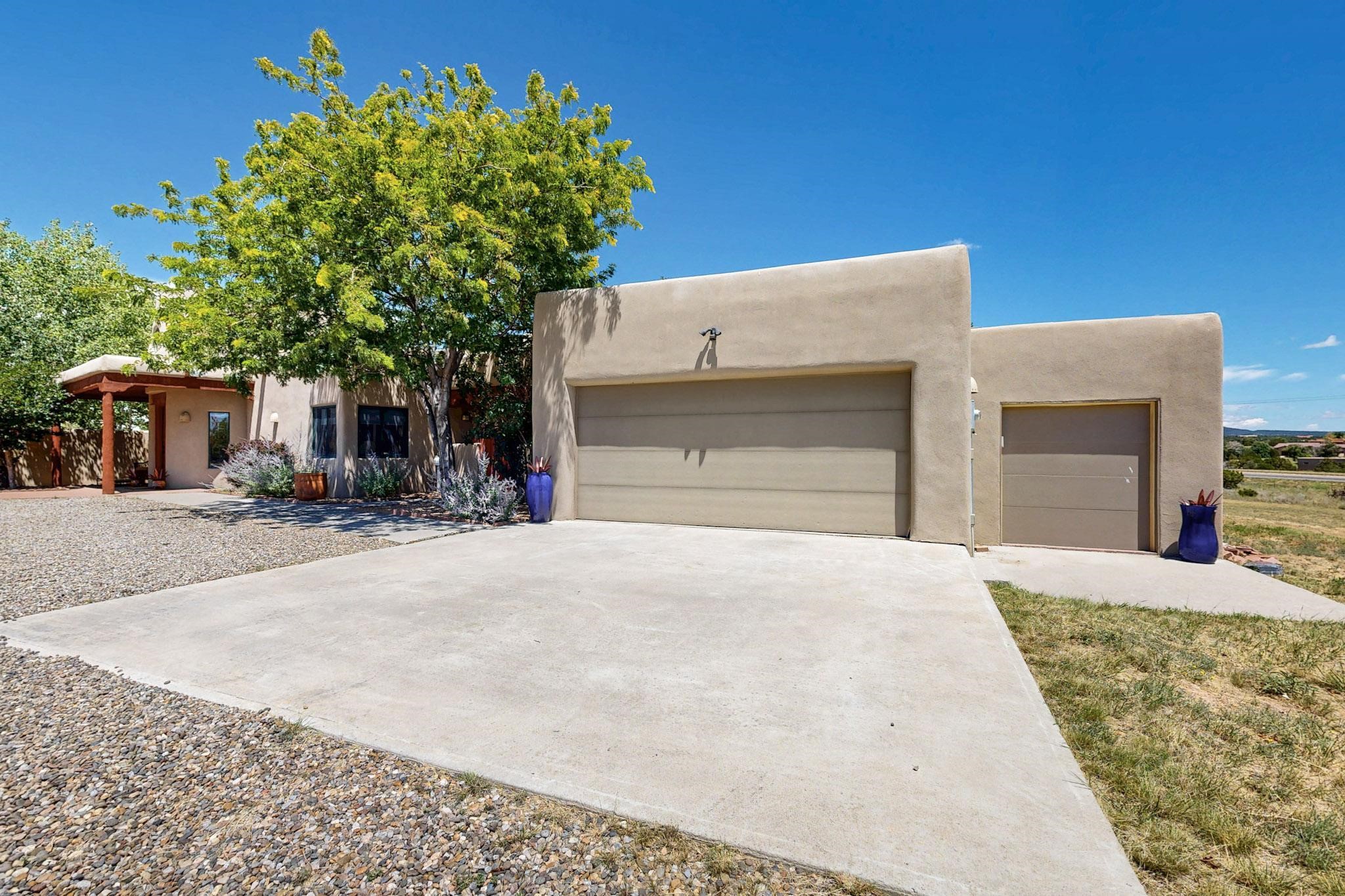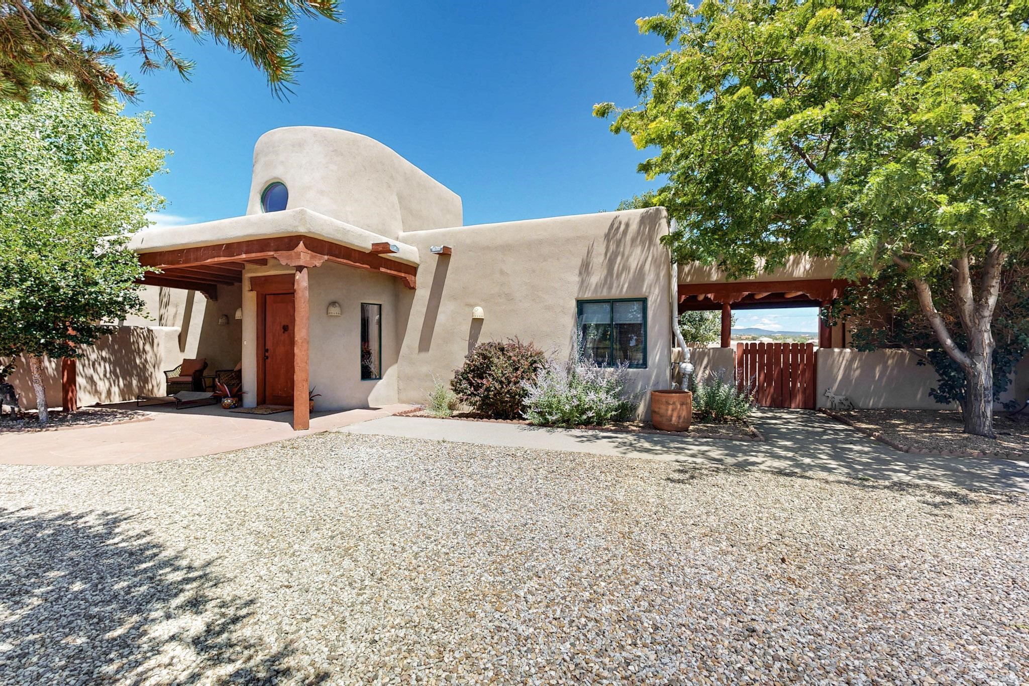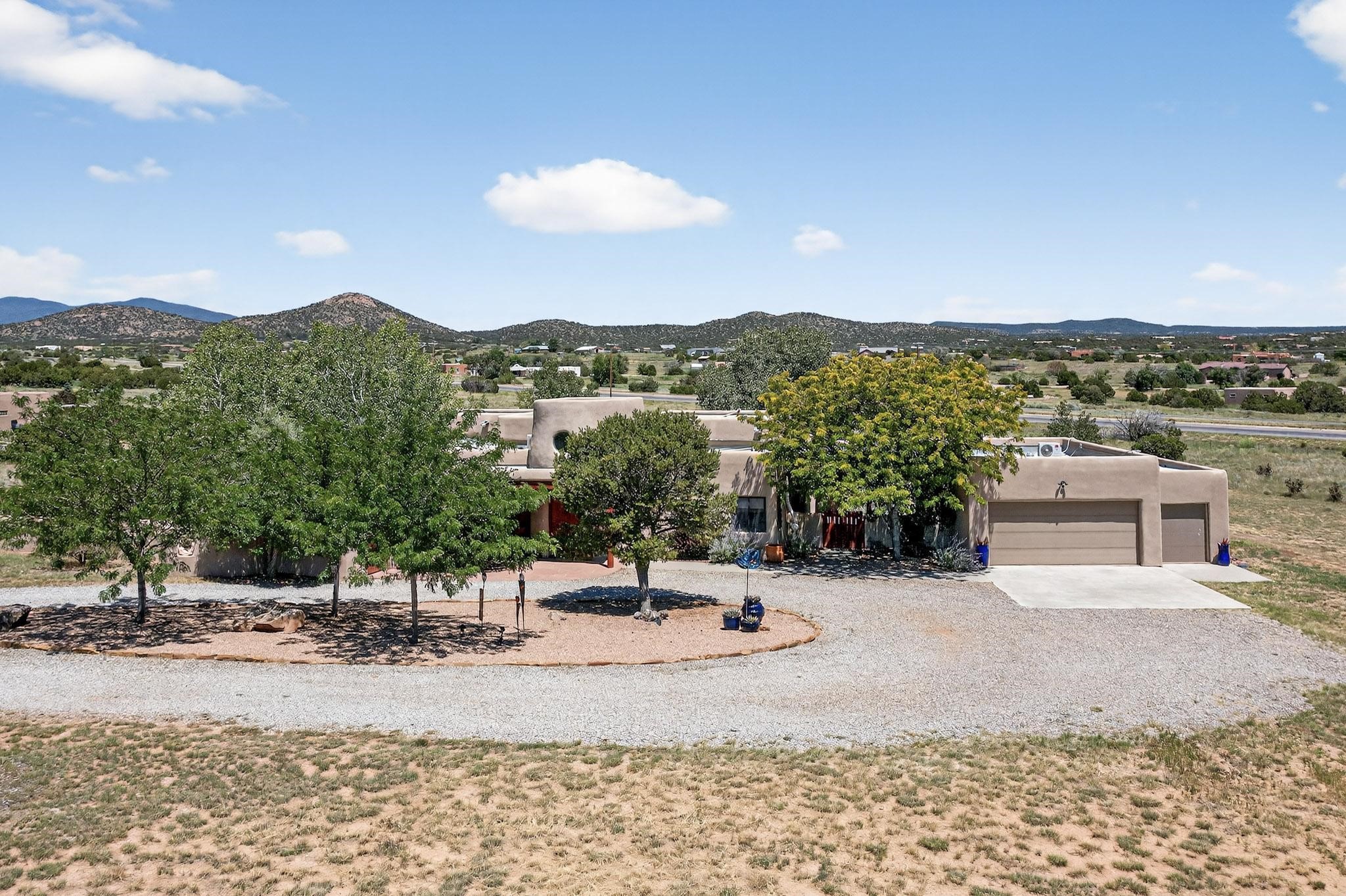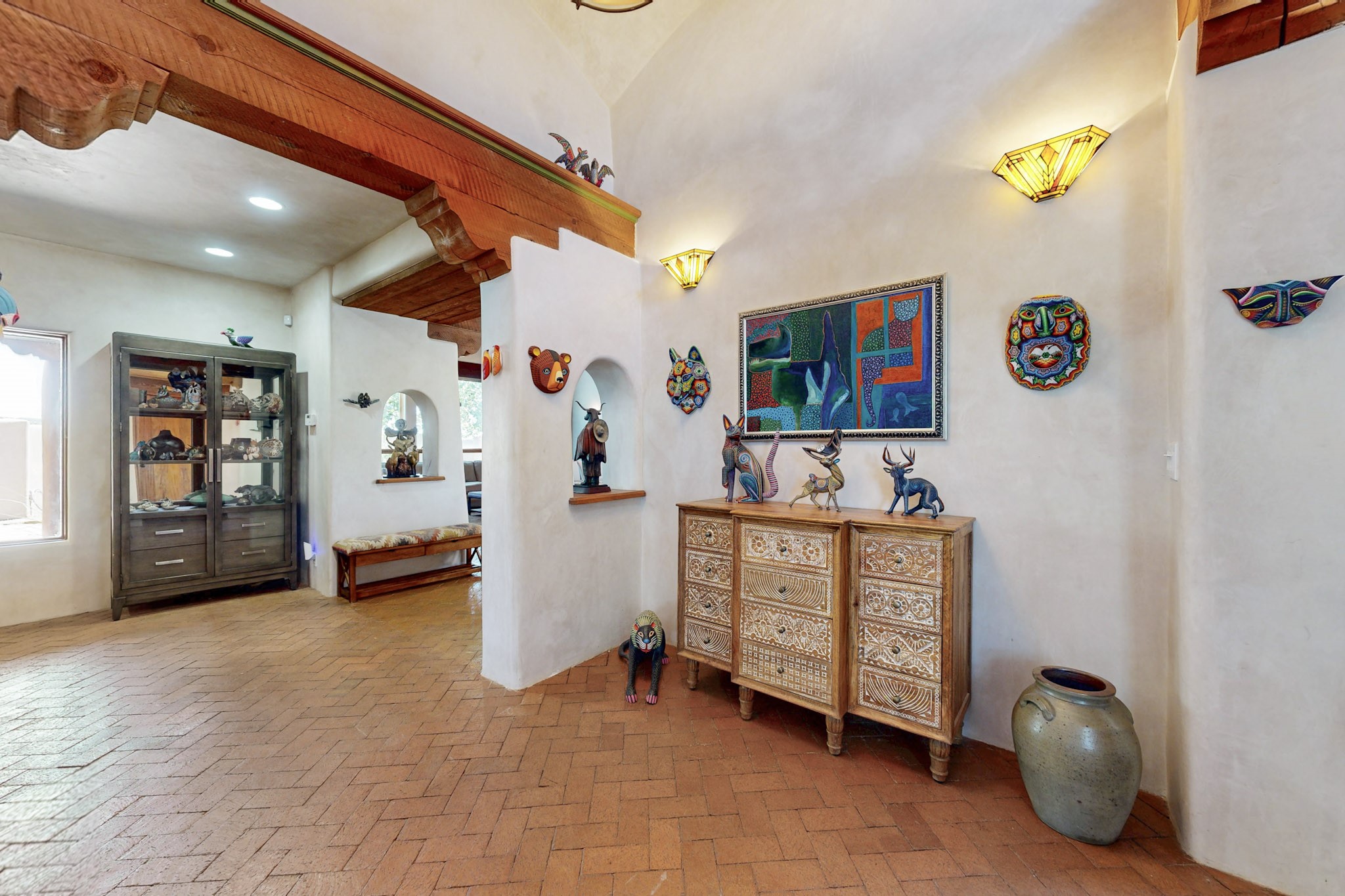 -Set on an expansive 2.73-acre lot in the highly coveted La Paz neighborhood, this exceptional Santa Fe residence offers refined living with timeless Southwestern style. Surrounded by mature aspens and beautifully landscaped grounds, the property welcomes you with a circular driveway and a sense of tranquil privacy.Inside, rich plaster walls, gorgeous brick flooring, and hand-hewn vigas reflect the region's architectural heritage, while soaring high ceilings and tall windows fill the home with light and airiness. The open-concept living, dining, and kitchen space is perfect for entertaining, featuring a custom chef's kitchen with high-end finishes and creative storage solutions.Multiple outdoor living spaces invite you to enjoy Santa Fe's famous skies--ideal for relaxing, dining, or gathering with friends and family. A flexible studio/gym/bonus room with heating and cooling offers even more room to create, work, or unwind.Additional highlights include a new water softener with reverse osmosis, a spacious two-car garage with epoxy floors, and a covered breezeway connecting to the main home. The home comes with a 1-year transferrable warranty.This is truly a rare offering--where luxury meets comfort in one of Santa Fe's most desirable communities.