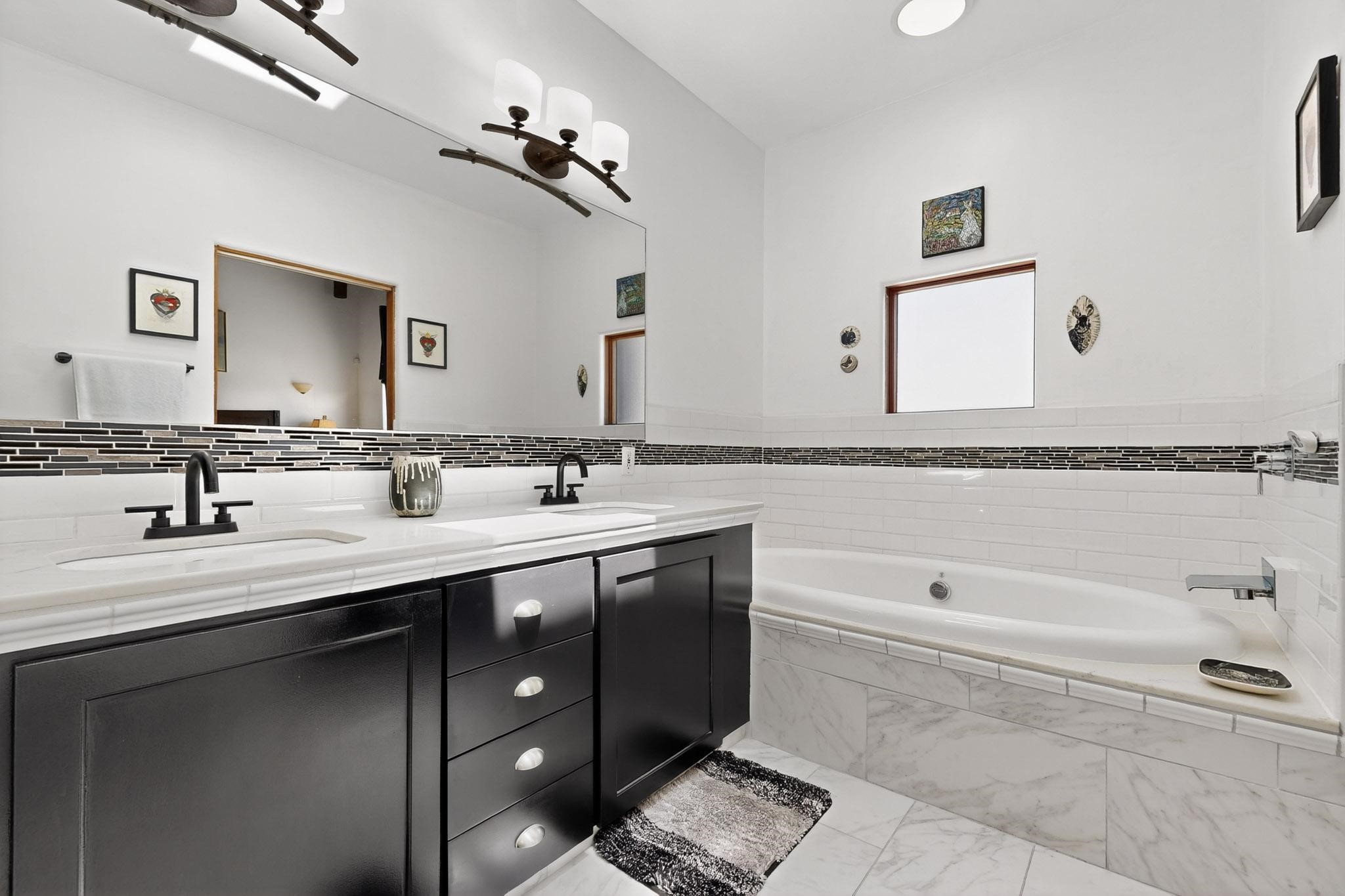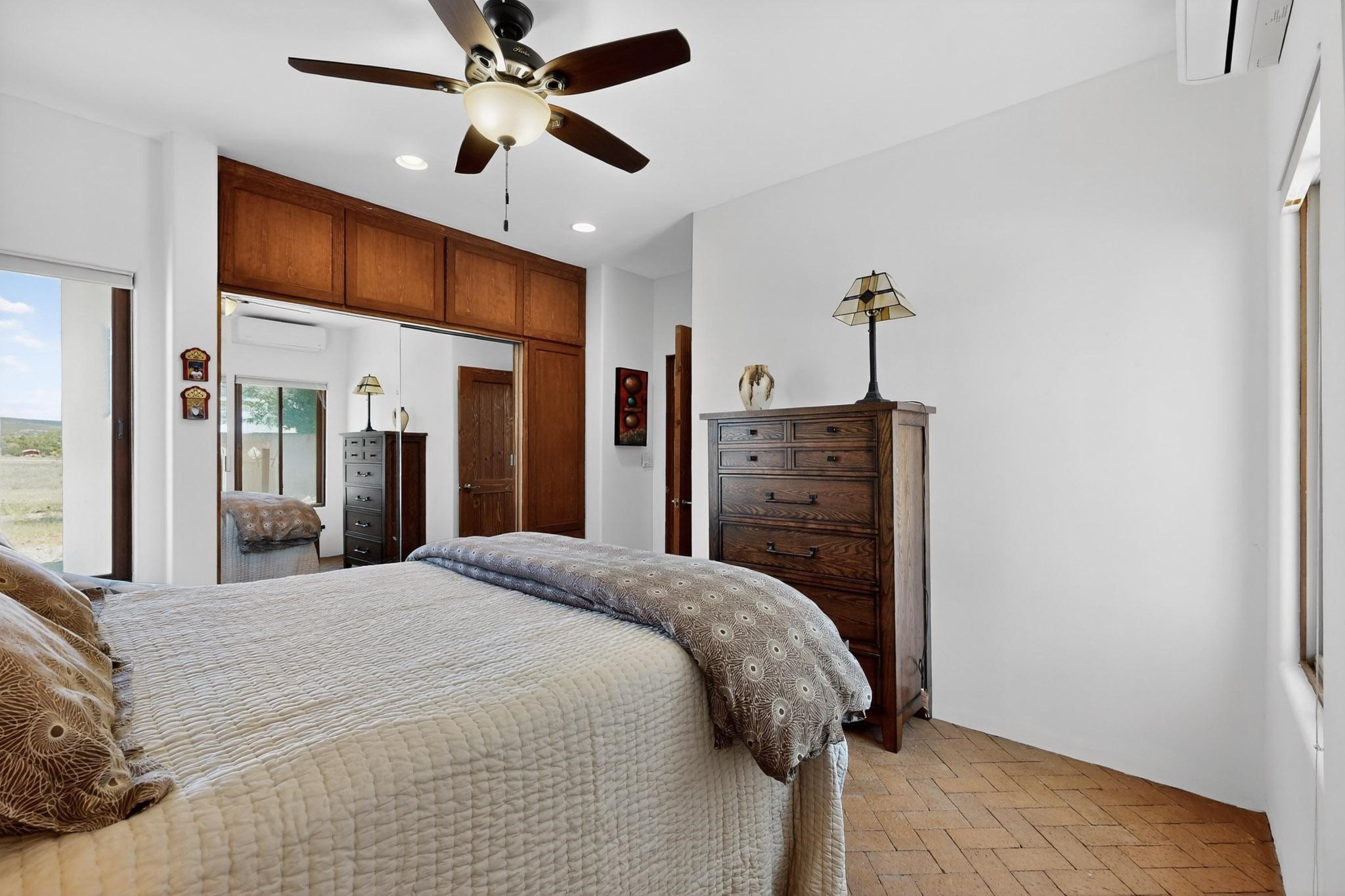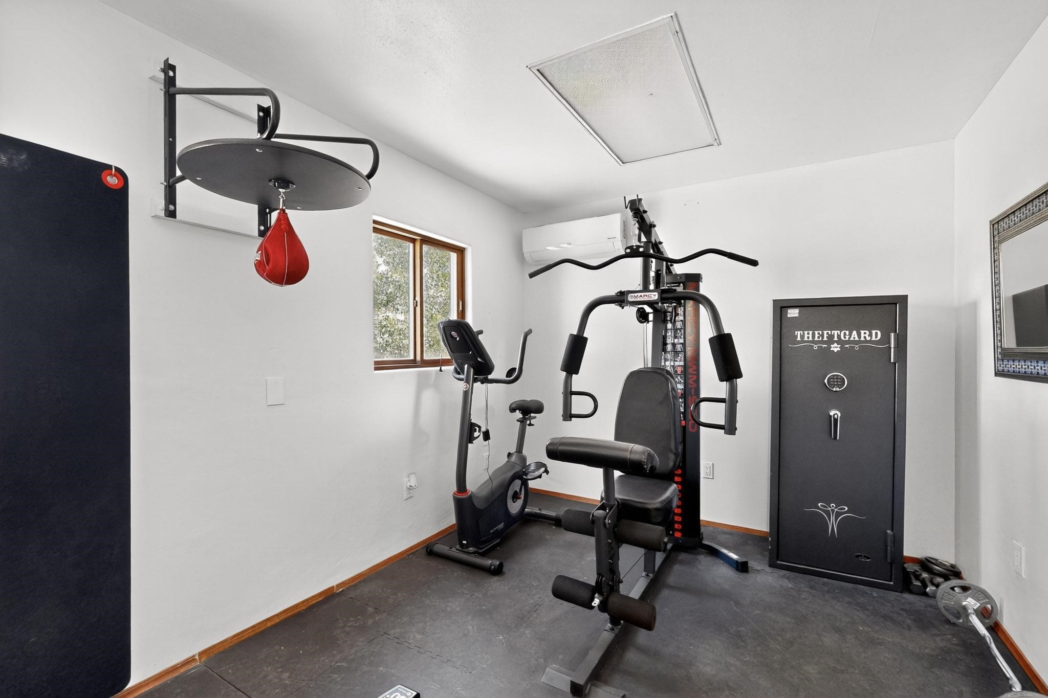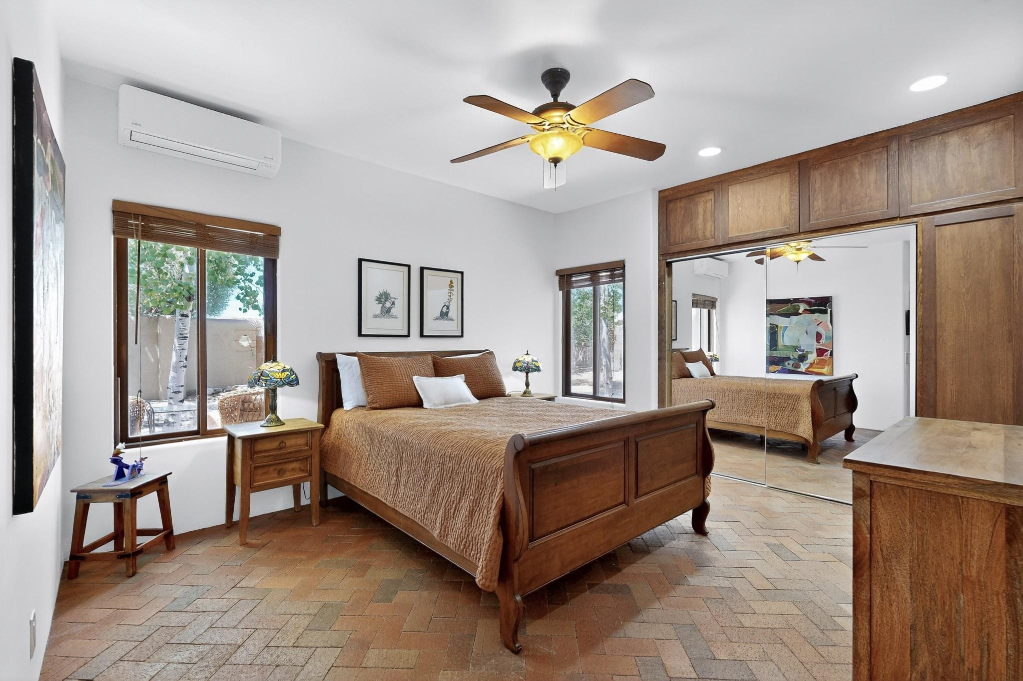 -Set on an expansive 2.73-acre lot in the highly coveted La Paz neighborhood, this exceptional Santa Fe residence offers refined living with timeless Southwestern style. Surrounded by mature aspens and beautifully landscaped grounds, the property welcomes you with a circular driveway and a sense of tranquil privacy.Inside, rich plaster walls, gorgeous brick flooring, and hand-hewn vigas reflect the region's architectural heritage, while soaring high ceilings and tall windows fill the home with light and airiness. The open-concept living, dining, and kitchen space is perfect for entertaining, featuring a custom chef's kitchen with high-end finishes and creative storage solutions.Multiple outdoor living spaces invite you to enjoy Santa Fe's famous skies--ideal for relaxing, dining, or gathering with friends and family. A flexible studio/gym/bonus room with heating and cooling offers even more room to create, work, or unwind.Additional highlights include a new water softener with reverse osmosis, a spacious two-car garage with epoxy floors, and a covered breezeway connecting to the main home. The home comes with a 1-year transferrable warranty.This is truly a rare offering--where luxury meets comfort in one of Santa Fe's most desirable communities.