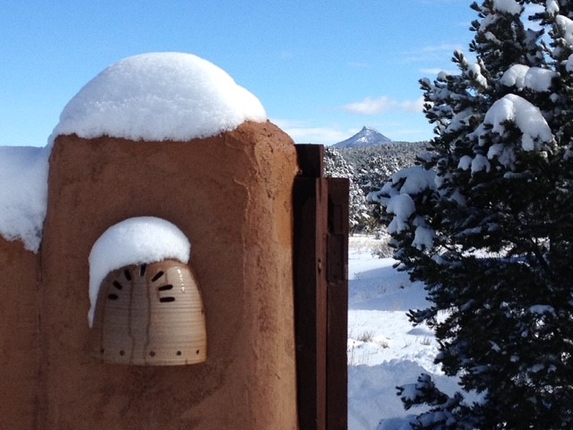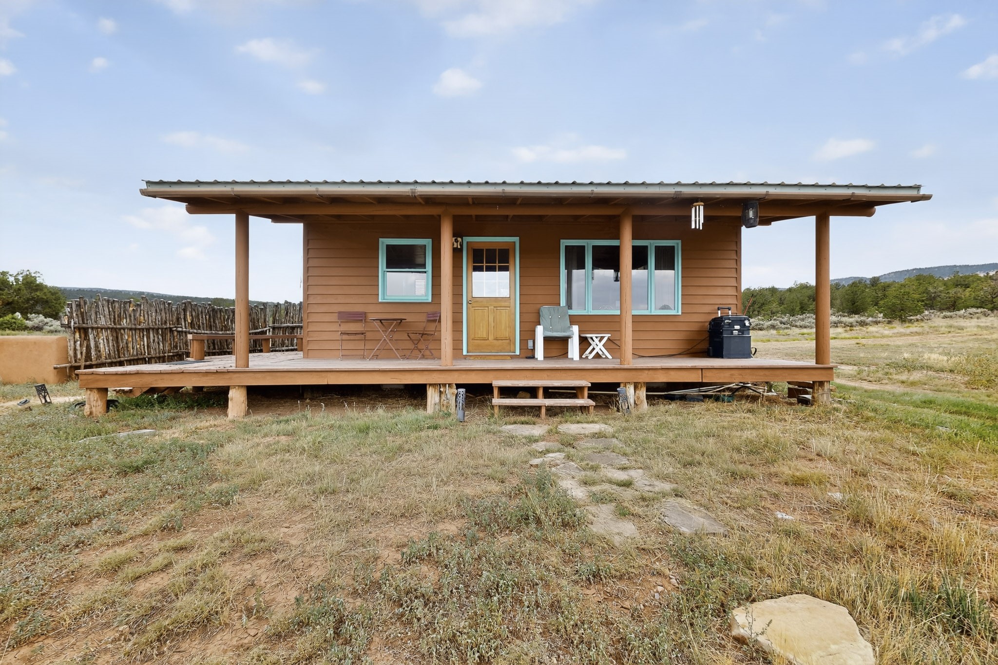 If you yearn for privacy surrounded by natural beauty, this is the place you have been searching for. This home, known as "Casa Alegre," the Happy House, and the nearby guest house offer quality custom construction with expansive views from every room including the guest house deck, the entrance portal (porch) of the main house as well as the two large picture windows in the great room of the main house. The traditional Pueblo Revival Style of this home, features bancos that beckon you to sit and appreciate the enchanting everchanging views to be experienced and appreciated at any moment in the day throughout the year. Look beyond the open meadow to the timeless, dramatic Mesa, with its varied hues of strata that provide clues to the geologic history of this land. This home is located in an area that is rich in history and the remnants of past cultures tell a story of the ancestral inhabitants of the land. The landscape beyond the open space of the meadow is an incredible example of high desert Juniper, Pinon and Ponderosa forest mix - all occupying the same ecosystem harmoniously. The wildlife that is drawn to this area by the two small streams located on the property dwell on this land and the surrounding forest, are a marvel to watch from the safety of this home. It is like watching a Jacques Cousteau land video, if it ever existed, in real time. The home has many very special features among them the beautiful burnished vigas and the saltillo tile flooring accenting the adobe-like, interior walls. Examine each the element whether it be the cabinets, doors, or walls, for it is a work of art, a reflection and an homage of a deep love and appreciation for the land and skies. The guest house is fully equipped with a small kitchen and a full bath/shower combination. Further away from the main home, there are two small outbuildings one of which has occasionally been utilized as extra guest house with a rustic outhouse nearby. With the abundance of New Mexico sunshine, solar panels generate electricity storing it in batteries, should there be a power outage on the distribution line. The panels have been paid in full. There are so many things to discover and learn from this land and the public lands that surround the area. So much has been learned, yet there is so much more to discover. Please watch the 3d VIDEO, The SHOWCASE VIDEO, and the extra photos provided by the seller.
