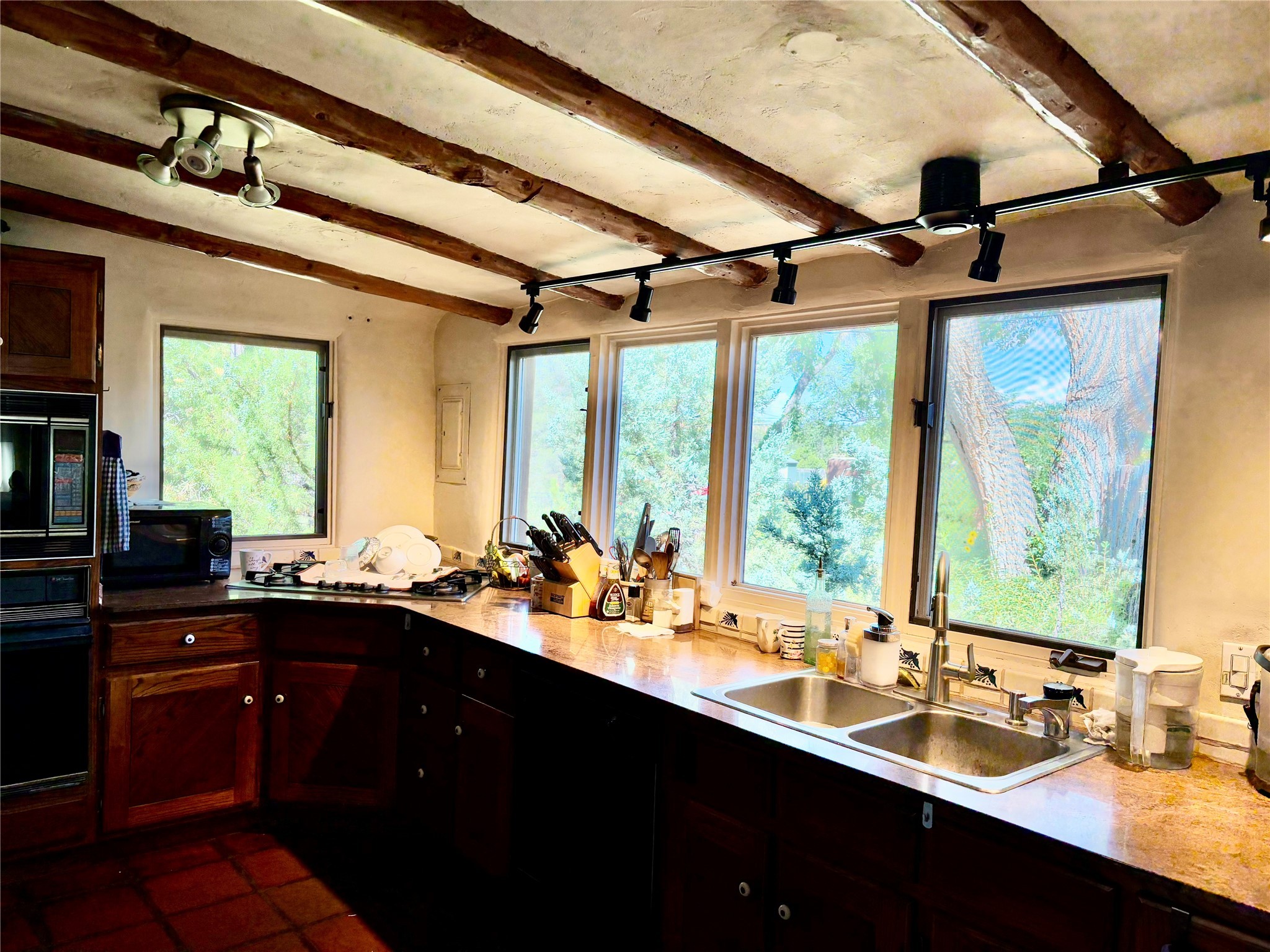 *** WEBSITE: oldcompoundsantafe.com ***What's your dream? A historic Santa Fe compound, nestled on about 2.3 semi-rural acres, with an adjoining 0.41 acre lot. Less than 3 miles from the Santa Fe Plaza, the 100+ year old adobe residence and five casitas surround a green central oasis and a small swimming pool. Imagine the possibilities: retreat, extended family, intentional community, workshops, therapy & health, retirement, or something not yet imagined. Reserved development rights on 2/3 acre and the vacant lot expand the possibilities. The current owners discovered the compound in 1969, bought it in 2006, and have been restoring, planting, and loving it ever since. They are ready to offer the compound to new owners, whatever their new dreams may be. * 6 units in 4 buildings, with 8 bedrooms, 8 baths, 9 fireplaces. Total heated space = 6215 sq. ft. (Note: Fires in fireplaces are photoshopped in. Buyer should verify fireplaces' functionality.) * Each unit has private outdoor garden space. * Extensive remodeling: kitchens and baths, oak and brick floors, new Pella windows, TPO roof, and more. * Landscaping with hundreds of native trees, bushes, vines, flowers, and grama grass; rock walls and fences. * 12' x 28' Barn with garage door.