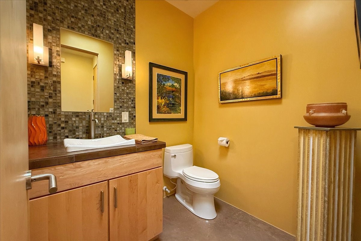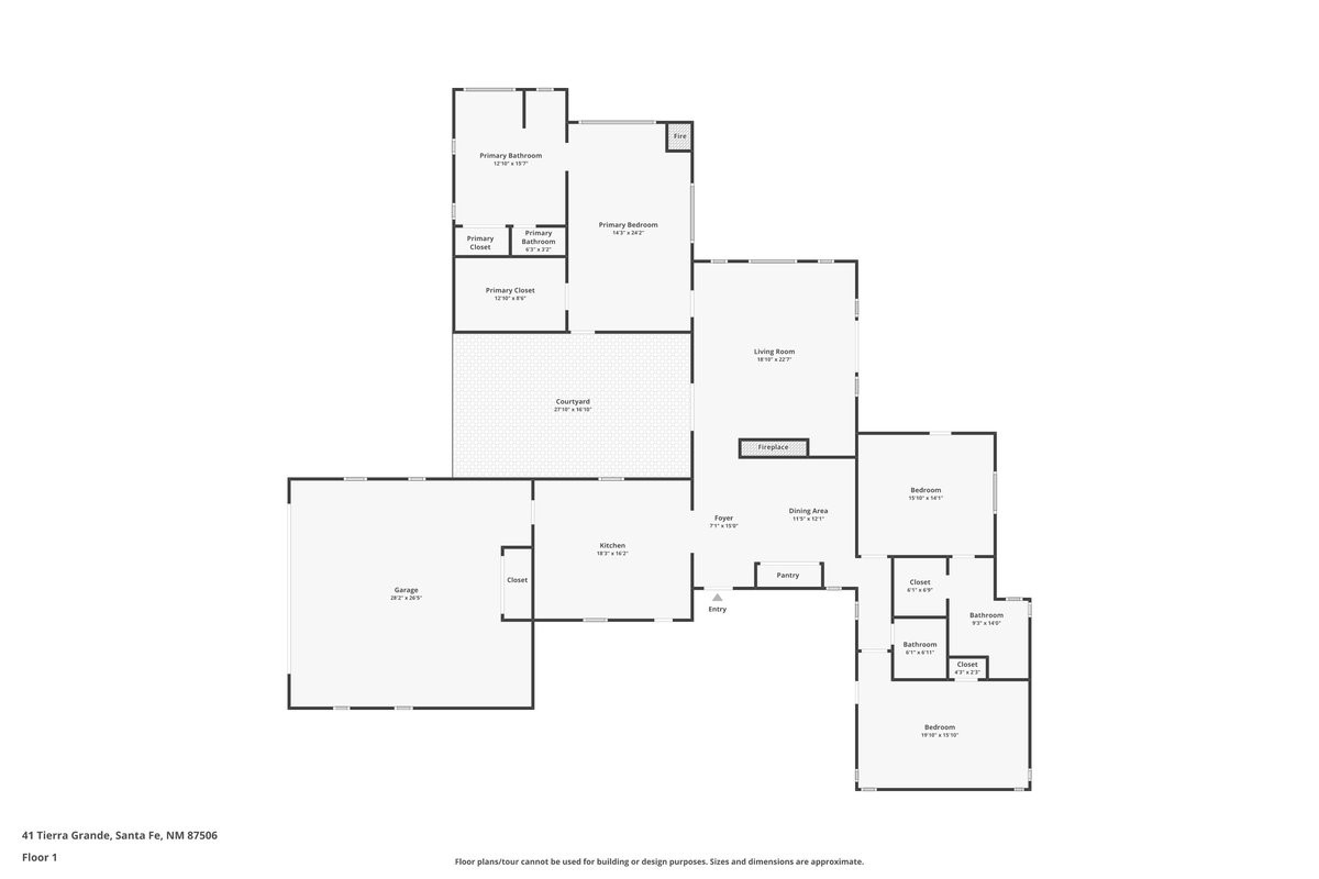 Welcome to this exceptional single-level, custom-built, contemporary-style home, featuring 2,528 sq. ft. of mindfully designed living space on 3.16 acres in the sought-after Tierra Grande subdivision, ~15 minutes from downtown Santa Fe. The home is strategically sited to capture the breathtaking panoramic views from the Jemez to the Sangre de Cristo mountains. This 3-bedroom, 3-bath residence (1 full, 1 three-quarter, and 1 half) boasts a thoughtfully designed floor plan that provides ideal separation between the primary suite and guest suites, offering both privacy and comfort. Blending timeless elegance with everyday livability, the home showcases exceptional craftsmanship throughout. A welcoming courtyard, shaded by mature aspens and enhanced by a serene water feature, sets the tone as you approach the striking 8-foot entry door that invites you into this beautiful home. The great room showcases 12-foot beamed ceilings with tongue-and-groove planking, a striking centerpiece fireplace, and Pella windows that fill the space with natural light while framing sweeping sunset views--also enjoyed from the primary suite, guest bedrooms, and the rear portal with its own fireplace. The kitchen is both functional and stylish, with custom maple cabinetry, Italian porcelain countertops and backsplash, and a wine refrigerator. The owners suite offers sunset exposures, a fireplace, a luxurious full bath, and a spacious walk-in closet with access to the interior courtyard. One guest suite is ensuite with a three-quarter bath and access to the rear portal for outdoor entertaining, while the third guest suite is ideal as an office or additional guest space. The interior courtyard, shaded by mature trees, offers a private, Zen-like retreat--ideal for both relaxation and entertaining. Additional highlights include 8-foot solid-core birch doors throughout, radiant floor heating, an oversized two-car garage, and a newly synthetic stucco system with a 7-year transferable warranty.