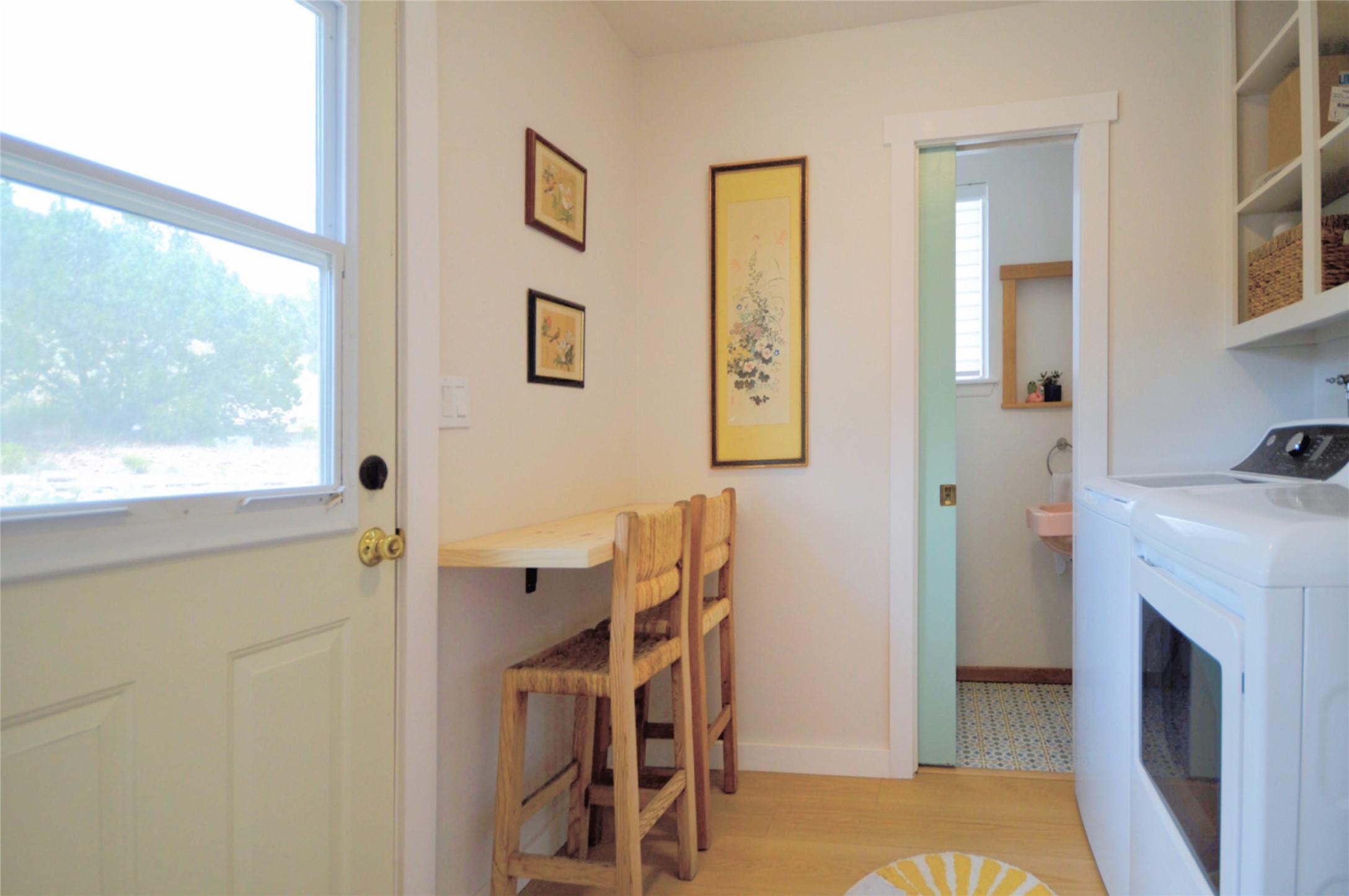 Modern southwest bungalow style ranch home on 2 acres with panoramic views from the Sangre De Christos clear down to the Sandias! Situated on a beautiful hillside with mature vegetation, this turn-key home has been extensively remodeled in 2025 and has spared no expense. Currently priced below the recently appraised value, this beautiful spacious home is ready for its new owners. The detached art studio/office/reading room with a newly installed mini-split and wrap around deck provides the perfect space to retreat without having to leave your property. Amenities include 2 and a half bathrooms, private well, on-demand hot water, all new appliances, maintenance-free Trex decking, 2 portals, attached 2 car garage, huge walk-in closet and office off the primary suite, oversized guest bedrooms, countless custom details, and a brand new 1500 gallon septic system which can allow for an additional dwelling on the property. The south-west portion of the property can accommodate your RV with epic views, or even provide a convenient place to build your mother-in-law suite. Enjoy all the peace and tranquility La Cienega has to offer while being a quick drive from all the charm and amenities of Santa Fe. All 3 bathrooms and the kitchen have been completely upgraded and remodeled. Minutes from the Ojo Spa and Las Golondrinas, the home would make a perfect vacation rental as well. This beautifully landscaped property provides plenty of outdoor space for entertaining and relaxation. Owner is licensed New Mexico real estate agent. All furniture is available with sale.