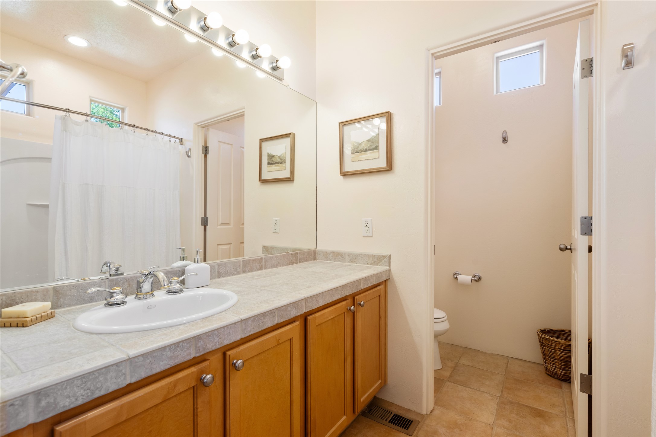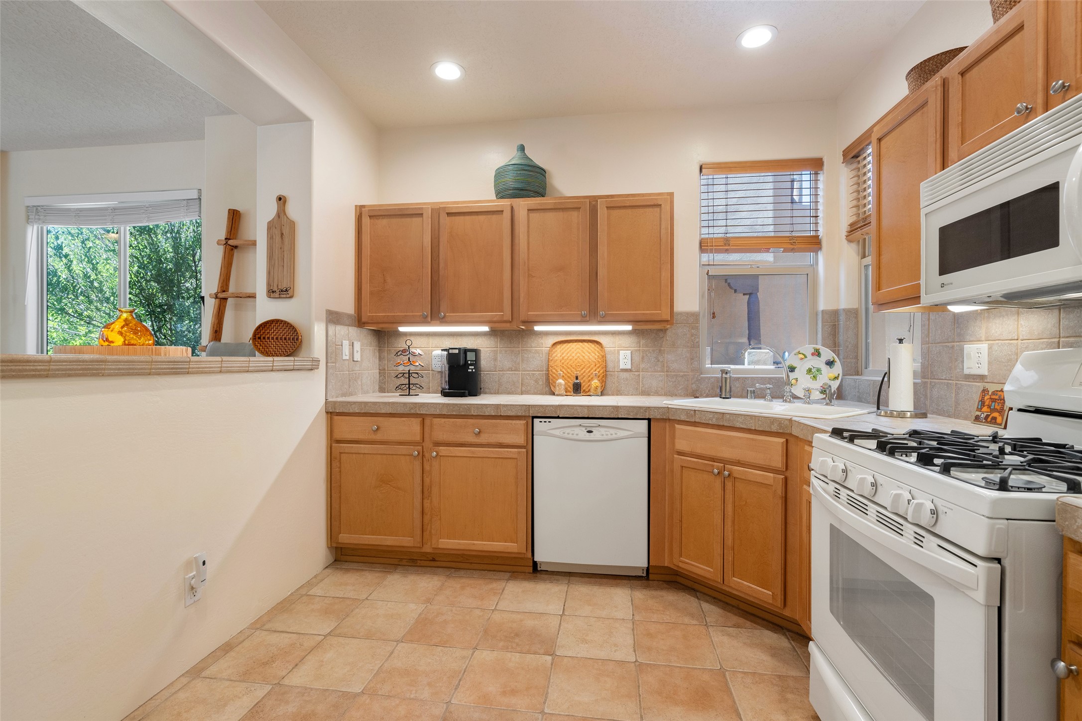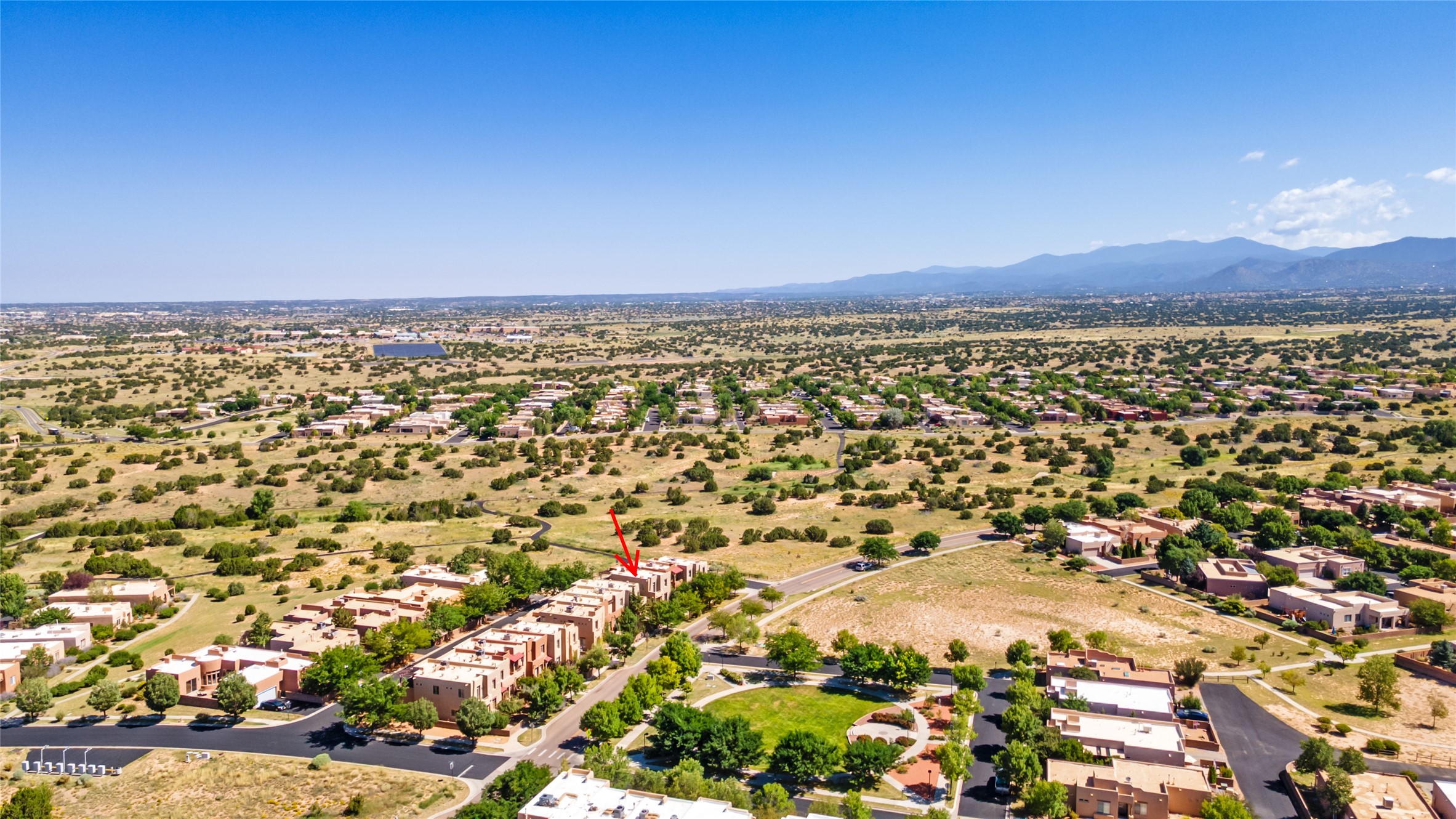 The seller will pay 1 YEAR HOA DUES with an acceptable offer for this Outstanding Windmill Ridge Townhome! So lightly lived in, you'll be amazed at its pristine condition! Located in the desirable Windmill Ridge area of Rancho Viejo, this turn-key property is ideal for full-time living or as a low-maintenance lock-and-leave. The main living area features beautiful tile floors and a soaring 20-foot ceiling, creating an open and expansive feel. A charming gas kiva fireplace, vigas, and wood ceilings add authentic Santa Fe warmth. The kitchen offers generous storage within maple cabinetry, complemented by soft neutral-toned tile countertops. A convenient laundry room and powder bath are located on the main level. Upstairs, a versatile loft provides the perfect space for a home office, media area, or reading nook, complete with a small balcony overlooking southern views and the neighborhood park. The primary suite boasts its own spacious balcony with sweeping views of designated open space and both the Jemez and Sangre de Cristo mountains. This immaculate home is part of a welcoming community featuring over 12 miles of paved walking trails, multiple parks, and an active HOA. Exterior maintenance is included in the townhome dues, making for stress-free living. Priced to sell and ready for its next owner!