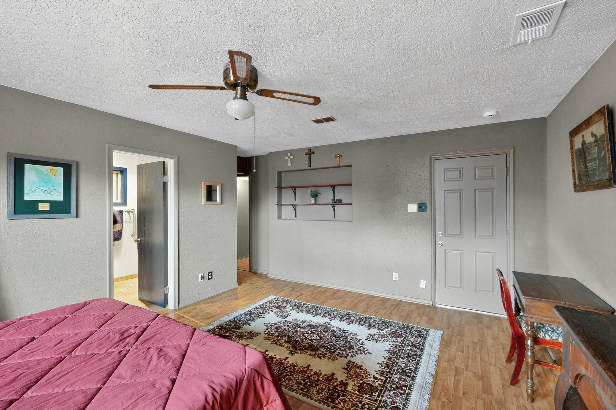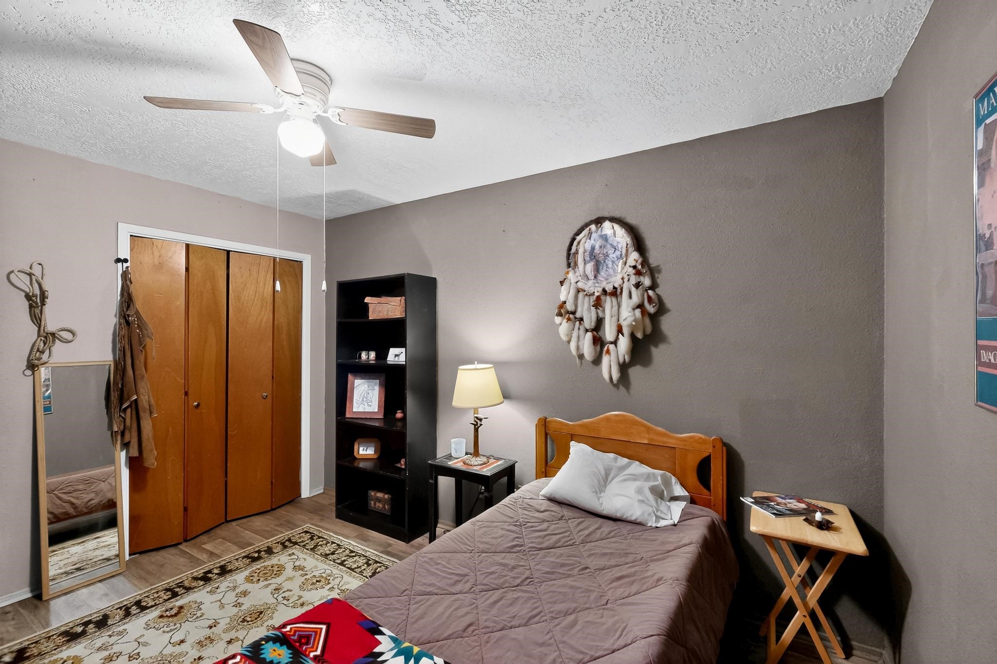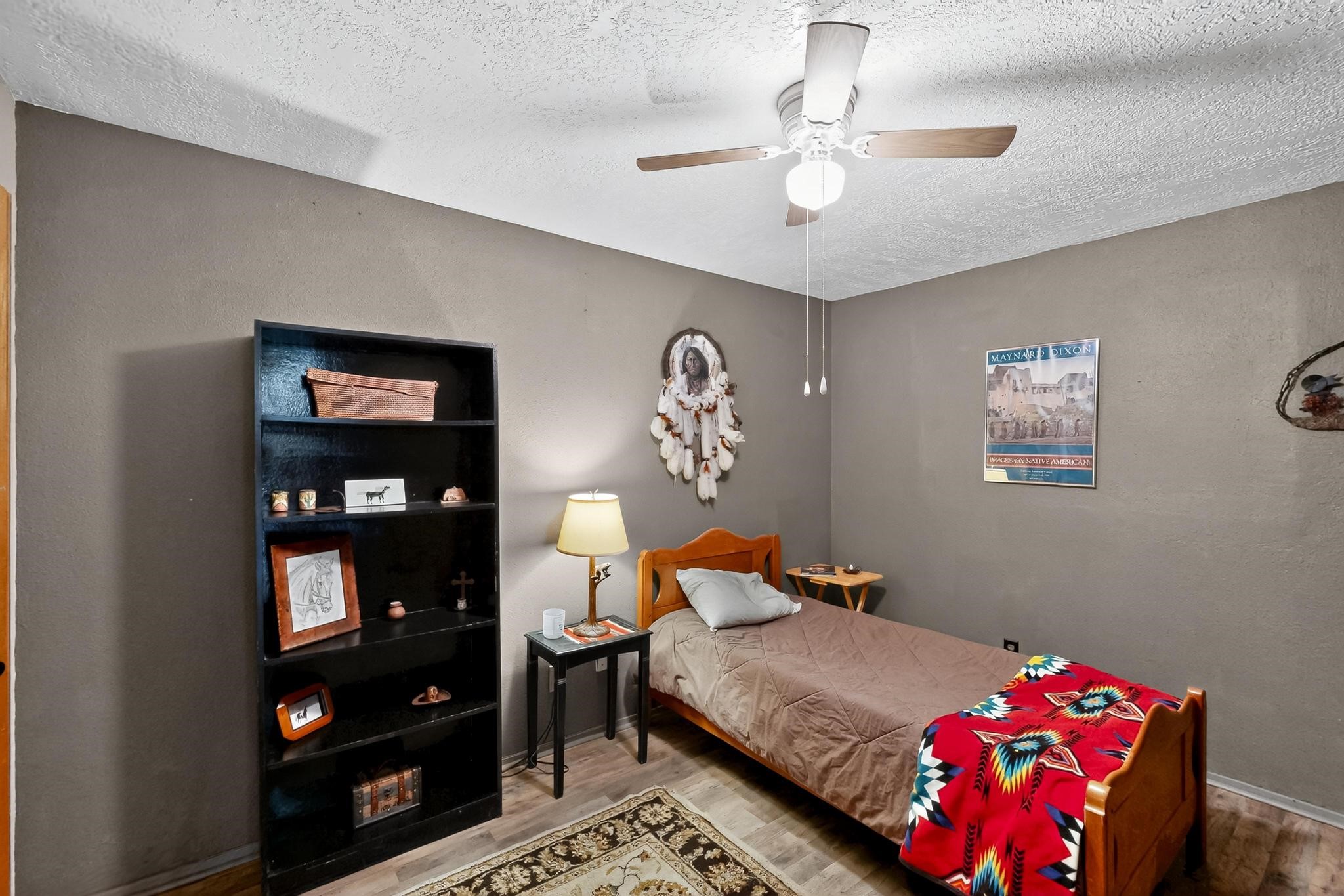 Motivated Seller is offering $5,000 in flex cash which can be used toward closing costs, rate buy-down, or price adjustments! Come see this gorgeous 4 bedroom, 2 bath house on a quiet street in the heart of northern Bernalillo. Updated kitchen and bathrooms. Bonus ''gym'' could be used as an extra family room, media room or bedroom. Enjoy your coffee in the screened porch or one of 4! separate sitting/eating/patio areas in the back yard, or under the shade of the trees in the front yard. Bonus is the views of the Sandias from your beautifully Xeriscaped back yard. Property is fully fenced for the safety of your family or furbabies. Gated access to the backyard from Camino Don Tomas. Quick access to 550 and I-25 makes for an easy commute to work.