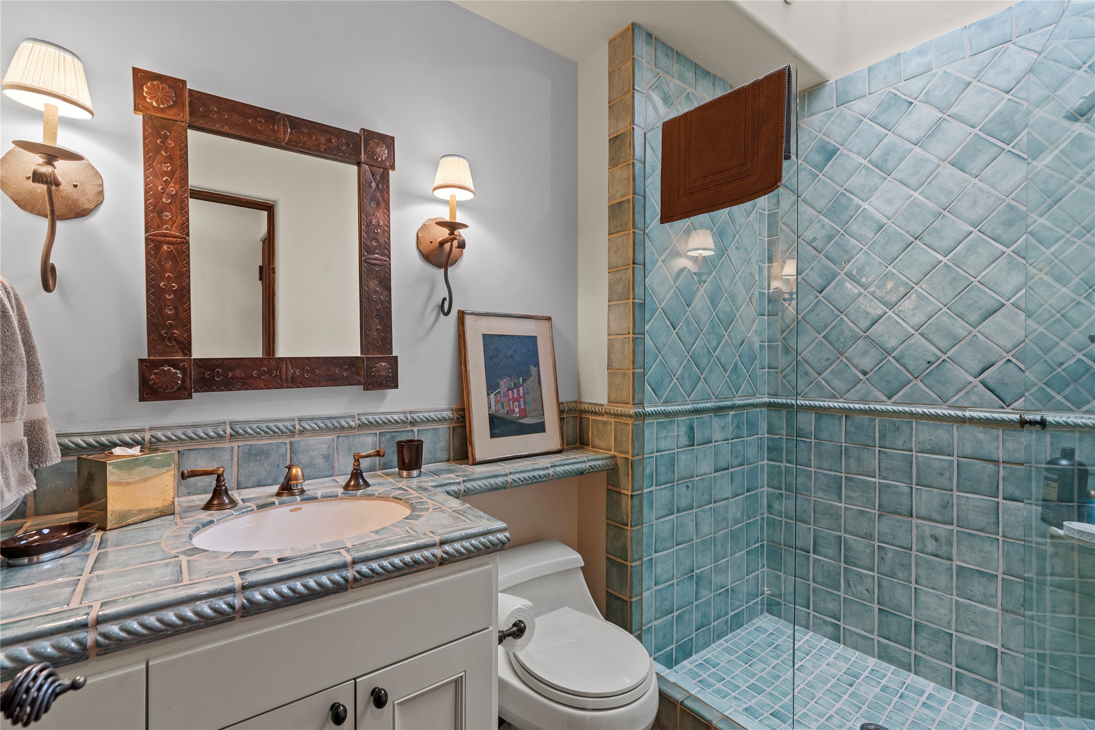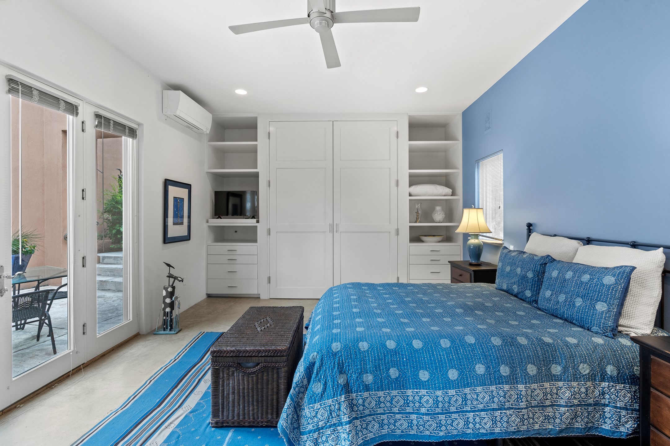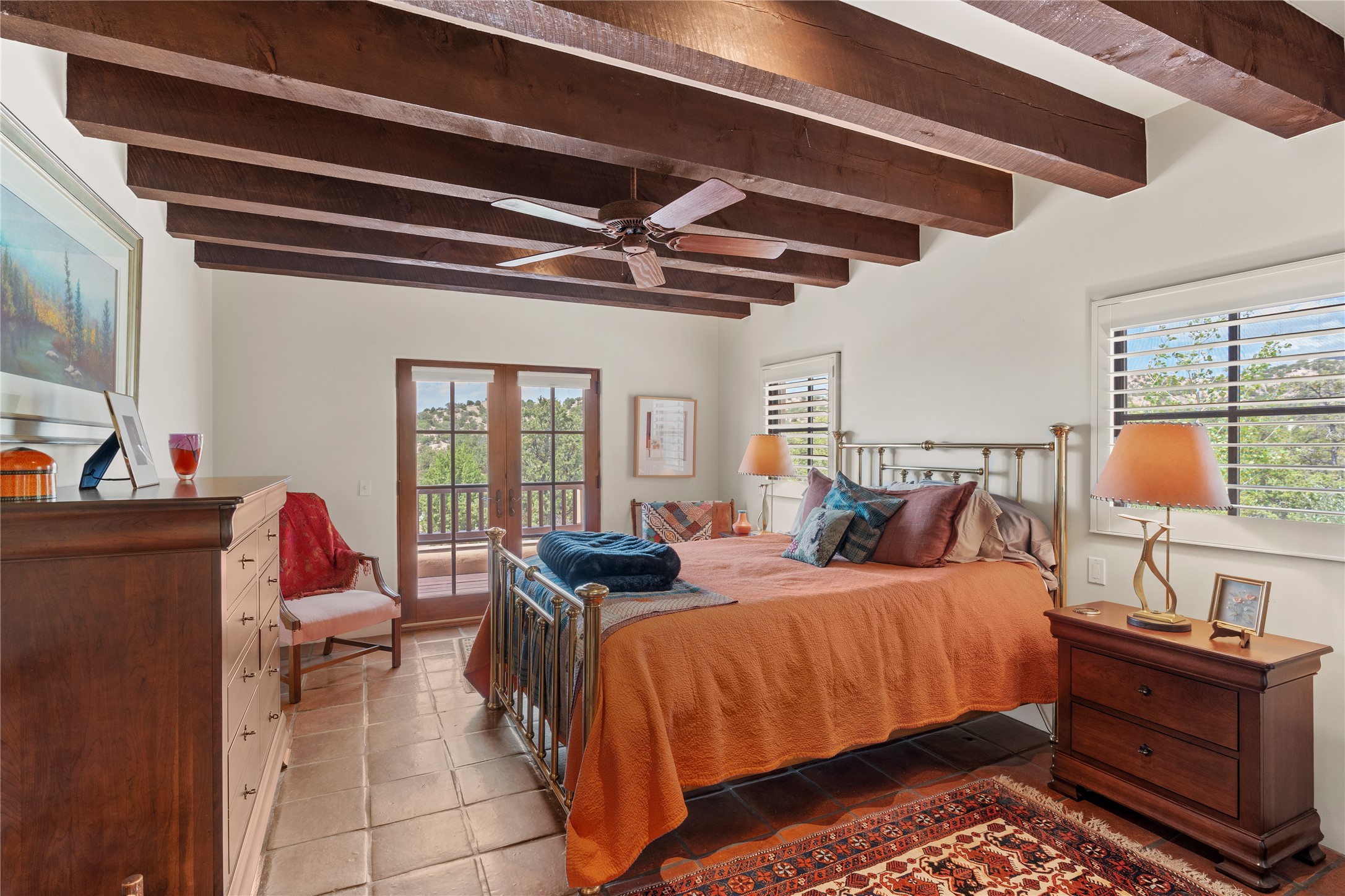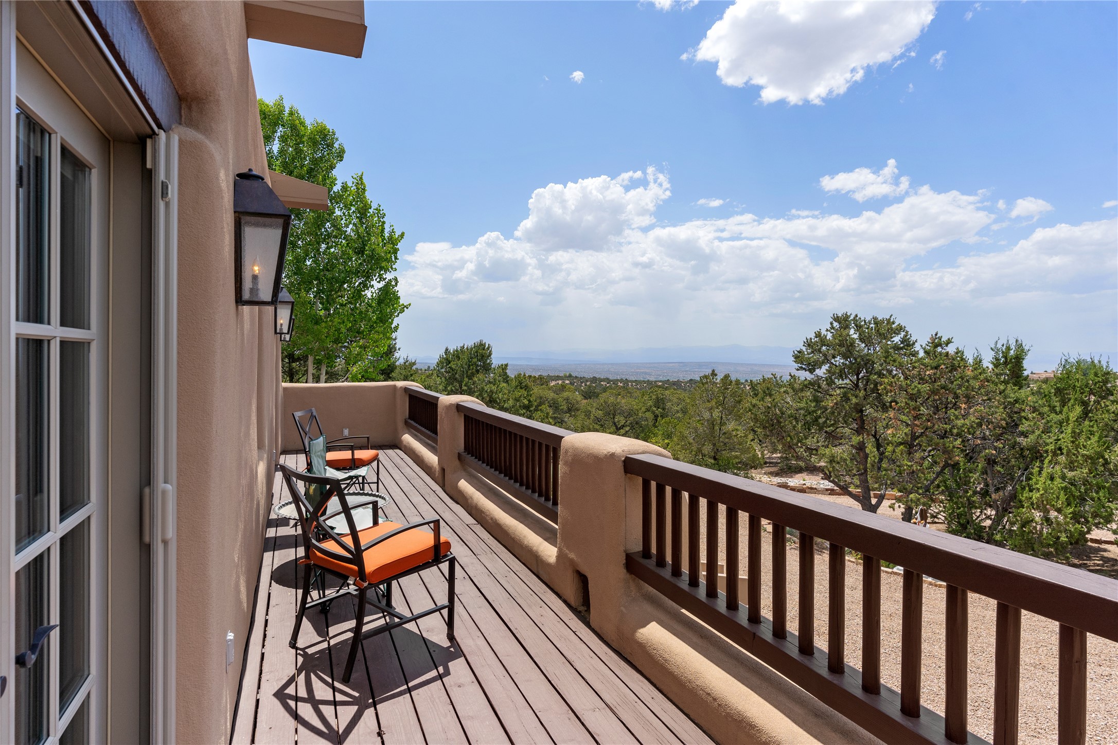 Welcome to a stunning Tesuque area compound in the prestigious gated Los Caminitos subdivision. On over 5 acres with a private well, fantastic Jemez and sunset views from main house built by Sharon Woods in 95'. The kitchen is stunning with doors to the portal with outdoor fireplace. Elegant living/dinning room surrounded on three sides by windows with upper end metal shades. Primary bedroom includes fireplace and access to rear patio. Two guest bedrooms have their own private deck with views of the Sangres. 3 car garage. Separate guest house with bath, as well as a large studio apartment and spacious studio with large north windows and new modern bathroom. Several owner upgrades including new entrance gate and septic field, new drip irrigation and pantry. Community pool and racquet courts. Lavender, roses, aspens, lilacs crab apple and peonies. 15 minutes from the plaza, adjacent to the Four Seasons resort, close to Tesuque Village Market and the world renowned Santa Fe Opera. If privacy, security and the New Mexico landscape is what you are looking for, come see.