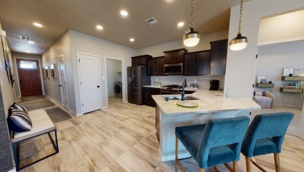 Pics are of model. Actual selections may vary. Come visit the new model to see all this home has to offer. With three bedrooms and two baths on a single floor, this home comes standard with a two-car garage. Natural light floods each room with 9' ceilings throughout adding volume. Granite countertops are standard in the kitchen and baths with a 4" granite backsplash. The kitchen has a pantry and a large island comfortable. Appliances include range, built in microwave, and dishwasher. Drop panel stained cabinets with crown molding complete the sophisticated look. Floors in the laundry room, kitchen, dining area, entry and baths are tile. This home has lots of energy efficient features: low E dual pane windows, programmable thermostats, range hood vented to exterior, 95% energy efficient gas furnace and so much more.