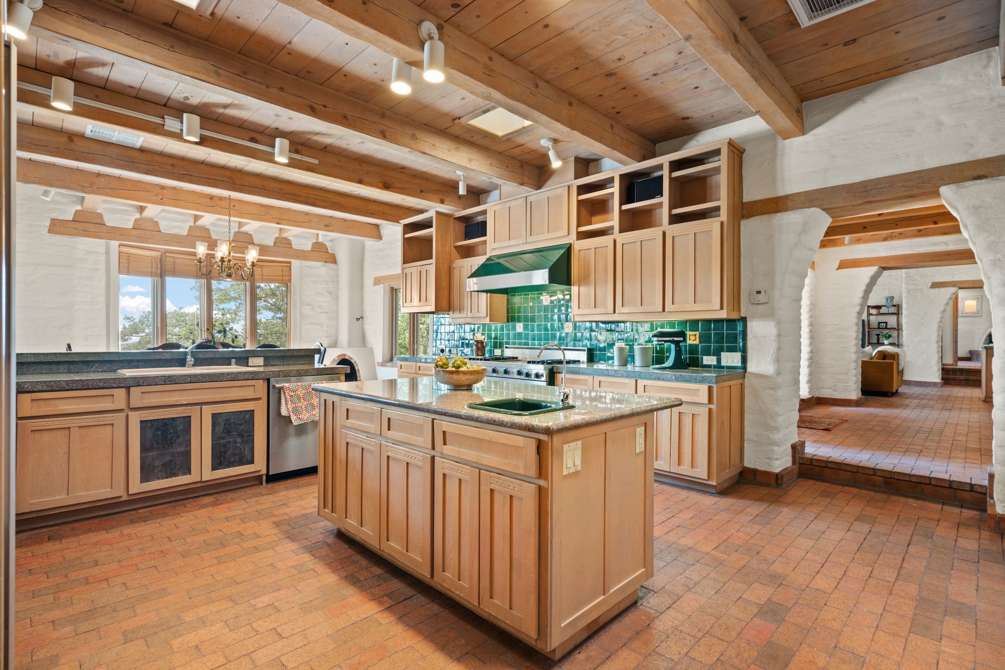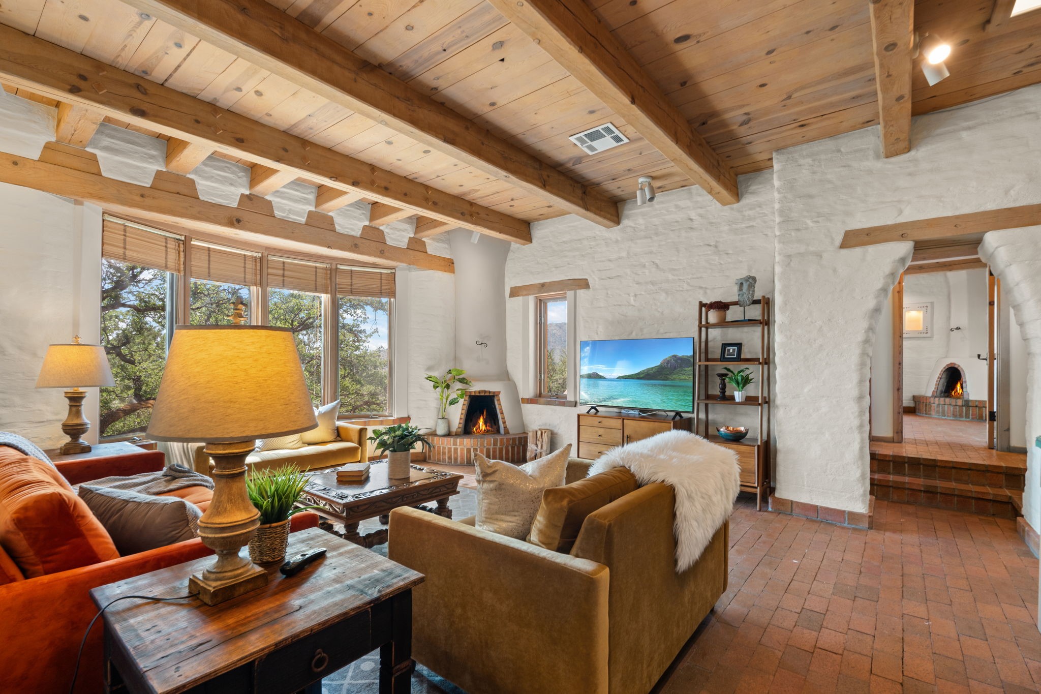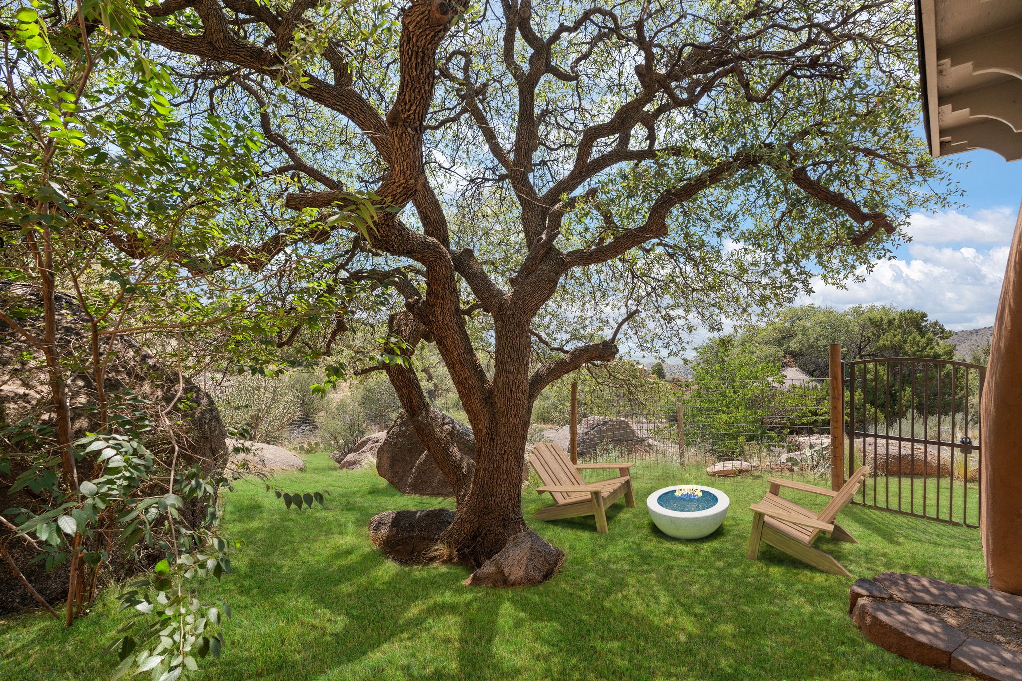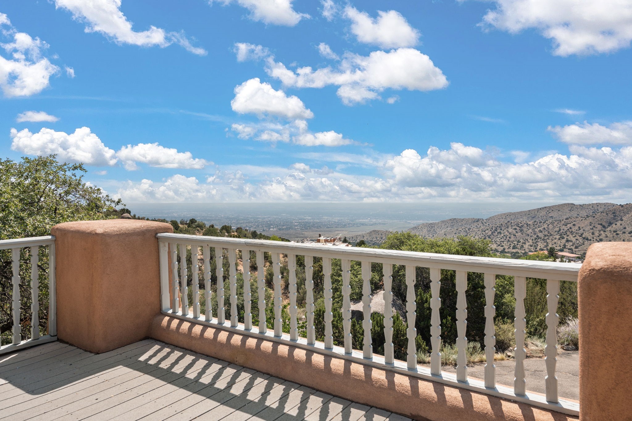 This Charming and authentic Adobe home in Tierra Monte offers a rare blend of luxury living and natural splendor at the base of the iconic Sandia Mountains. This spacious 3,680 sq. ft. residence is thoughtfully designed with updated roofing and mechanical systems, ensuring both comfort and elegance. Step inside to discover adobe construction, beamed ceilings, and a gourmet kitchen featuring a massive granite island, a veggie sink, a Viking gas range and double ovens, a Sub-Zero fridge/freezer, and an incredible deck off the kitchen and the primary bedroom suite, perfect for entertaining or relaxing after a long week. The interior boasts five fireplaces, brick, Saltillo, and carpet flooring, and windows that frame breathtaking vistas. Set on a private lot, the home offers unparalleled....privacy and panoramic views of dramatic sunsets, starlit skies, and the rugged cliffs of the Sandias. Enjoy serene mornings on your patio, watching the ever-changing light play across the peaks, or unwind in the jetted tub after exploring the famed La Luz Trail, a world-renowned hiking destination just steps from your door. The property is ideally located within the sought-after 87122 zip code, with top-rated schools nearby. It's more than a home, it's a gateway to adventure and tranquility, offering a lifestyle defined by outdoor beauty and classic Pueblo architecture. It could be your ABQ Dream Home!