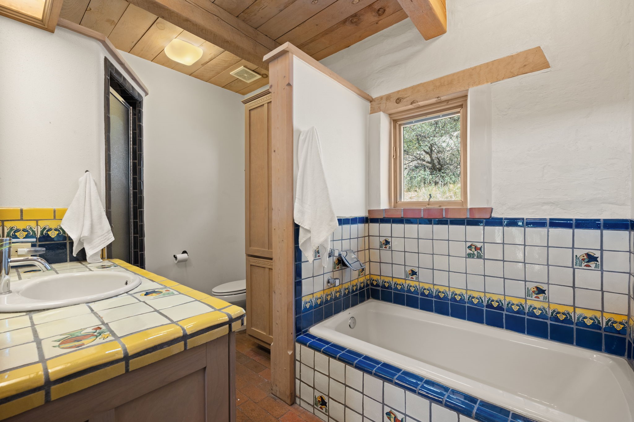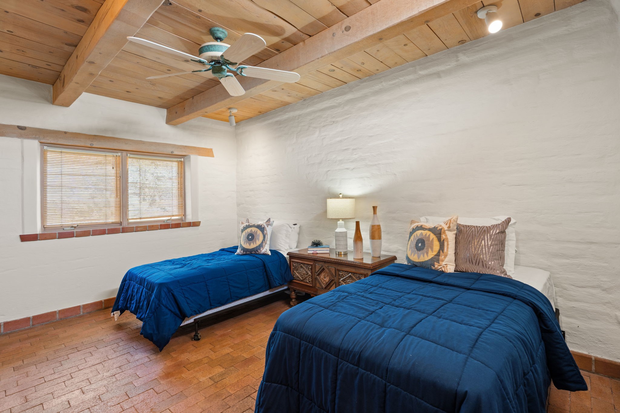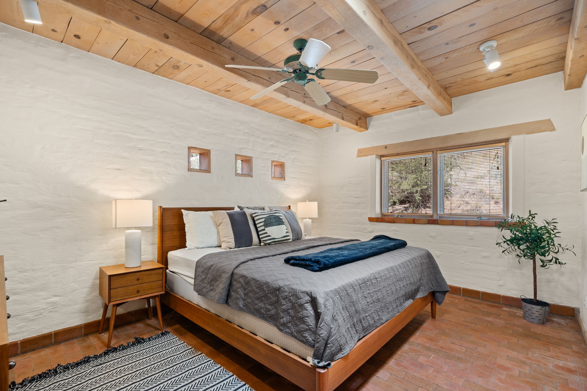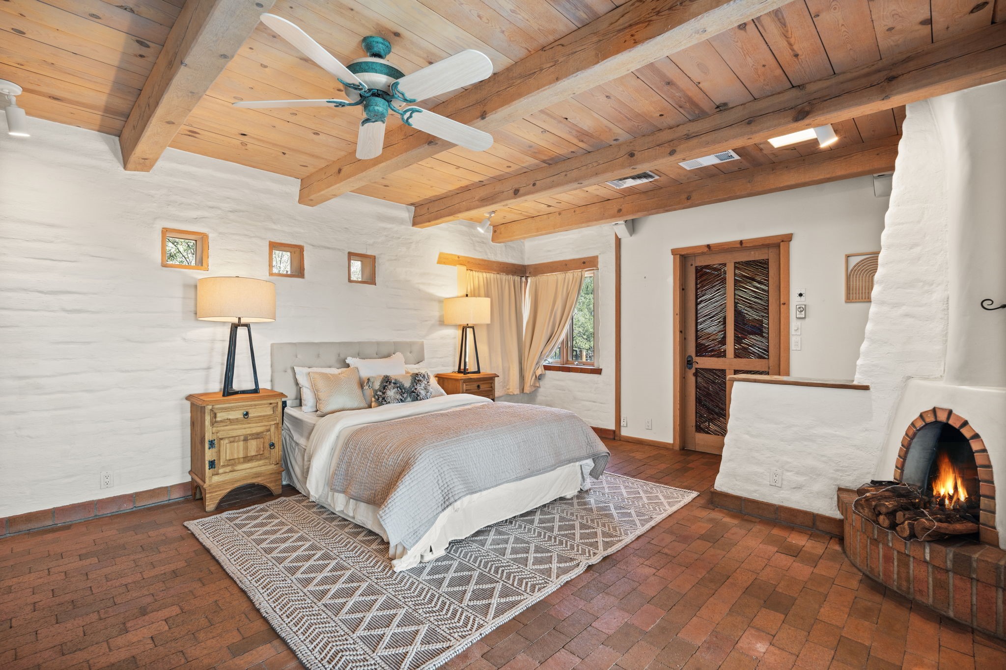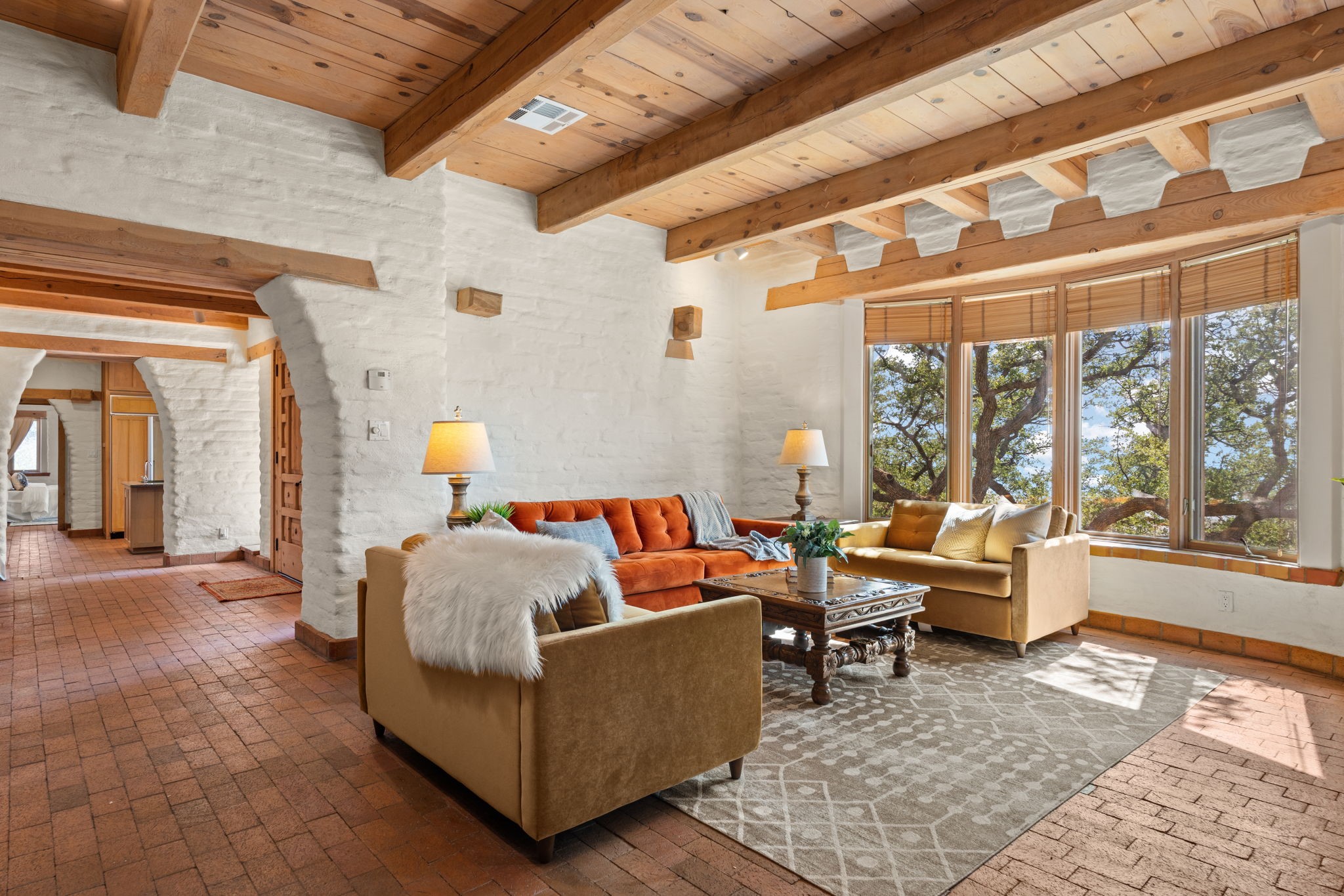 This Charming and authentic Adobe home in Tierra Monte offers a rare blend of luxury living and natural splendor at the base of the iconic Sandia Mountains. This spacious 3,680 sq. ft. residence is thoughtfully designed with updated roofing and mechanical systems, ensuring both comfort and elegance. Step inside to discover adobe construction, beamed ceilings, and a gourmet kitchen featuring a massive granite island, a veggie sink, a Viking gas range and double ovens, a Sub-Zero fridge/freezer, and an incredible deck off the kitchen and the primary bedroom suite, perfect for entertaining or relaxing after a long week. The interior boasts five fireplaces, brick, Saltillo, and carpet flooring, and windows that frame breathtaking vistas. Set on a private lot, the home offers unparalleled....privacy and panoramic views of dramatic sunsets, starlit skies, and the rugged cliffs of the Sandias. Enjoy serene mornings on your patio, watching the ever-changing light play across the peaks, or unwind in the jetted tub after exploring the famed La Luz Trail, a world-renowned hiking destination just steps from your door. The property is ideally located within the sought-after 87122 zip code, with top-rated schools nearby. It's more than a home, it's a gateway to adventure and tranquility, offering a lifestyle defined by outdoor beauty and classic Pueblo architecture. It could be your ABQ Dream Home!