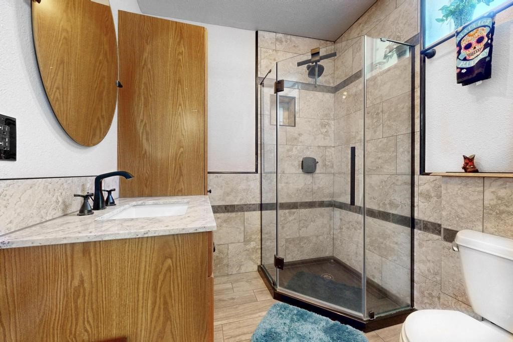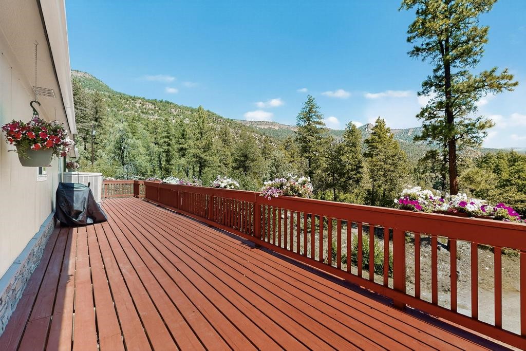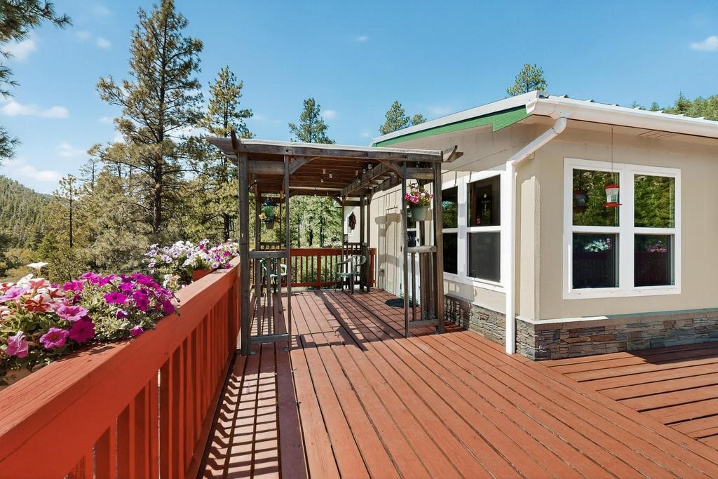 New Price- Come see this Spacious 5 Bedroom Home in Gorgeous Jemez! Top level features bright country kitchen, cheerful living room, fireplace, 3 bedrooms & two full baths. Freshly painted deck with pergola extends living space outdoors where morning coffee, evening meals & starry nights become part of daily life.The custom engineered lower level has its own entrance and was purpose built for strength and efficiency. This level offers two bedrooms, two spacious living areas, and a three quarter bath. Perfect for a second suite, guest wing, studio, or private rental. The 28x60 foam form monolithic foundation with ten foot walls adds long term durability and energy savings.Recent updates improve comfort throughout. Fresh interior and exterior paint, new sinks and faucets, a new primary bath vanity, six new lower level windows, upgraded upper level windows, and a brand new fifteen hundred gallon septic tank. A Whitfield pellet stove provides efficient heat and the oversized garage offers generous room for vehicles, tools, and storage.For animals and outdoor use, the property includes a dedicated half acre corral with feed shed, plus surrounding natural landscape for exploration, gardening, and future ideas. Two combined parcels, 11B and 11D, contribute additional privacy and flexibility. A two hundred twenty outlet is ready for larger projects.The location is rich with recreation. Public lands nearby offer riding, hiking, hunting permitting, Valles Caldera National Preserve provides skiing, fishing, endless trails. The mineral hot springs, restaurants, & shops of Jemez Springs are just minutes away.Access is practical for year round living. The home is near the start of the road which simplifies winter driving. Schools and bus stops are close and Los Alamos is approximately forty five minutes with Albuquerque and the Sunport about an hour away. This is abbsolutely one of the most compelling five bedroom opportunities in the Jemez Mountains.