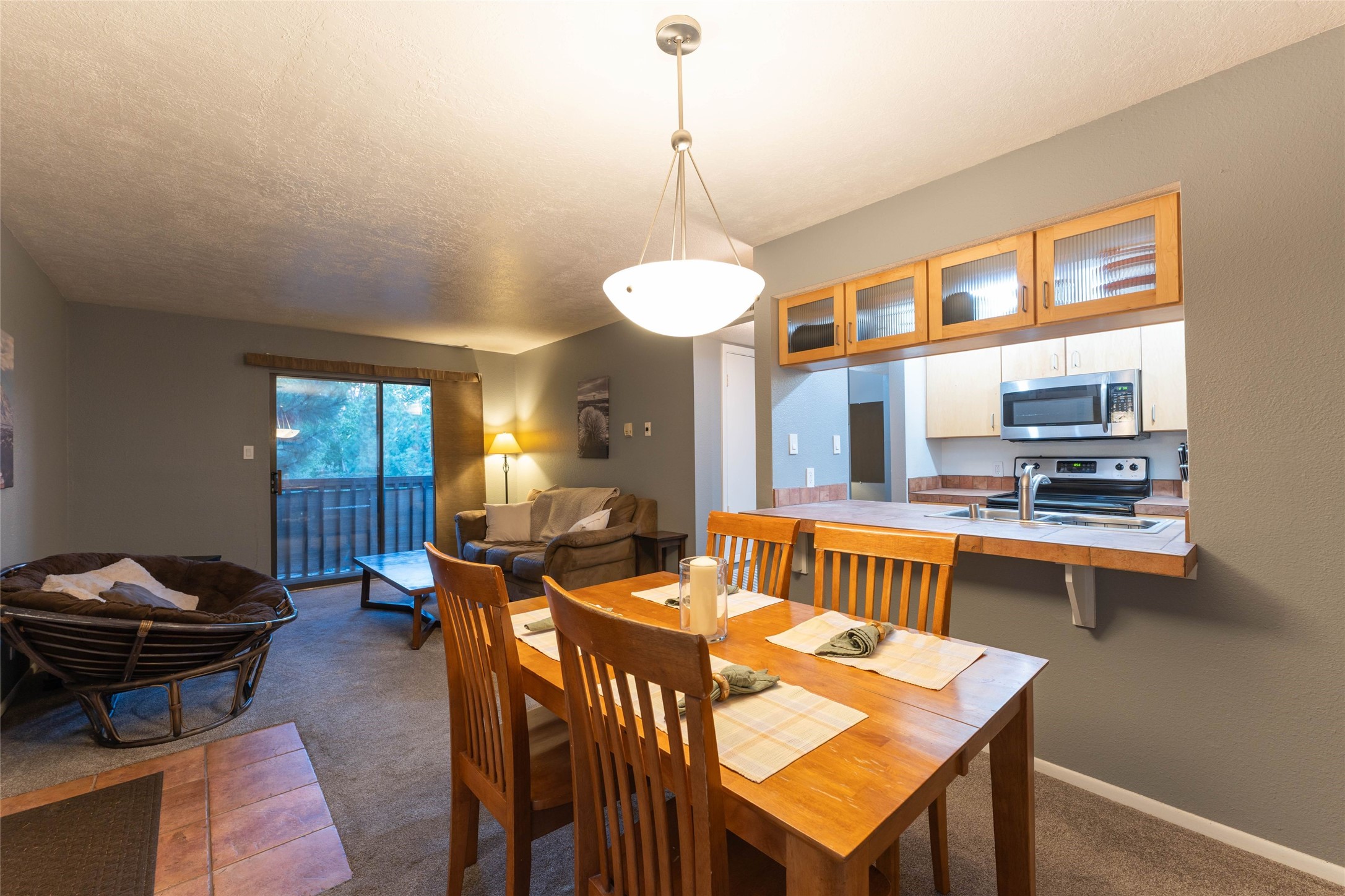 Welcome to The Reserve at Santa Fe, a beautifully maintained gated community just minutes from downtown. This furnished 1-bedroom, 1-bath residence offers comfort, privacy, and convenience in one of Santa Fe's most desirable condominium settings. The living area features soft natural light, neutral tones, and access to a private balcony surrounded by mature trees, creating a peaceful retreat. An open dining area connects seamlessly to the kitchen, which is equipped with stainless steel appliances, maple cabinetry, and tile countertops. The spacious bedroom includes ample closet space, while the full bath maintains the same clean, warm aesthetic found throughout the home. Move-in ready and sold with furnishings, this residence makes an excellent primary home, pied--terre, or long-term rental opportunity. The Reserve offers a host of amenities including a year-round heated pool, fitness center, clubhouse, walking trails, and on-site management, all within a secure gated setting just moments from shopping, dining, and the historic Plaza.